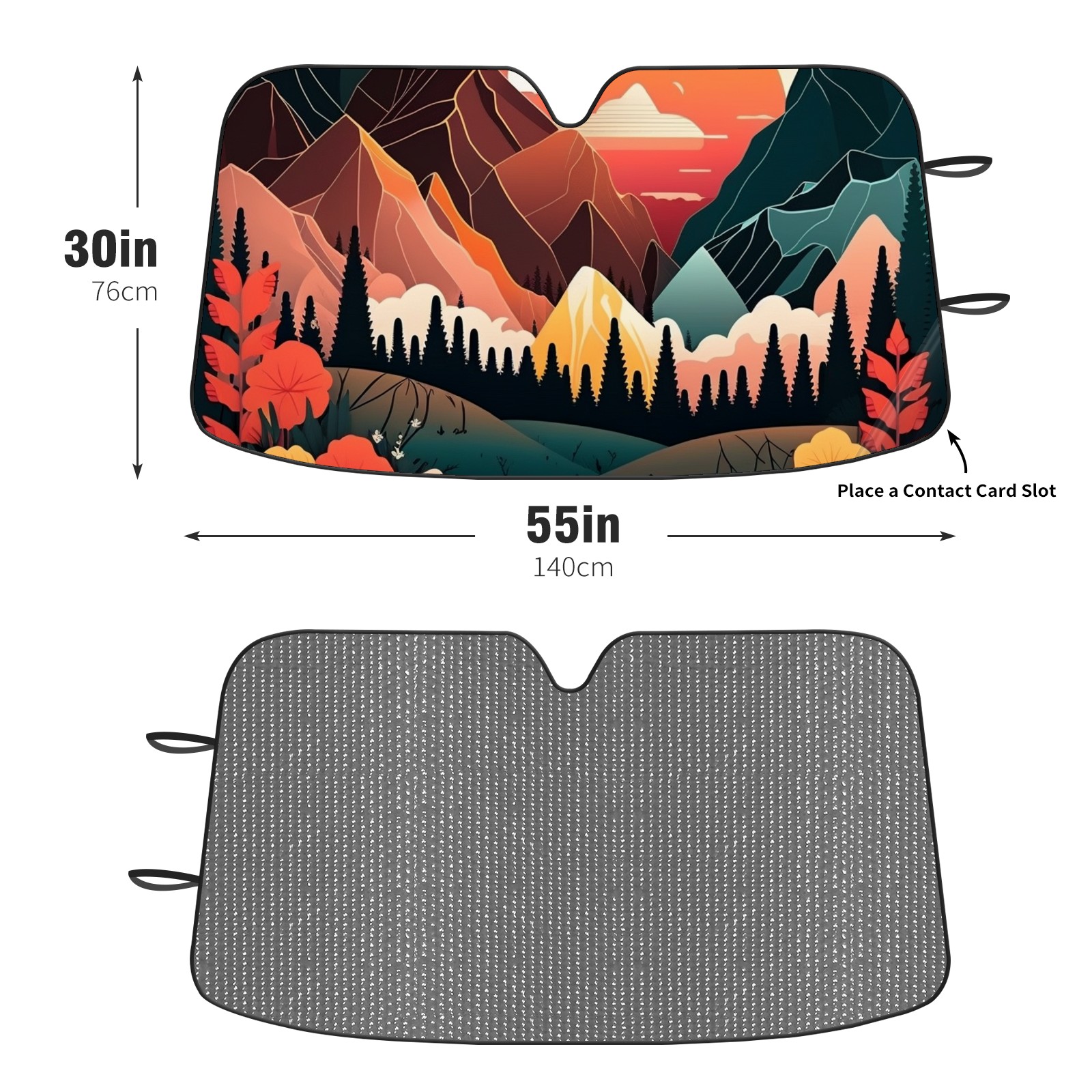 Diameter /Size 63"L x 33.5"W Made from excellent materials which makes it sturdy and protects the car from the sun. Easy to use and pack. Makes the interior of the car cooler.You can easily stash the sunshade in the storage bag or store long term.It open and closes easy. Also the leather storage bag is durable and easy to put the umbrella back into.This windshield sunshade provides complete coverage and keeps your car interior cool under direct sun. It is easy to open and position under the windshield and around the rear-view mirror. Makes Your Car Easy To Identify, Perfect For Finding Your Car In Crowded Parking Lots And Garages.Great Choice: It Is A Great Gift For Dad, Boyfriend, Brother, Brother And Uncle, Friends, Classmates, Family And So On. Notice: Due To Difference Computer Monitors, The Color Maybe Slightly Different From Picture. As Different Measurement Methods, Measurement Data Will Float Within 2%.I Hope You Understand. If You Have Any Question About The Item Please Do Not Hesitate To Contact Us Immediately And We Will Give You A Satisfactory Reply Within 24 Hours.