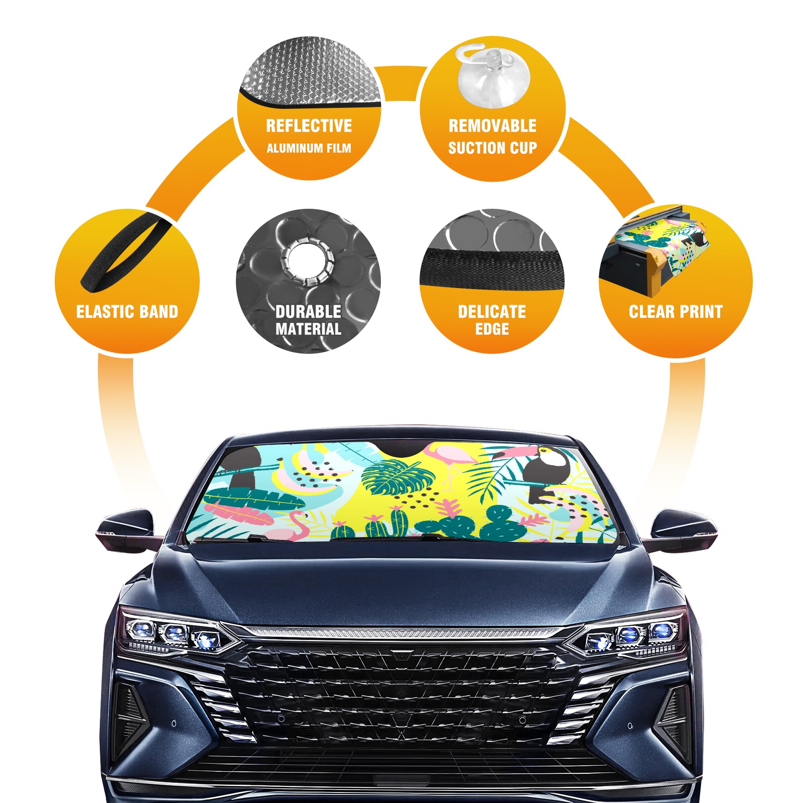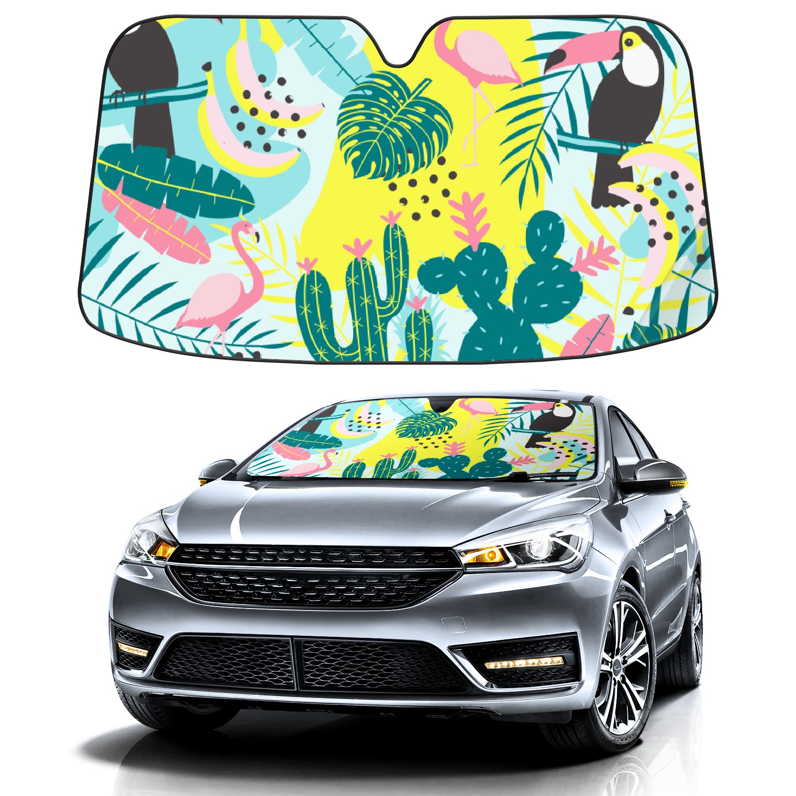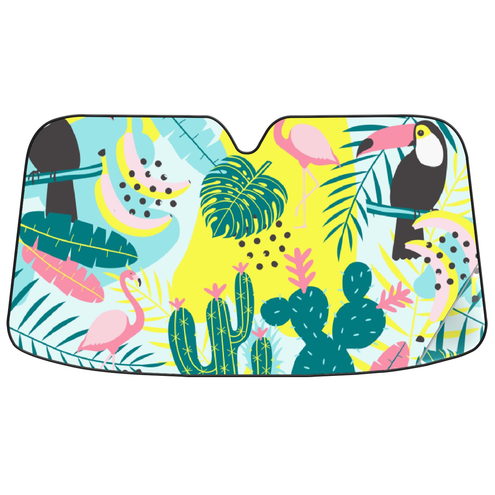 Car Windshield Sun Shade For Front Window Flamingos Toucans Foldable Vehicle Windshield Car Sun Visor Covers Automotive Window Protector Car Camping Privacy Sun Blocker