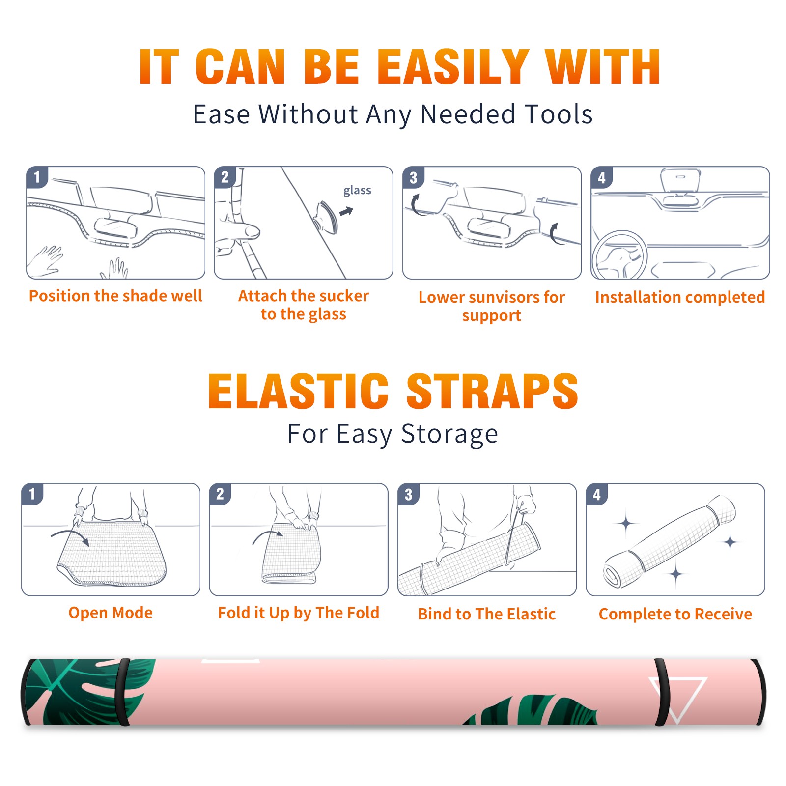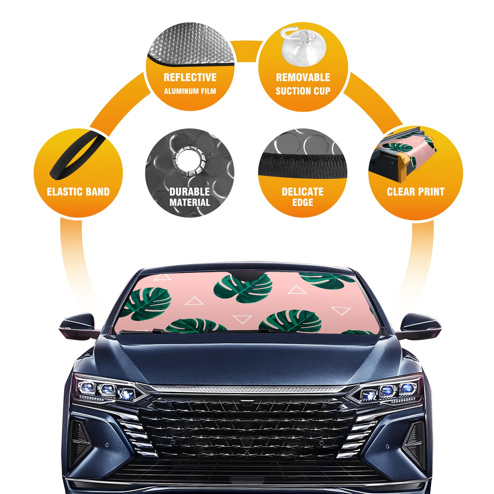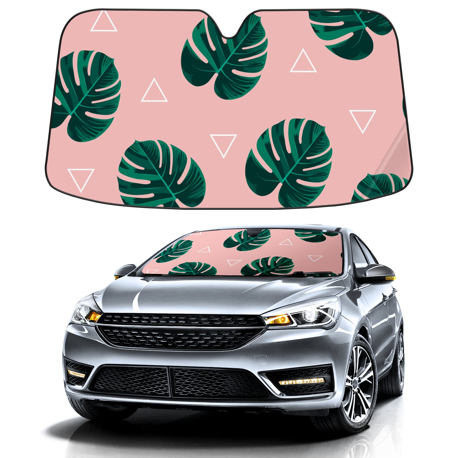 Car Windshield Sun Shade For Front Window Palm Frond Foldable Vehicle Windshield Car Sun Visor Covers Automotive Window Protector Car Camping Privacy Sun Blocker