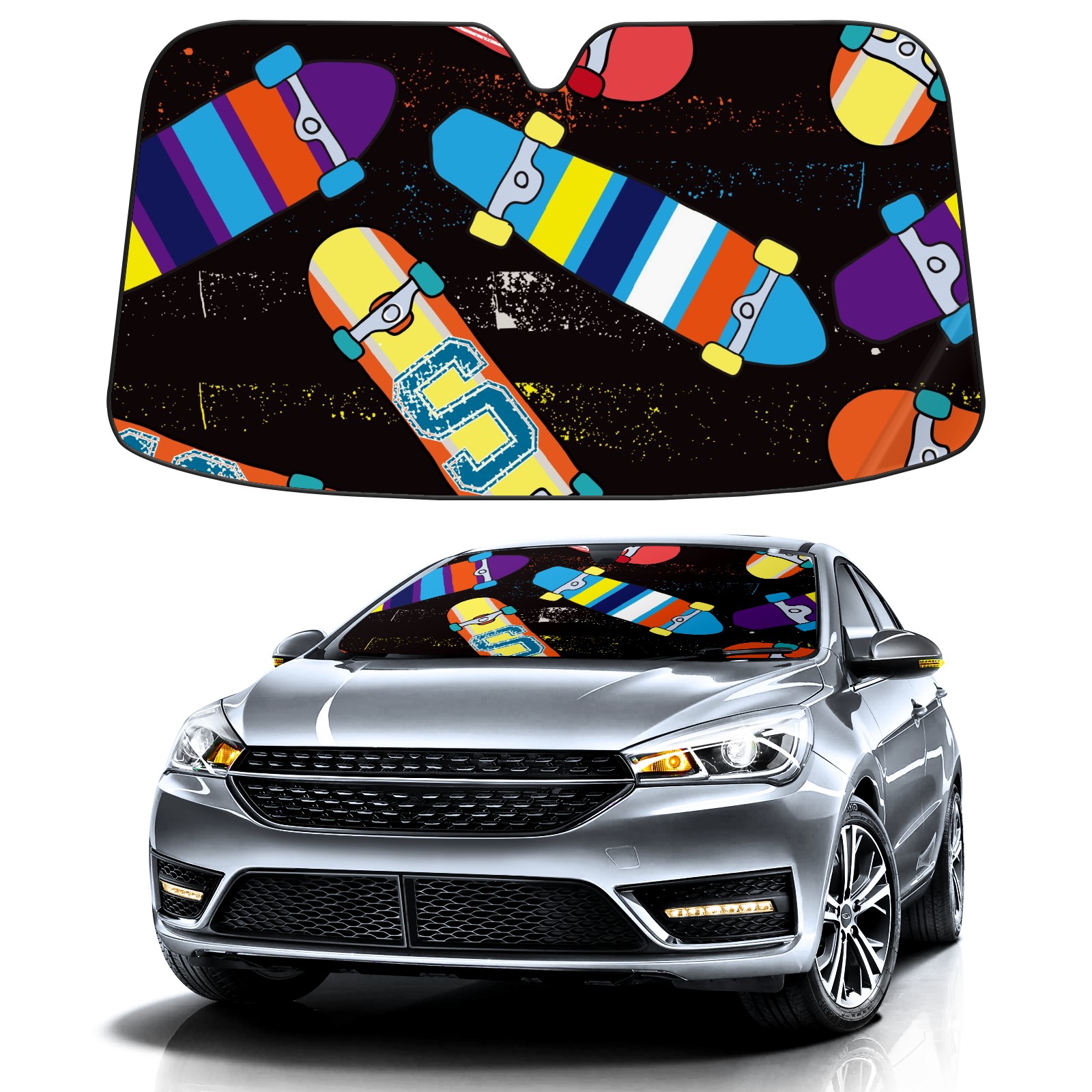 Car Windshield Sun Shade For Front Window Skateboarding Foldable Vehicle Windshield Car Sun Visor Covers Automotive Window Protector Car Camping Privacy Sun Blocker