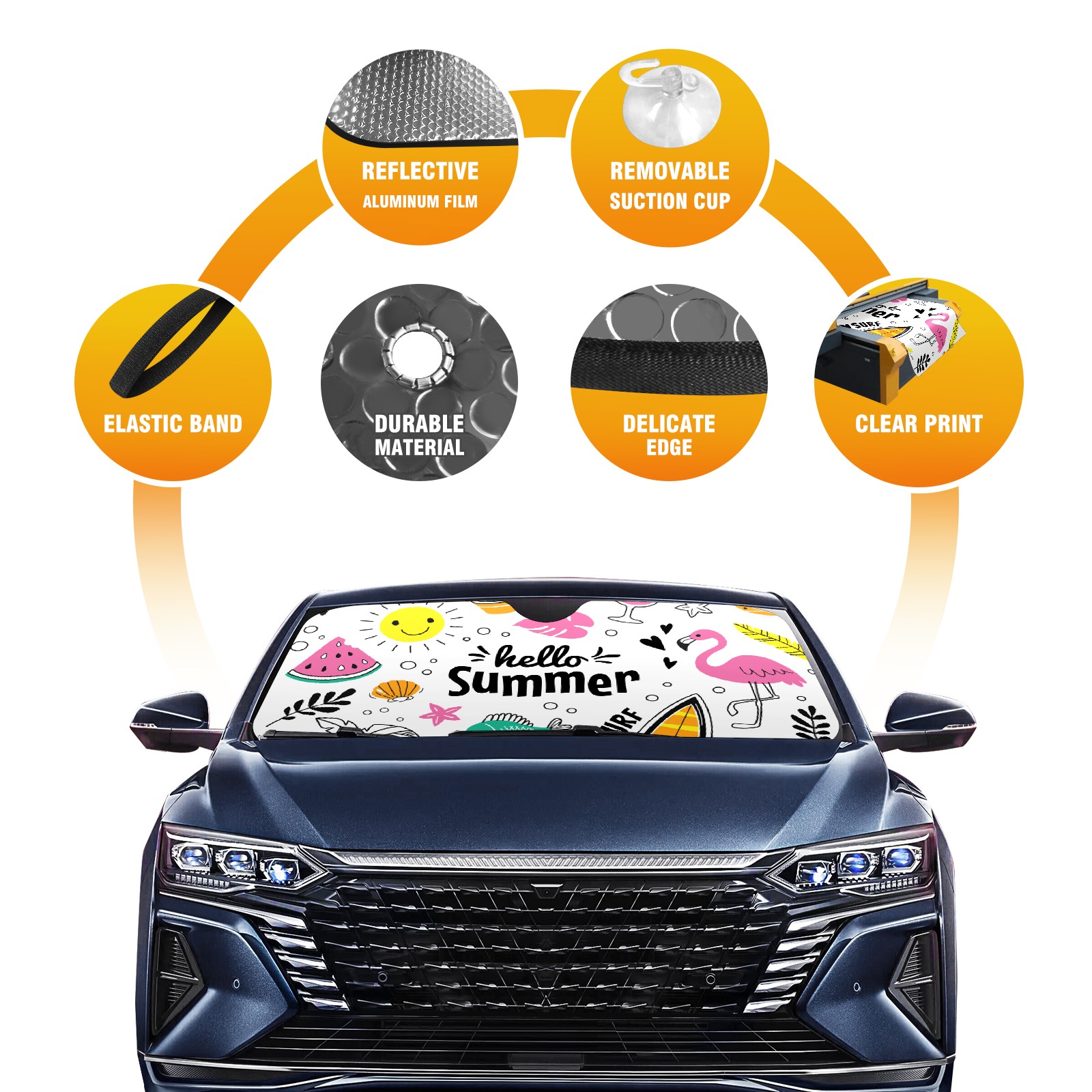 Car Windshield Sun Shade For Front Window Flamingos Palms Foldable Vehicle Windshield Car Sun Visor Covers Automotive Window Protector Car Camping Privacy Sun Blocker