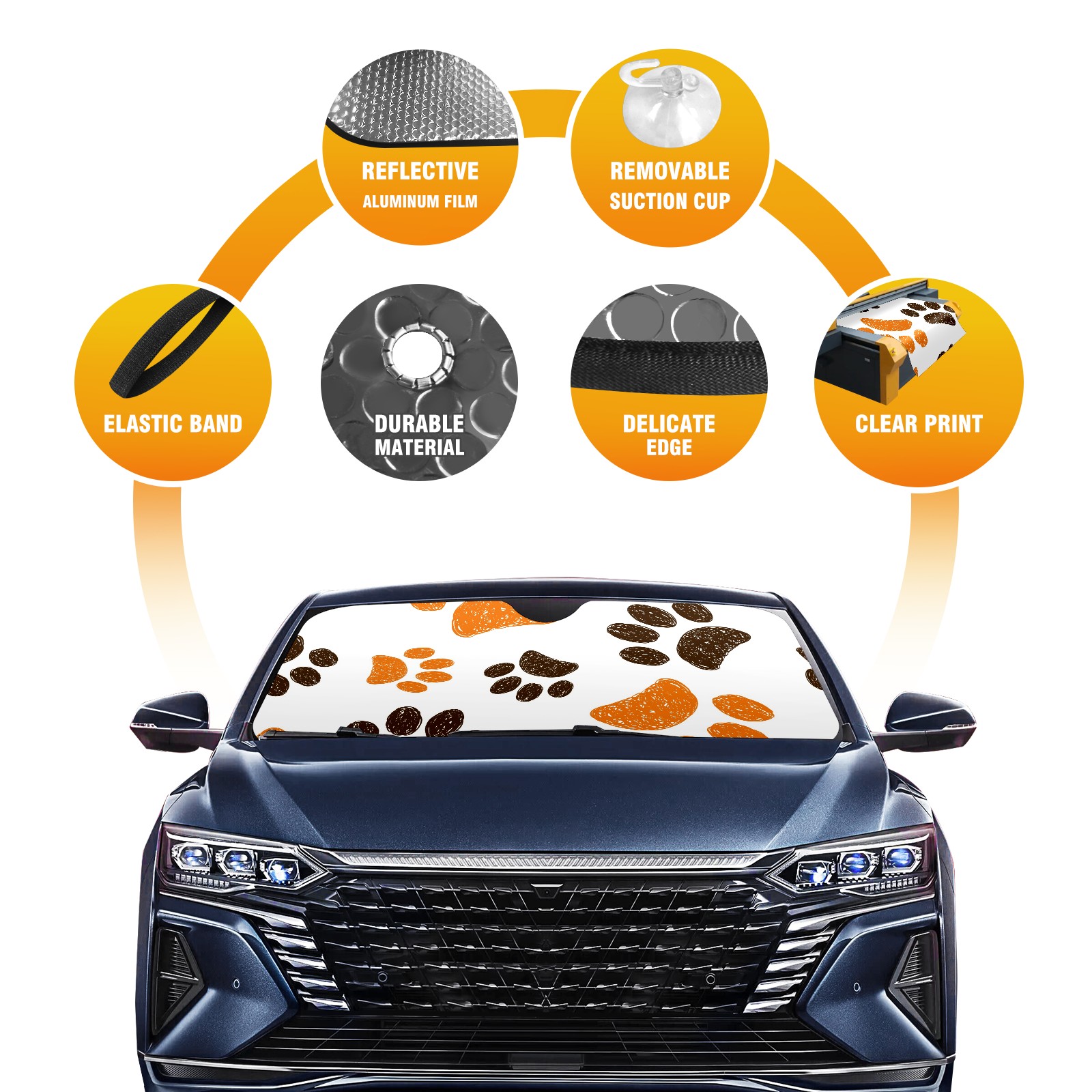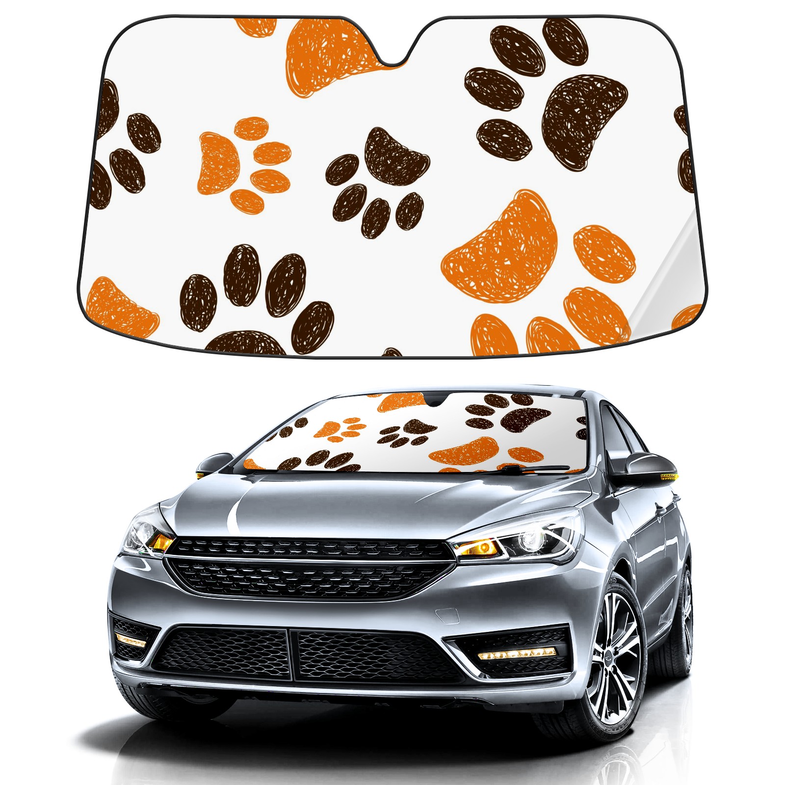 Car Windshield Sun Shade For Front Window Dog Footprint Foldable Vehicle Windshield Car Sun Visor Covers Automotive Window Protector Car Camping Privacy Sun Blocker