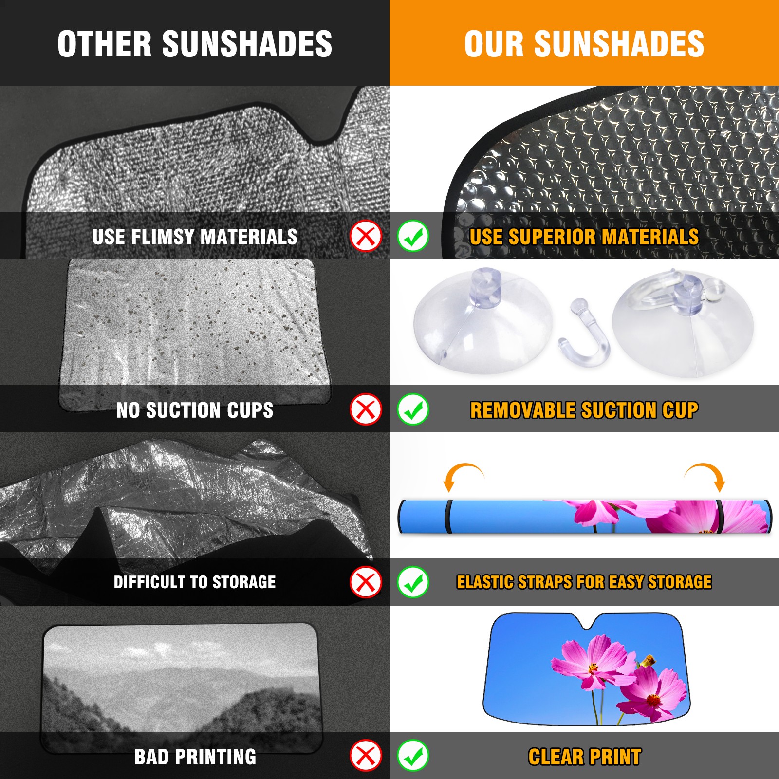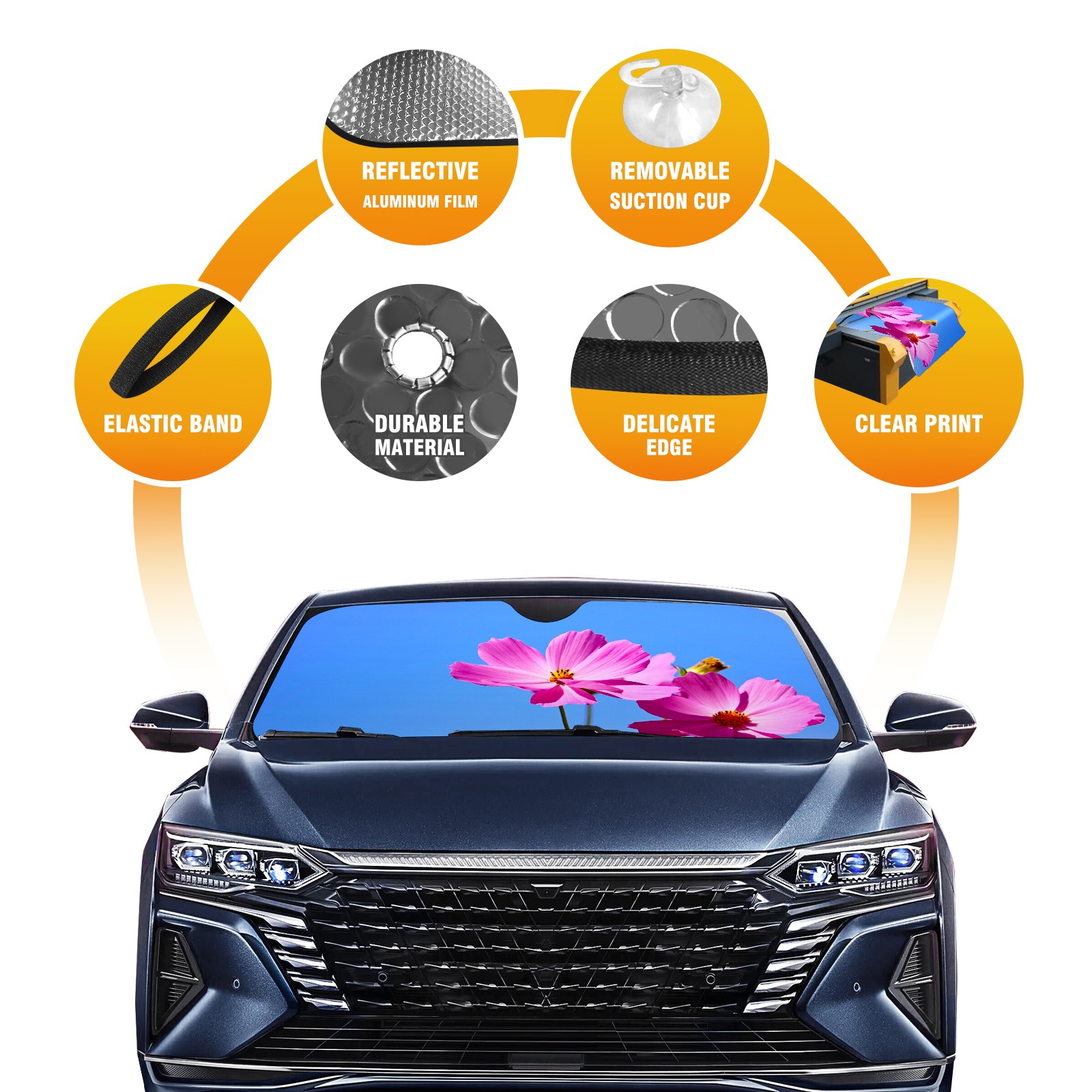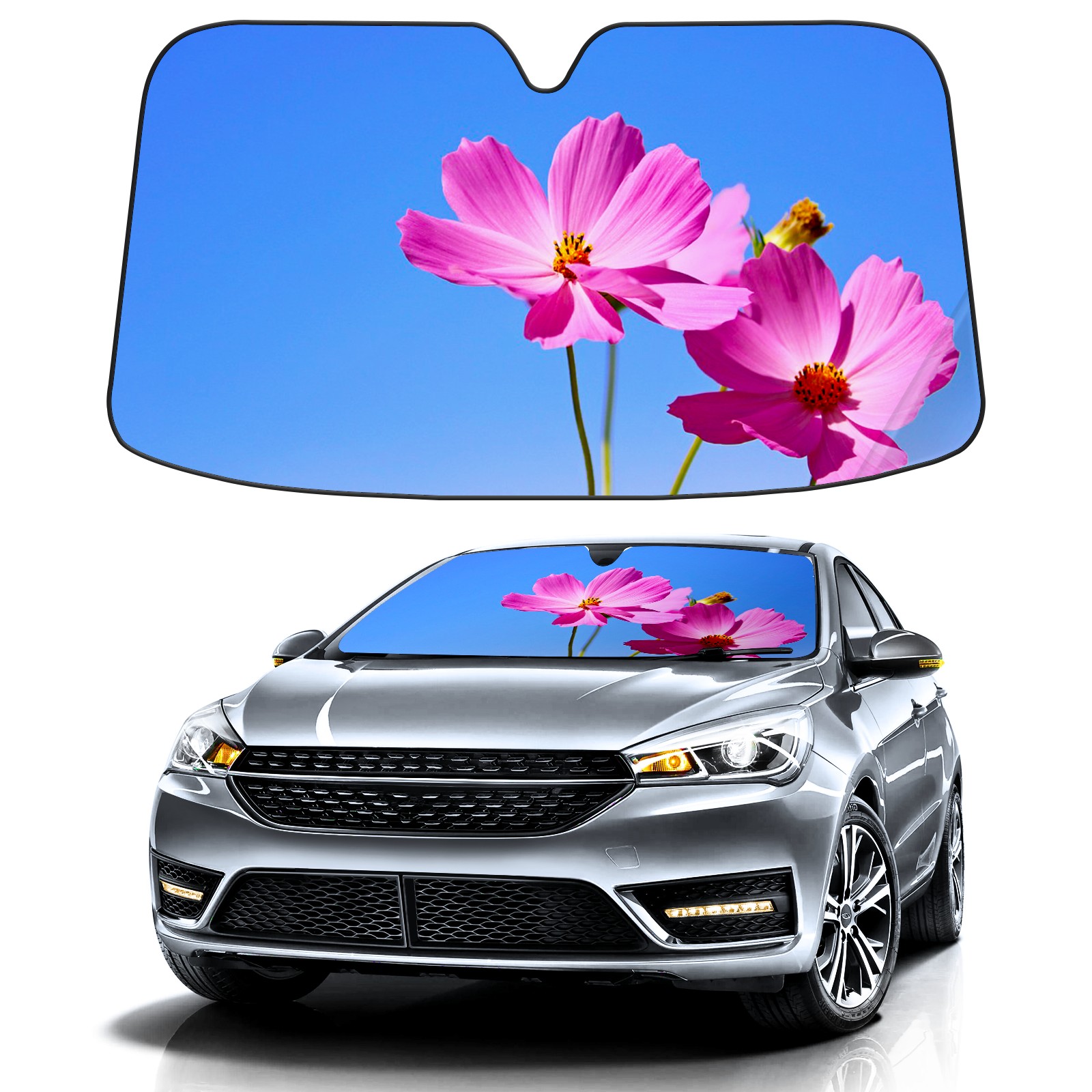 Car Windshield Sun Shade For Front Window Wild Flower Foldable Vehicle Windshield Car Sun Visor Covers Automotive Window Protector Car Camping Privacy Sun Blocker