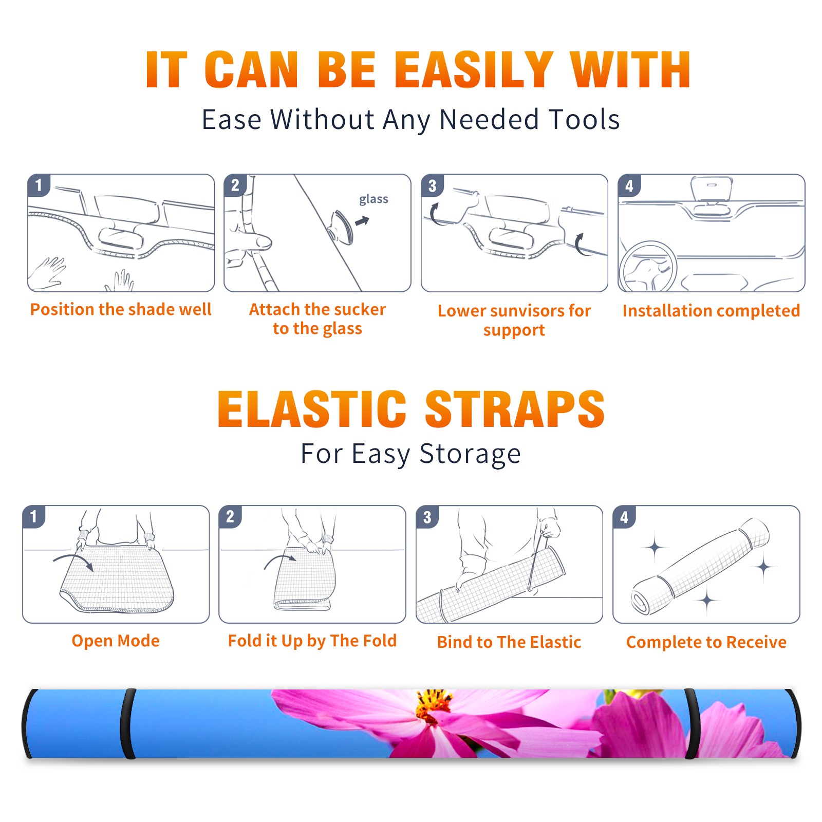 • Diameter /Size 63"L x 33.5"W Made from excellent materials which makes it sturdy and protects the car from the sun. Easy to use and pack. Makes the interior of the car cooler.You can easily stash the sunshade in the storage bag or store long term.It open and closes easy. Also the leather storage bag is durable and easy to put the umbrella back into.This windshield sunshade provides complete coverage and keeps your car interior cool under direct sun. It is easy to open and position under the windshield and around the rear-view mirror. Makes Your Car Easy To Identify, Perfect For Finding Your Car In Crowded Parking Lots And Garages.Great Choice: It Is A Great Gift For Dad, Boyfriend, Brother, Brother And Uncle, Friends, Classmates, Family And So On. Notice: Due To Difference Computer Monitors, The Color Maybe Slightly Different From Picture. As Different Measurement Methods, Measurement Data Will Float Within 2%.I Hope You Understand. If You Have Any Question About The Item Please Do Not Hesitate To Contact Us Immediately And We Will Give You A Satisfactory Reply Within 24 Hours.