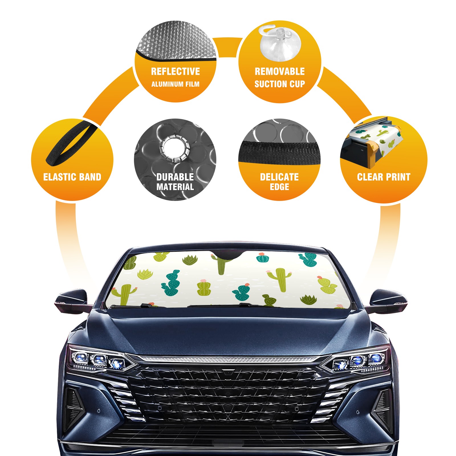 Car Windshield Sun Shade For Front Window Cactus Foldable Vehicle Windshield Car Sun Visor Covers Automotive Window Protector Car Camping Privacy Sun Blocker