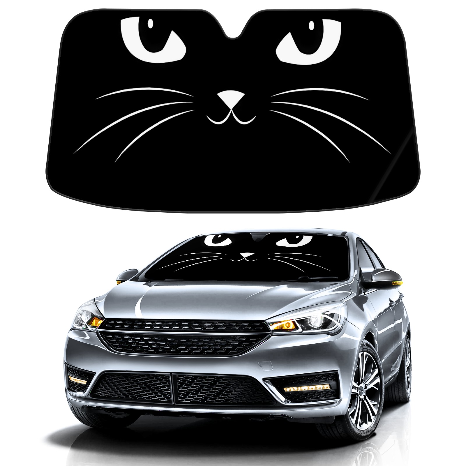 Car Windshield Sun Shade For Front Window Cat White And Black Foldable Vehicle Windshield Car Sun Visor Covers Automotive Window Protector Car Camping Privacy Sun Blocker