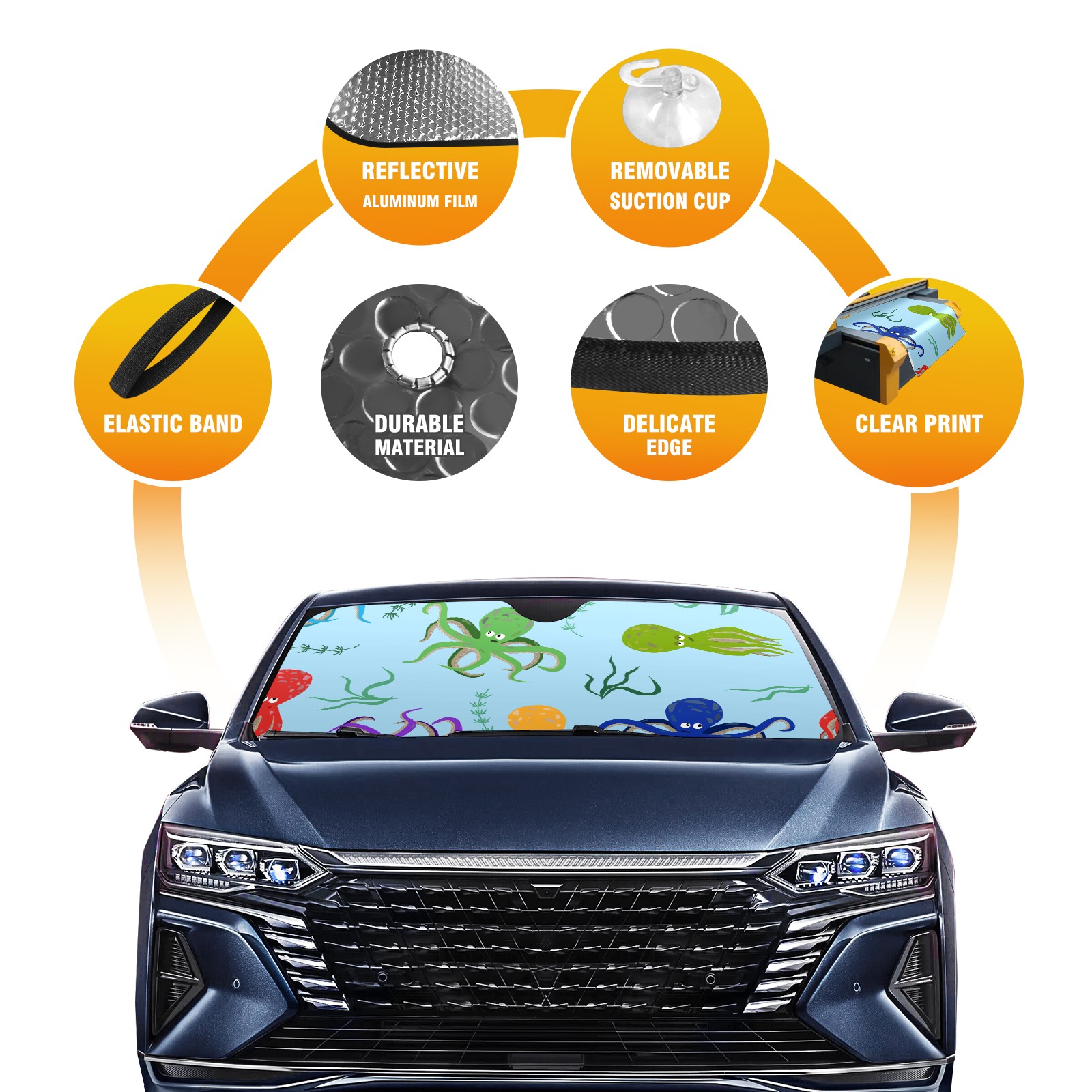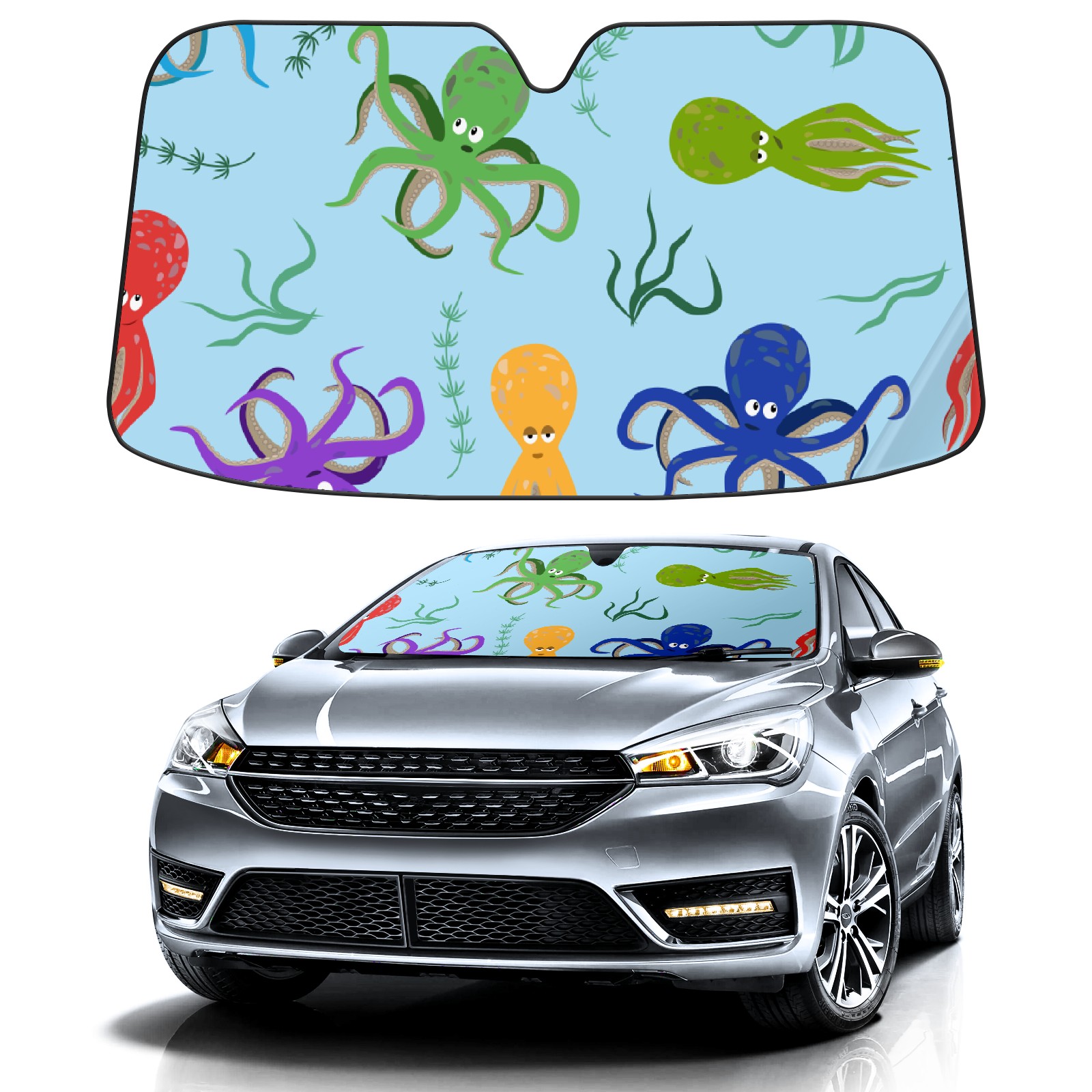 Car Windshield Sun Shade For Front Window Colorful Octopus Foldable Vehicle Windshield Car Sun Visor Covers Automotive Window Protector Car Camping Privacy Sun Blocker