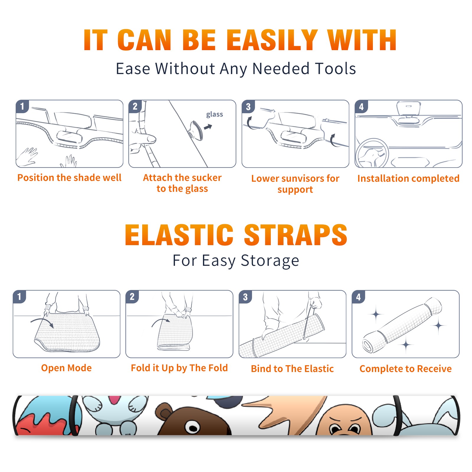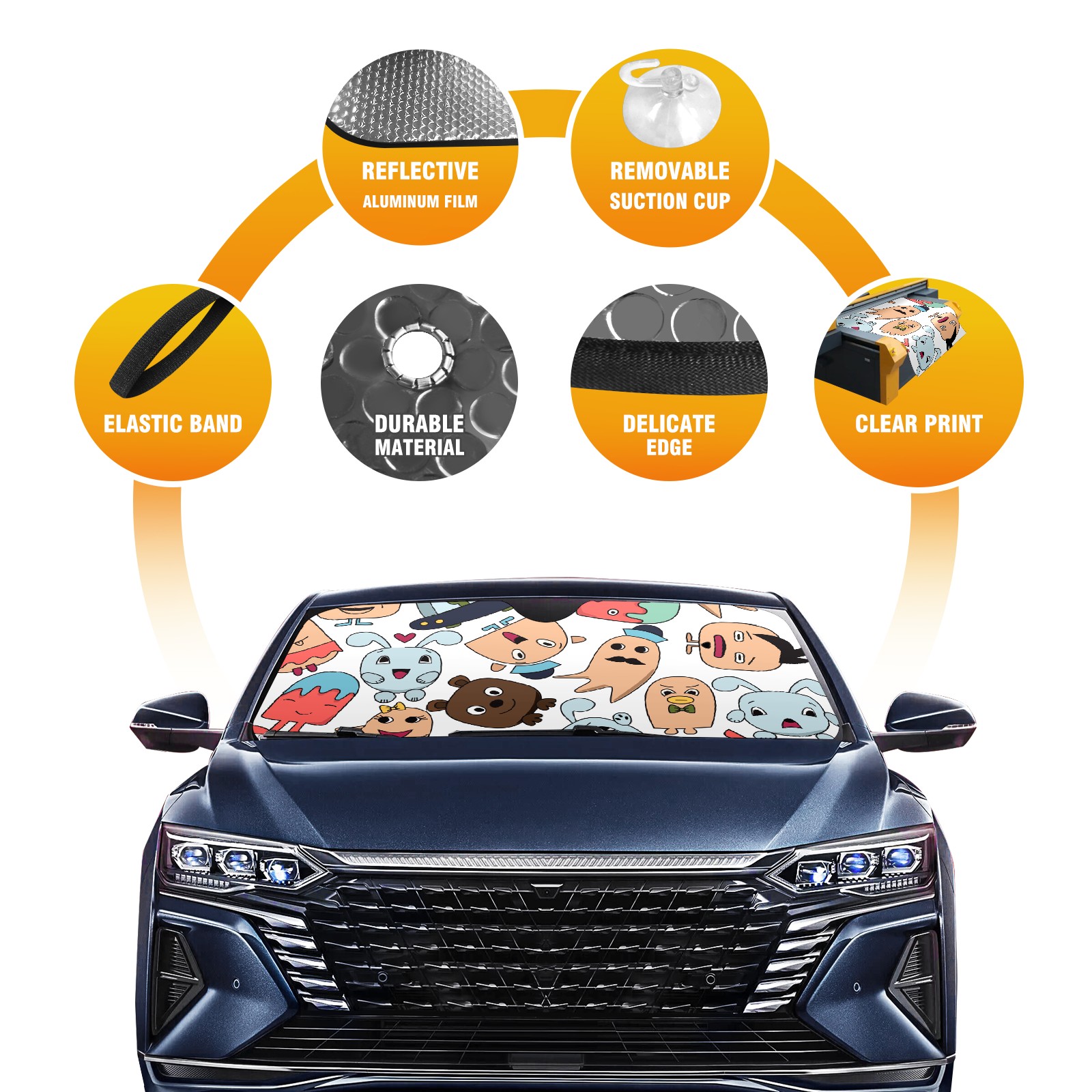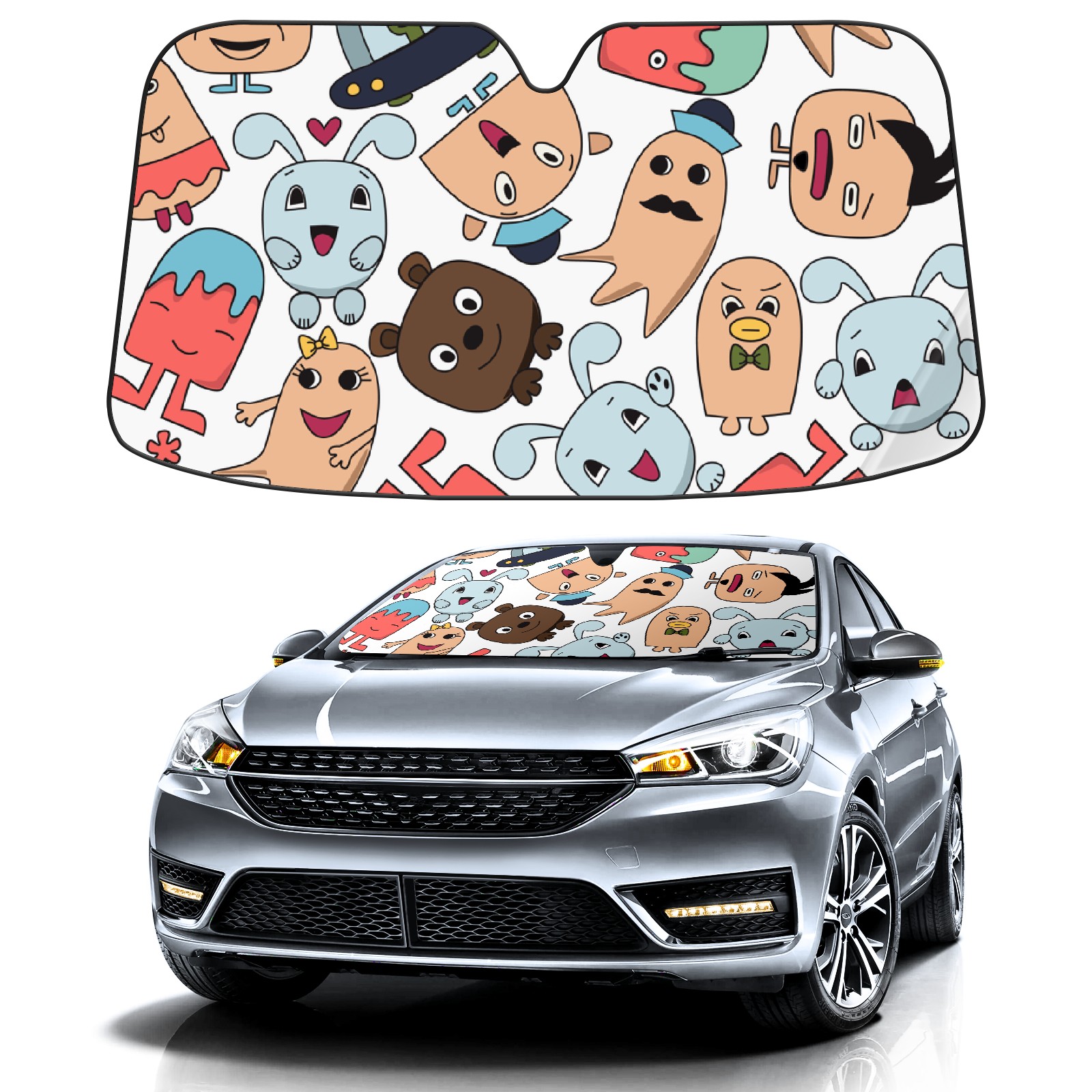 Car Windshield Sun Shade For Front Window Interesting Faces Foldable Vehicle Windshield Car Sun Visor Covers Automotive Window Protector Car Camping Privacy Sun Blocker