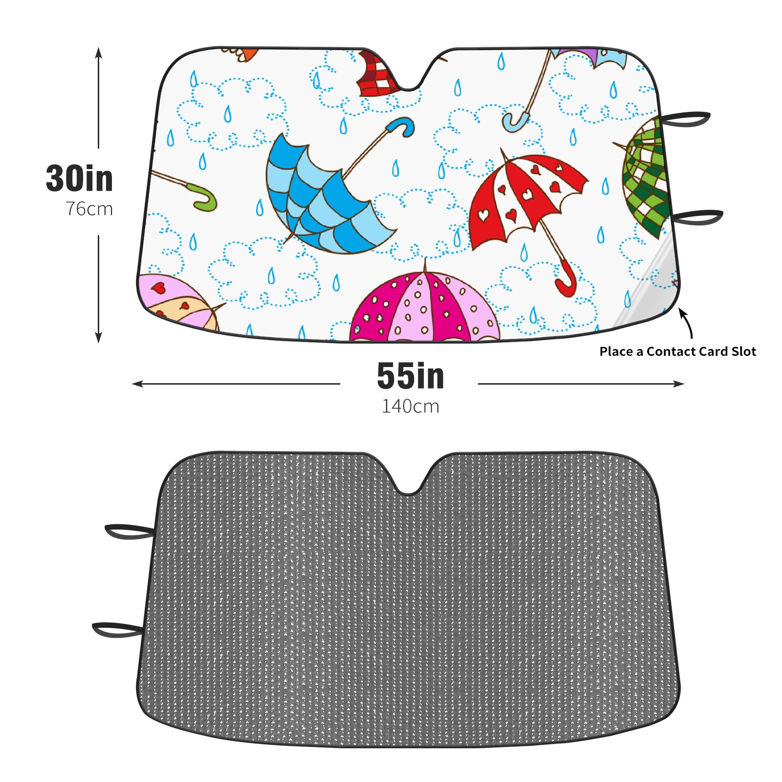 Diameter /Size 63"L x 33.5"W Made from excellent materials which makes it sturdy and protects the car from the sun. Easy to use and pack. Makes the interior of the car cooler.You can easily stash the sunshade in the storage bag or store long term.It open and closes easy. Also the leather storage bag is durable and easy to put the umbrella back into.This windshield sunshade provides complete coverage and keeps your car interior cool under direct sun. It is easy to open and position under the windshield and around the rear-view mirror. Makes Your Car Easy To Identify, Perfect For Finding Your Car In Crowded Parking Lots And Garages.Great Choice: It Is A Great Gift For Dad, Boyfriend, Brother, Brother And Uncle, Friends, Classmates, Family And So On. Notice: Due To Difference Computer Monitors, The Color Maybe Slightly Different From Picture. As Different Measurement Methods, Measurement Data Will Float Within 2%.I Hope You Understand. If You Have Any Question About The Item Please Do Not Hesitate To Contact Us Immediately And We Will Give You A Satisfactory Reply Within 24 Hours.