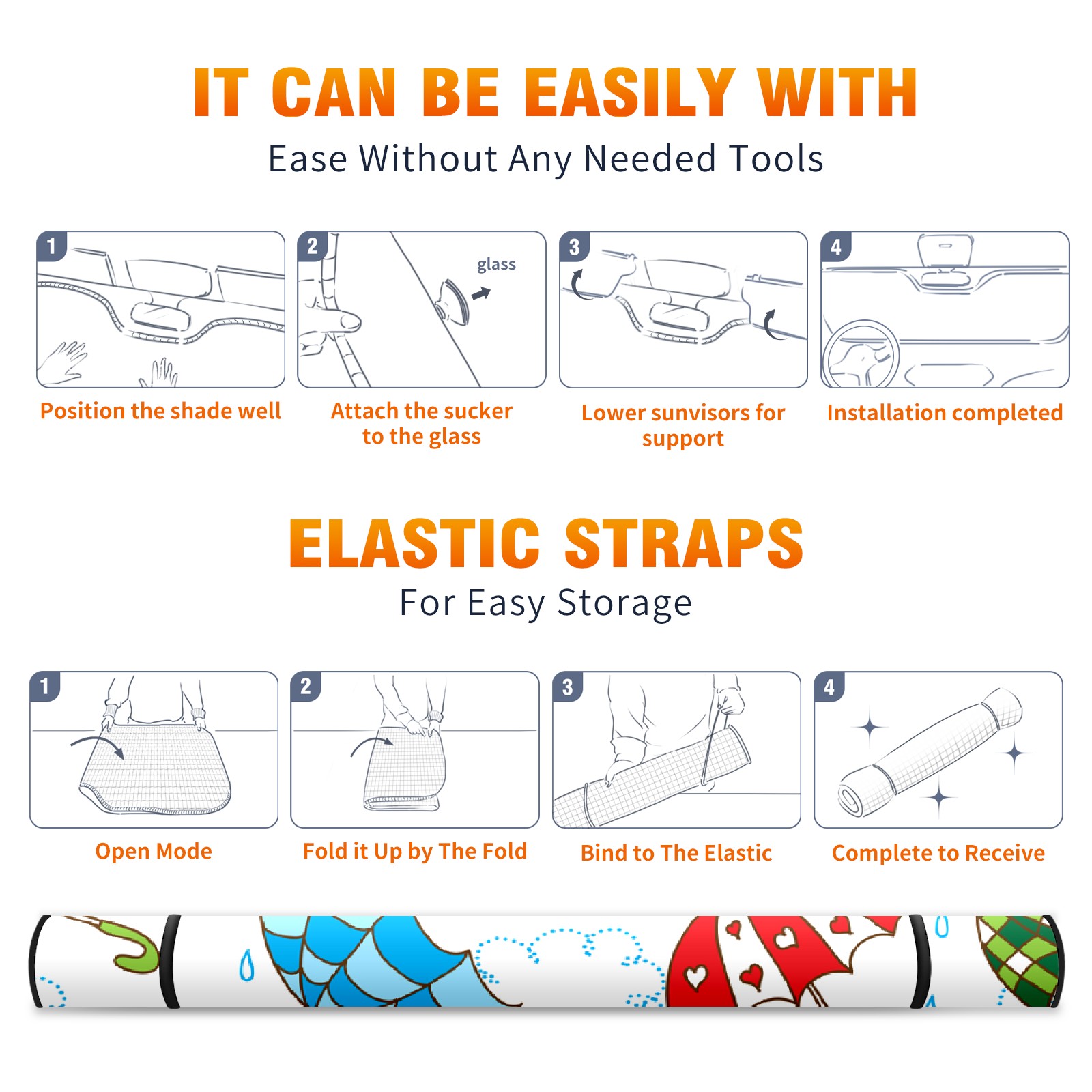 Car Windshield Sun Shade For Front Window Cute Umbrella Foldable Vehicle Windshield Car Sun Visor Covers Automotive Window Protector Car Camping Privacy Sun Blocker