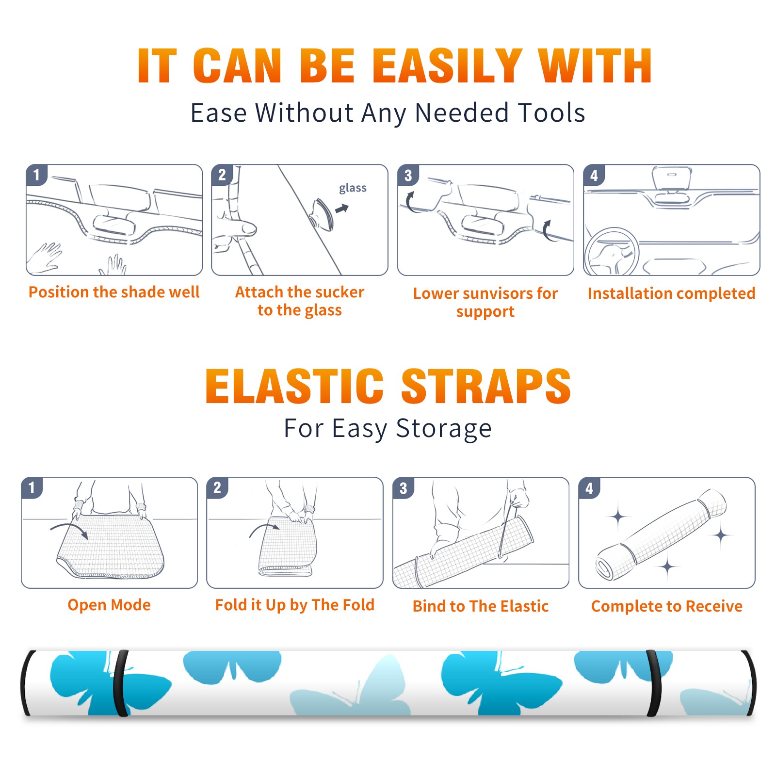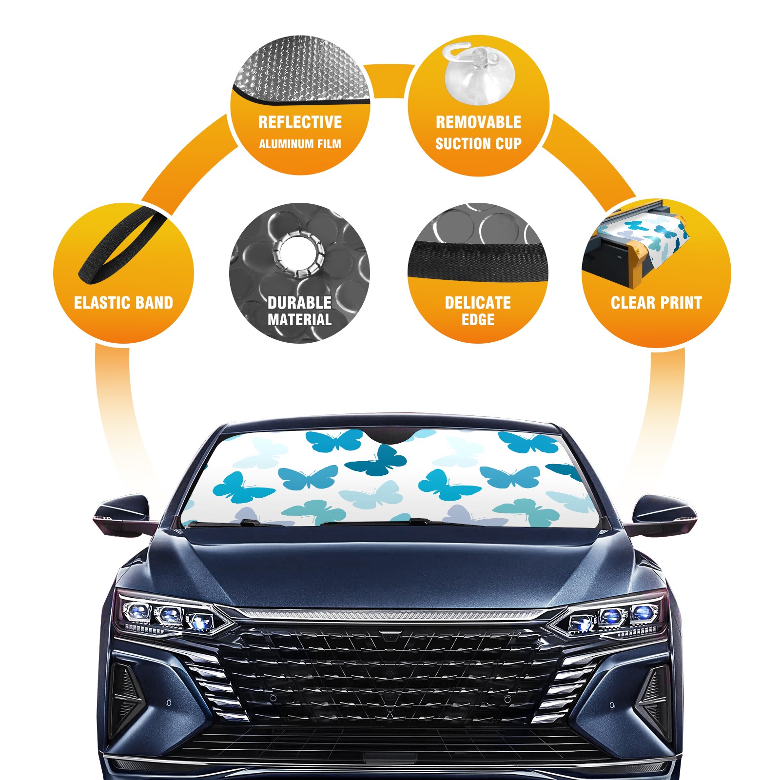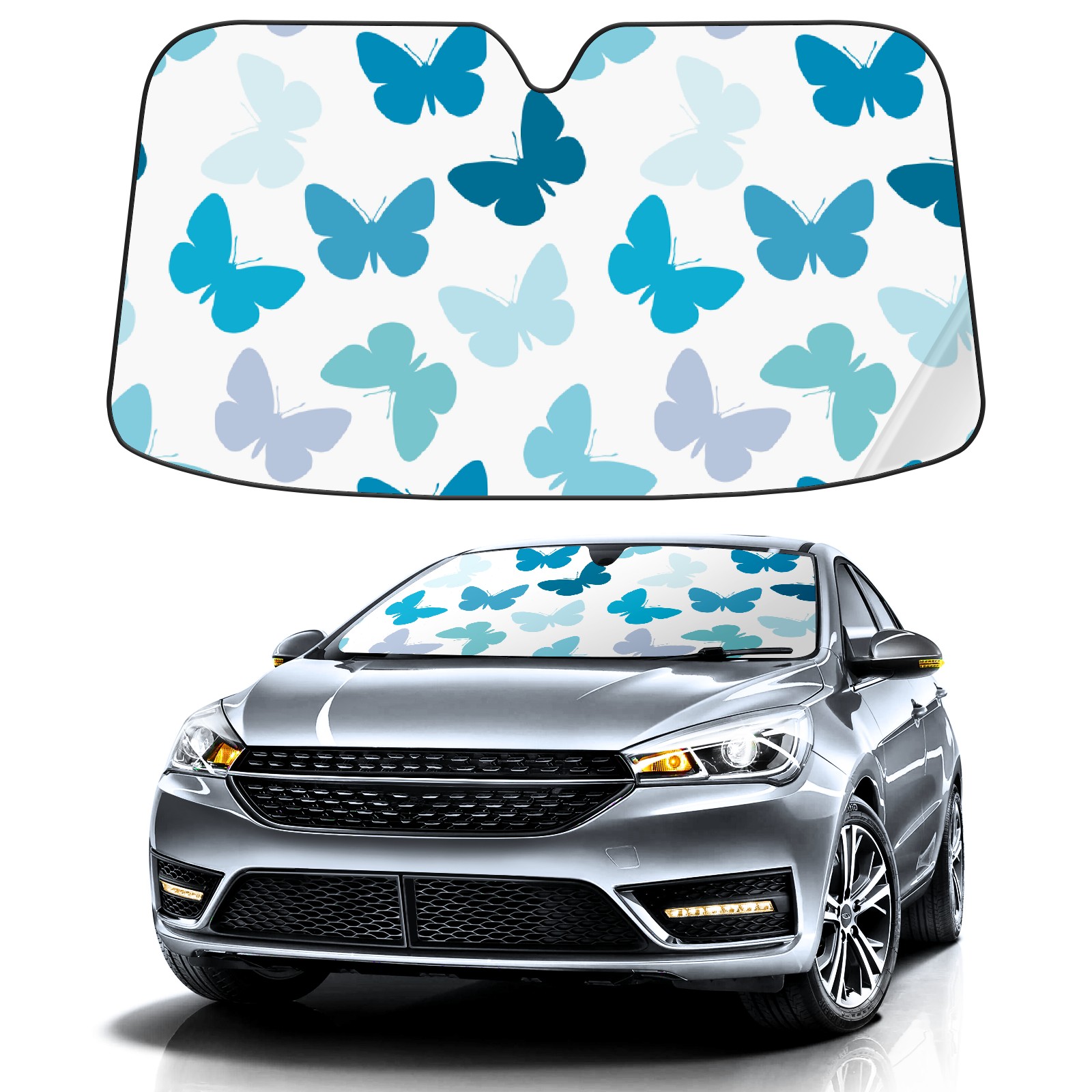 Car Windshield Sun Shade For Front Window Blue Butterfly Foldable Vehicle Windshield Car Sun Visor Covers Automotive Window Protector Car Camping Privacy Sun Blocker