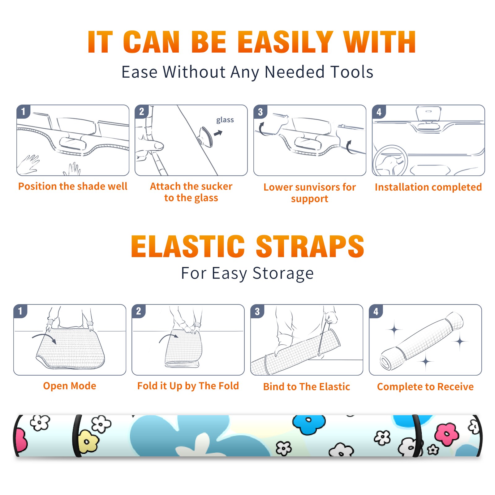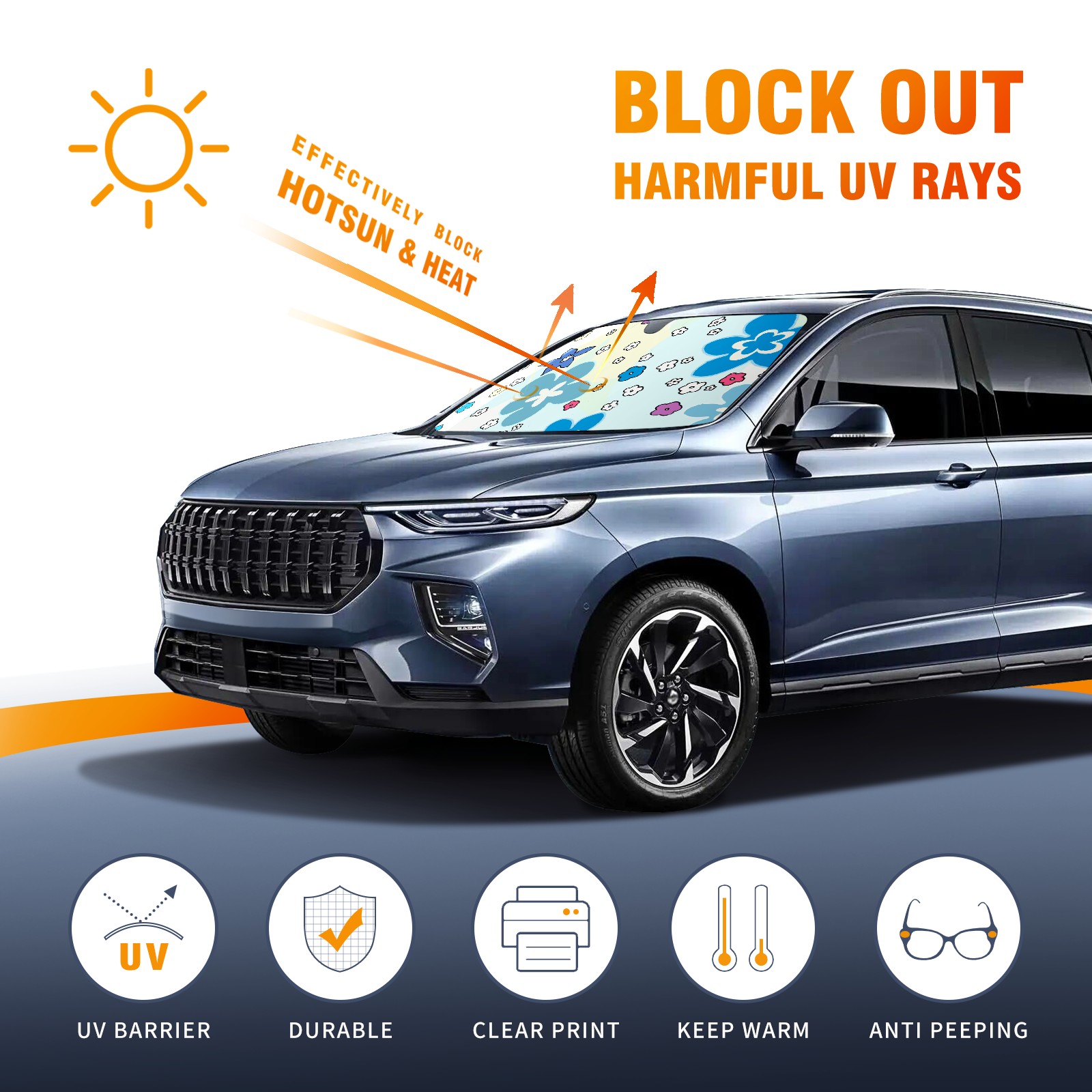 Car Windshield Sun Shade For Front Window Cartoon Flower Foldable Vehicle Windshield Car Sun Visor Covers Automotive Window Protector Car Camping Privacy Sun Blocker