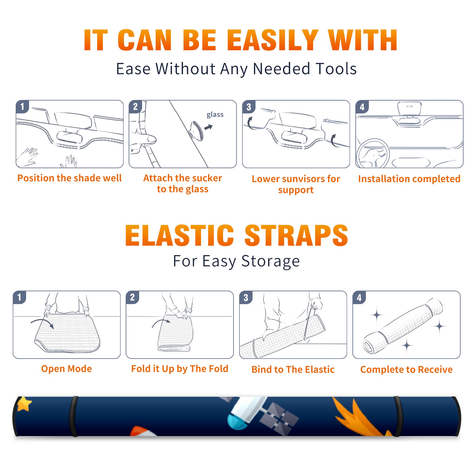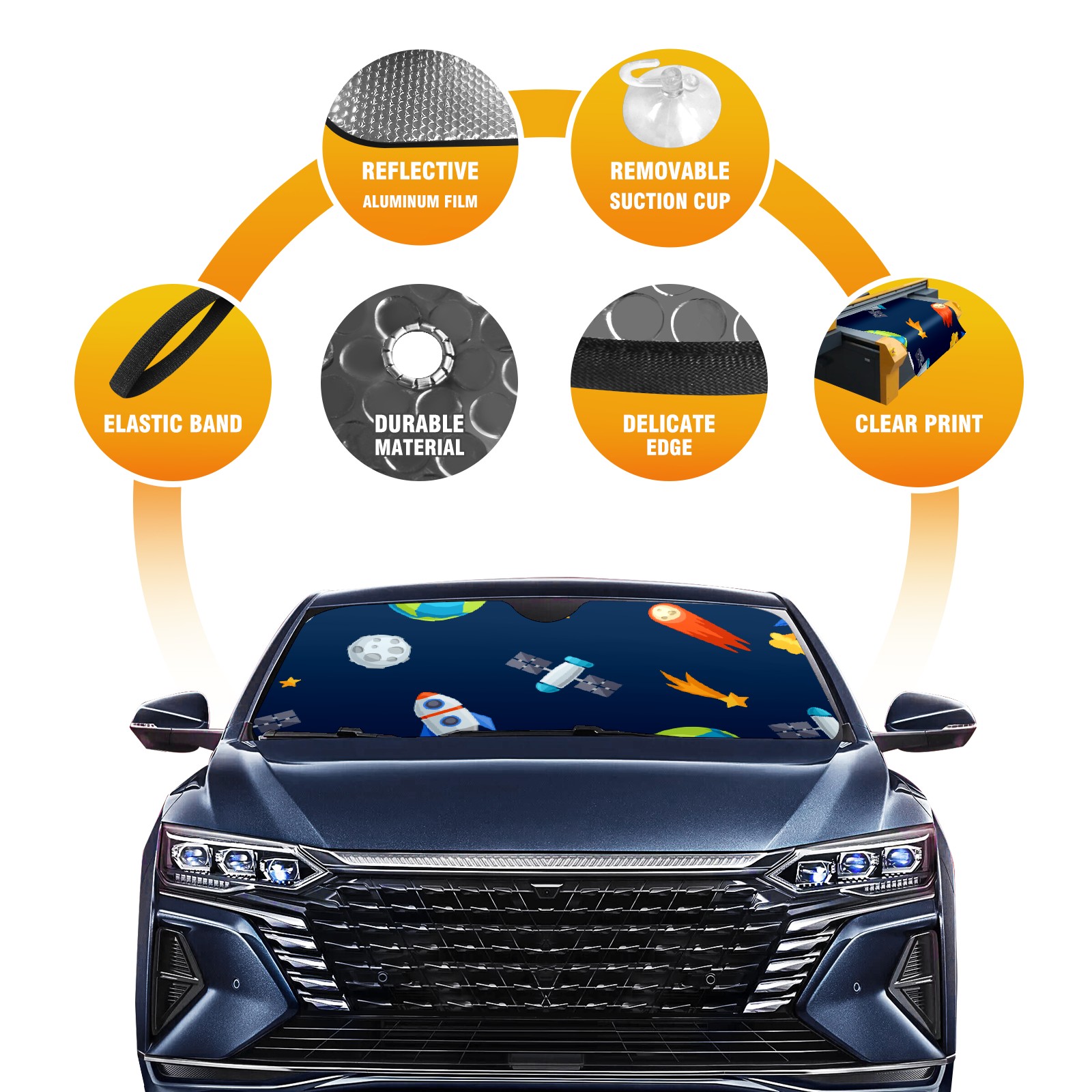 Car Windshield Sun Shade For Front Window Solar System Planets Foldable Vehicle Windshield Car Sun Visor Covers Automotive Window Protector Car Camping Privacy Sun Blocker