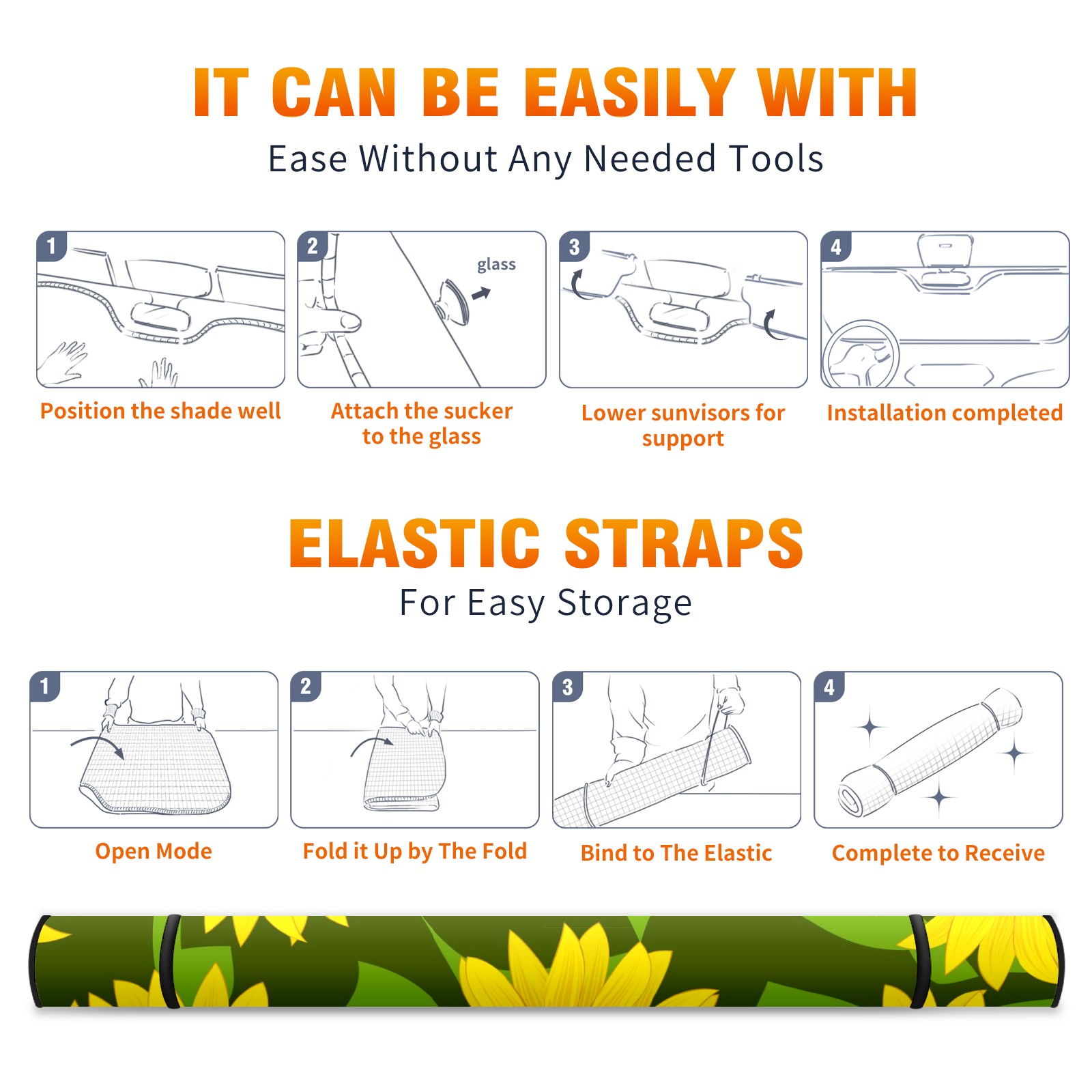 Car Windshield Sun Shade For Front Window Sunflower Foldable Vehicle Windshield Car Sun Visor Covers Automotive Window Protector Car Camping Privacy Sun Blocker