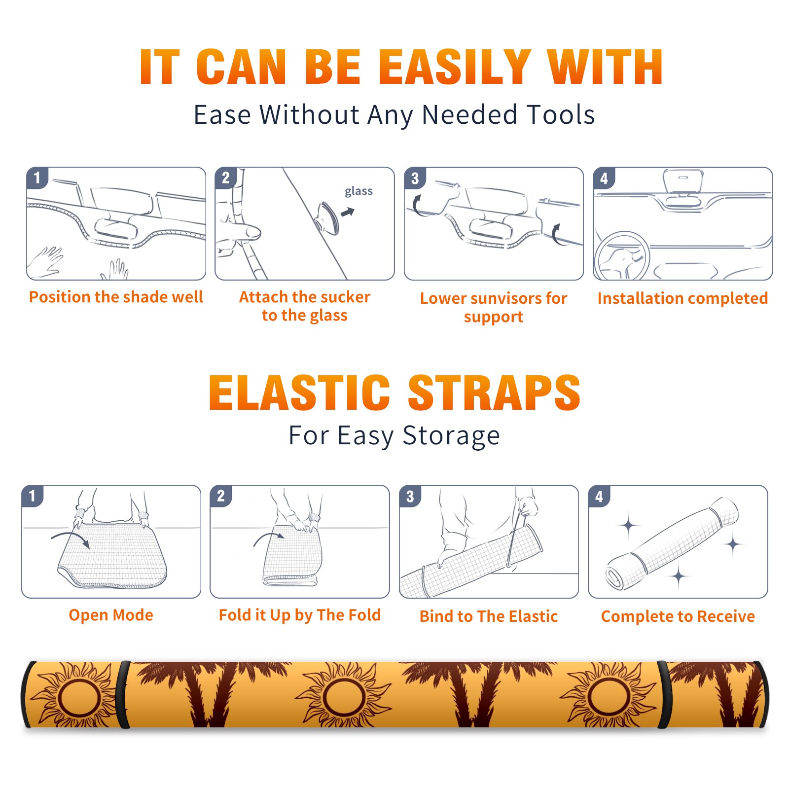 • Diameter /Size 63"L x 33.5"W Made from excellent materials which makes it sturdy and protects the car from the sun. Easy to use and pack. Makes the interior of the car cooler.You can easily stash the sunshade in the storage bag or store long term.It open and closes easy. Also the leather storage bag is durable and easy to put the umbrella back into.This windshield sunshade provides complete coverage and keeps your car interior cool under direct sun. It is easy to open and position under the windshield and around the rear-view mirror. Makes Your Car Easy To Identify, Perfect For Finding Your Car In Crowded Parking Lots And Garages.Great Choice: It Is A Great Gift For Dad, Boyfriend, Brother, Brother And Uncle, Friends, Classmates, Family And So On. Notice: Due To Difference Computer Monitors, The Color Maybe Slightly Different From Picture. As Different Measurement Methods, Measurement Data Will Float Within 2%.I Hope You Understand. If You Have Any Question About The Item Please Do Not Hesitate To Contact Us Immediately And We Will Give You A Satisfactory Reply Within 24 Hours.