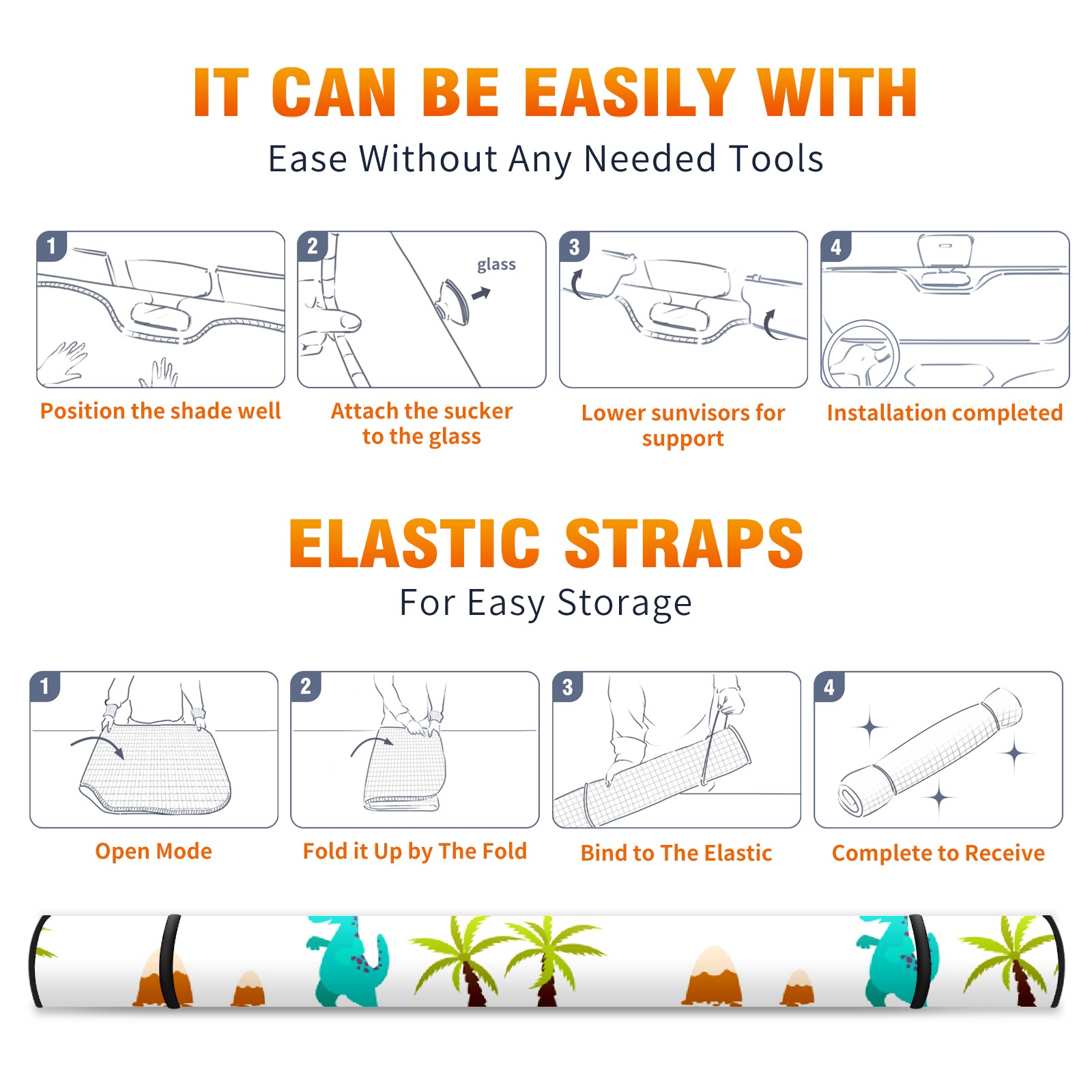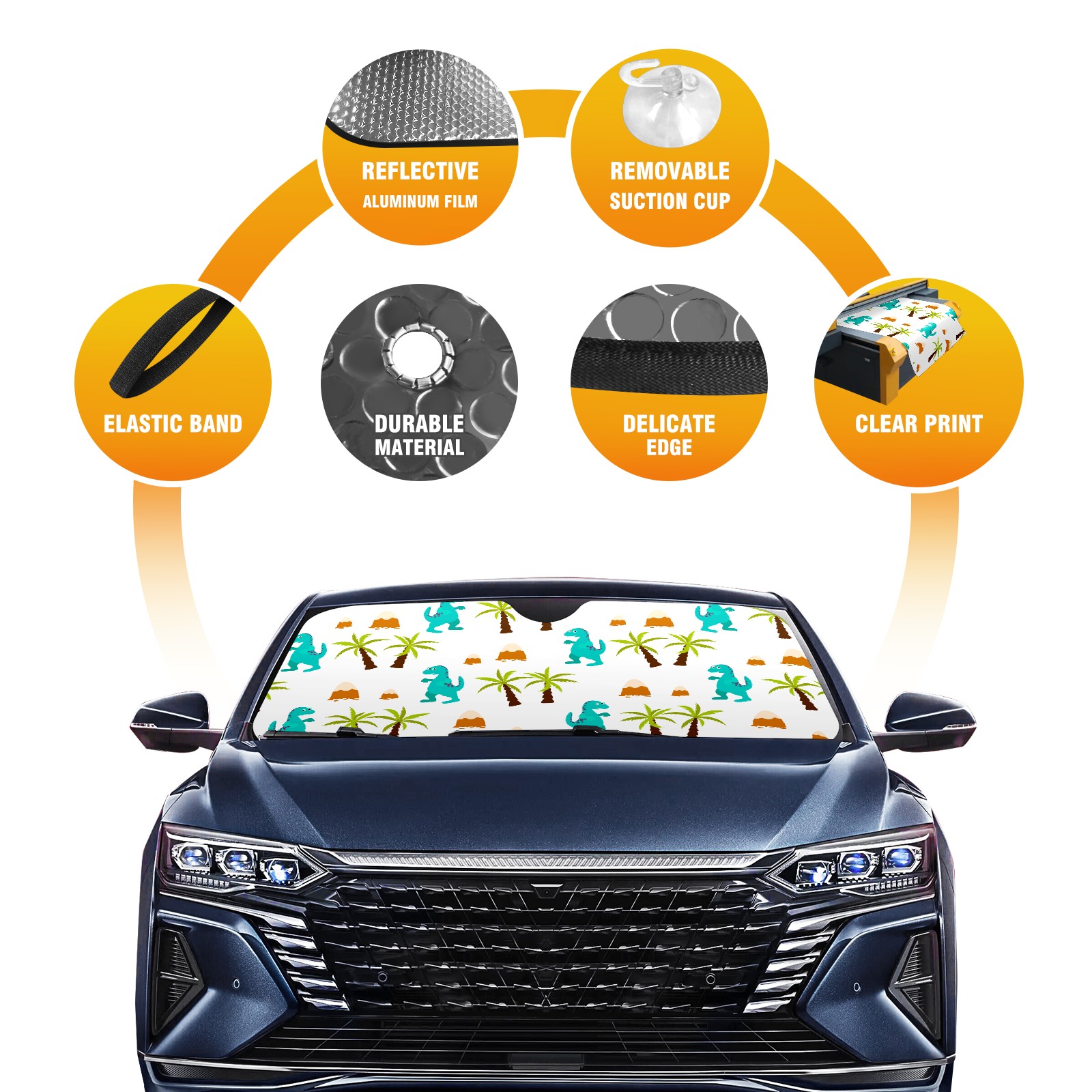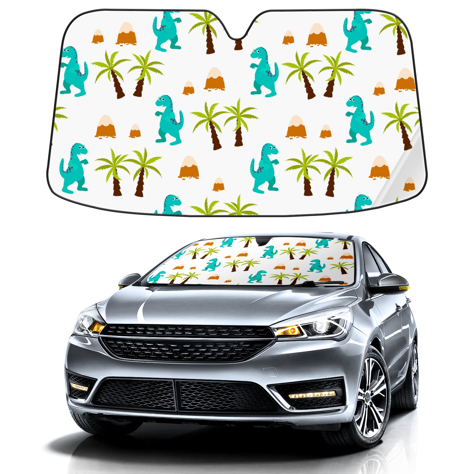 Car Windshield Sun Shade For Front Window Cartoon Dinosaur Foldable Vehicle Windshield Car Sun Visor Covers Automotive Window Protector Car Camping Privacy Sun Blocker