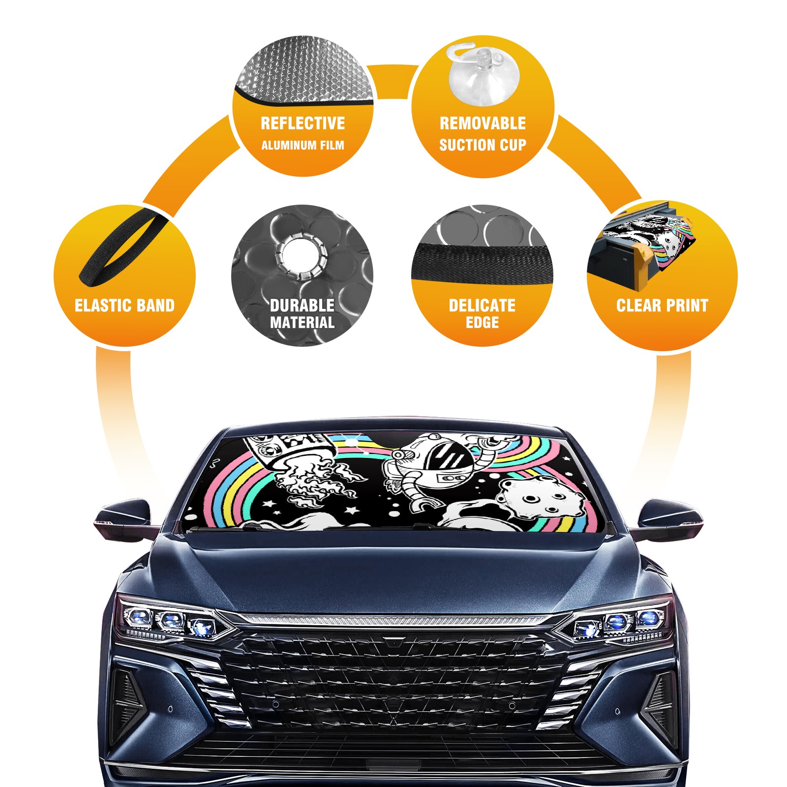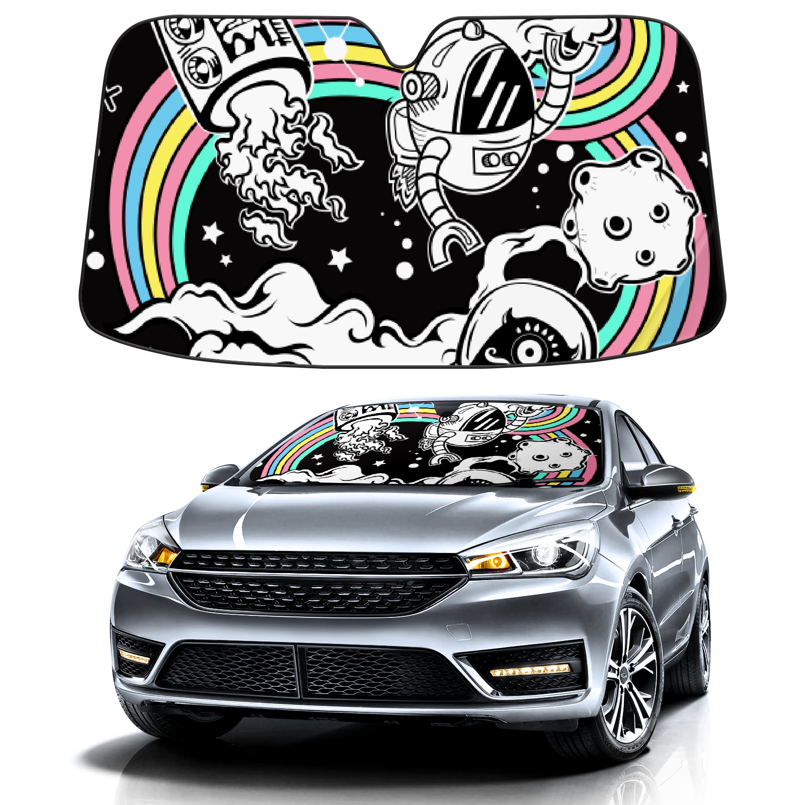 Car Windshield Sun Shade For Front Window Robot Rainbow Foldable Vehicle Windshield Car Sun Visor Covers Automotive Window Protector Car Camping Privacy Sun Blocker