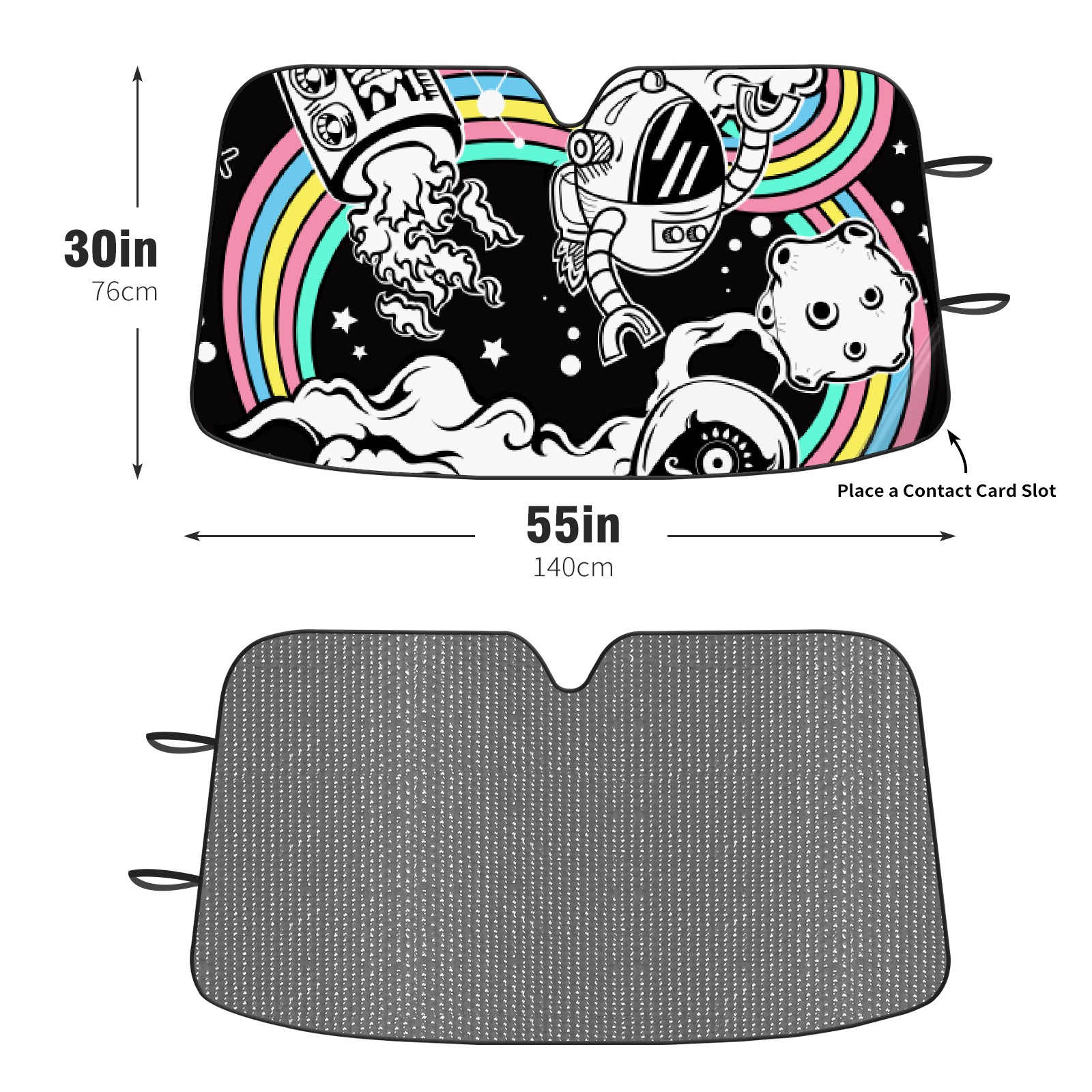 Diameter /Size 63"L x 33.5"W Made from excellent materials which makes it sturdy and protects the car from the sun. Easy to use and pack. Makes the interior of the car cooler.You can easily stash the sunshade in the storage bag or store long term.It open and closes easy. Also the leather storage bag is durable and easy to put the umbrella back into.This windshield sunshade provides complete coverage and keeps your car interior cool under direct sun. It is easy to open and position under the windshield and around the rear-view mirror. Makes Your Car Easy To Identify, Perfect For Finding Your Car In Crowded Parking Lots And Garages.Great Choice: It Is A Great Gift For Dad, Boyfriend, Brother, Brother And Uncle, Friends, Classmates, Family And So On. Notice: Due To Difference Computer Monitors, The Color Maybe Slightly Different From Picture. As Different Measurement Methods, Measurement Data Will Float Within 2%.I Hope You Understand. If You Have Any Question About The Item Please Do Not Hesitate To Contact Us Immediately And We Will Give You A Satisfactory Reply Within 24 Hours.