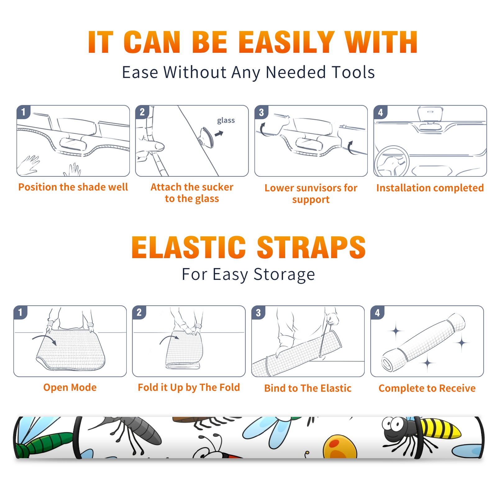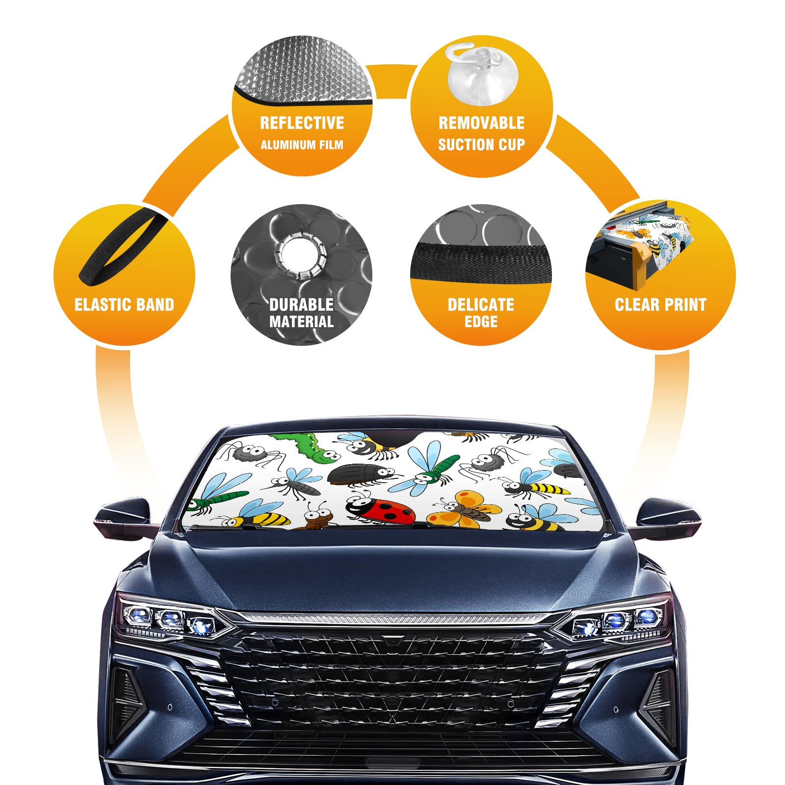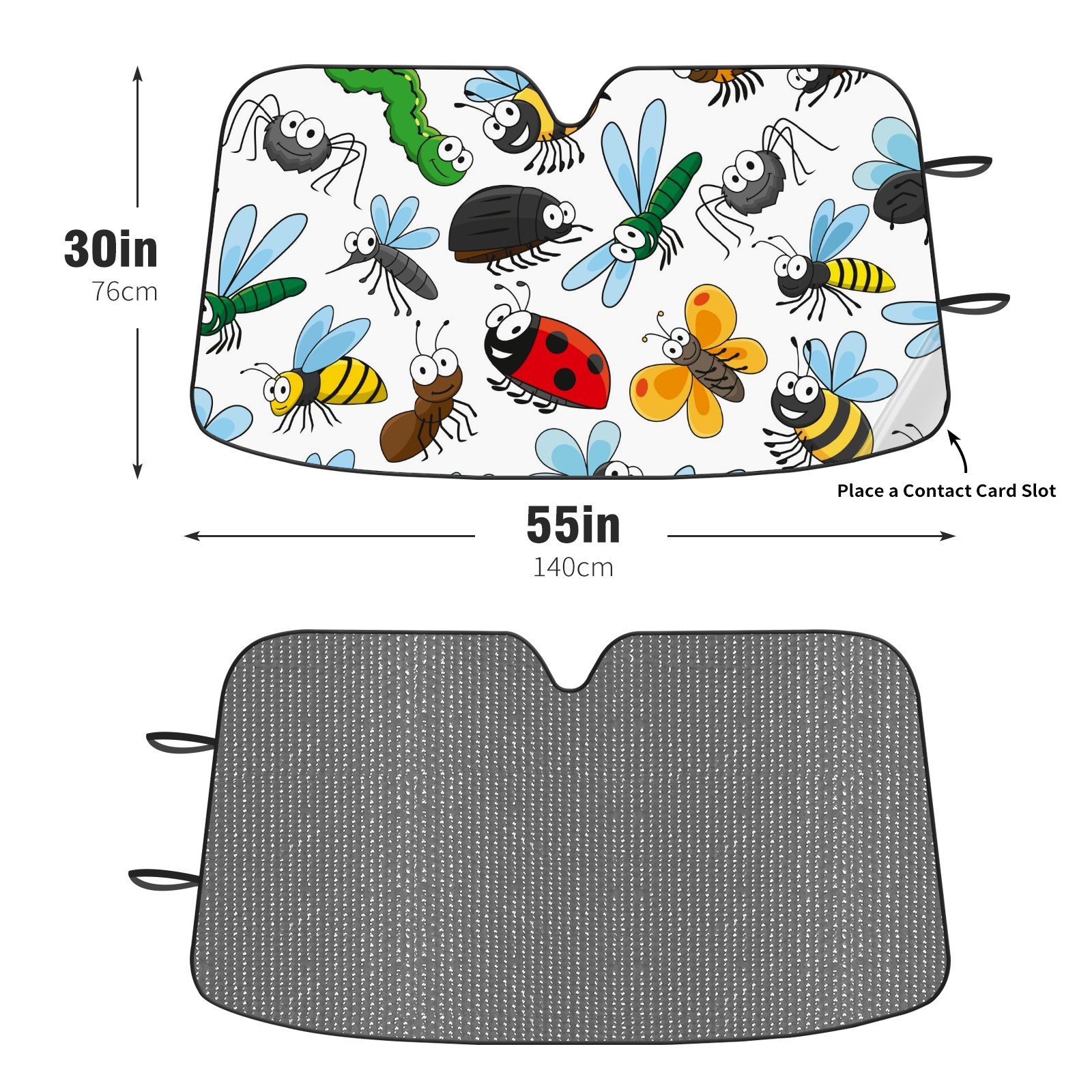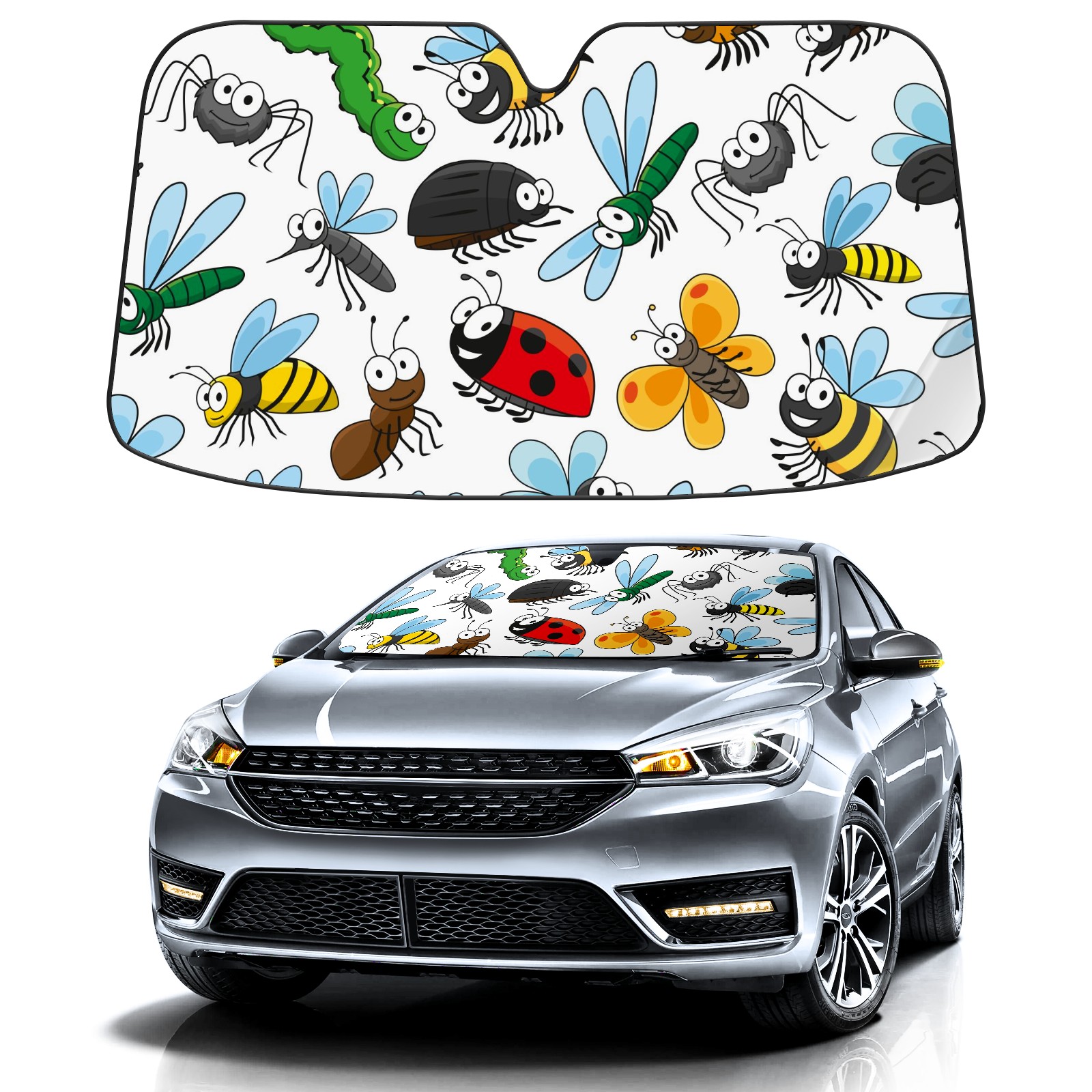 Car Windshield Sun Shade For Front Window Cartoon Insects Foldable Vehicle Windshield Car Sun Visor Covers Automotive Window Protector Car Camping Privacy Sun Blocker