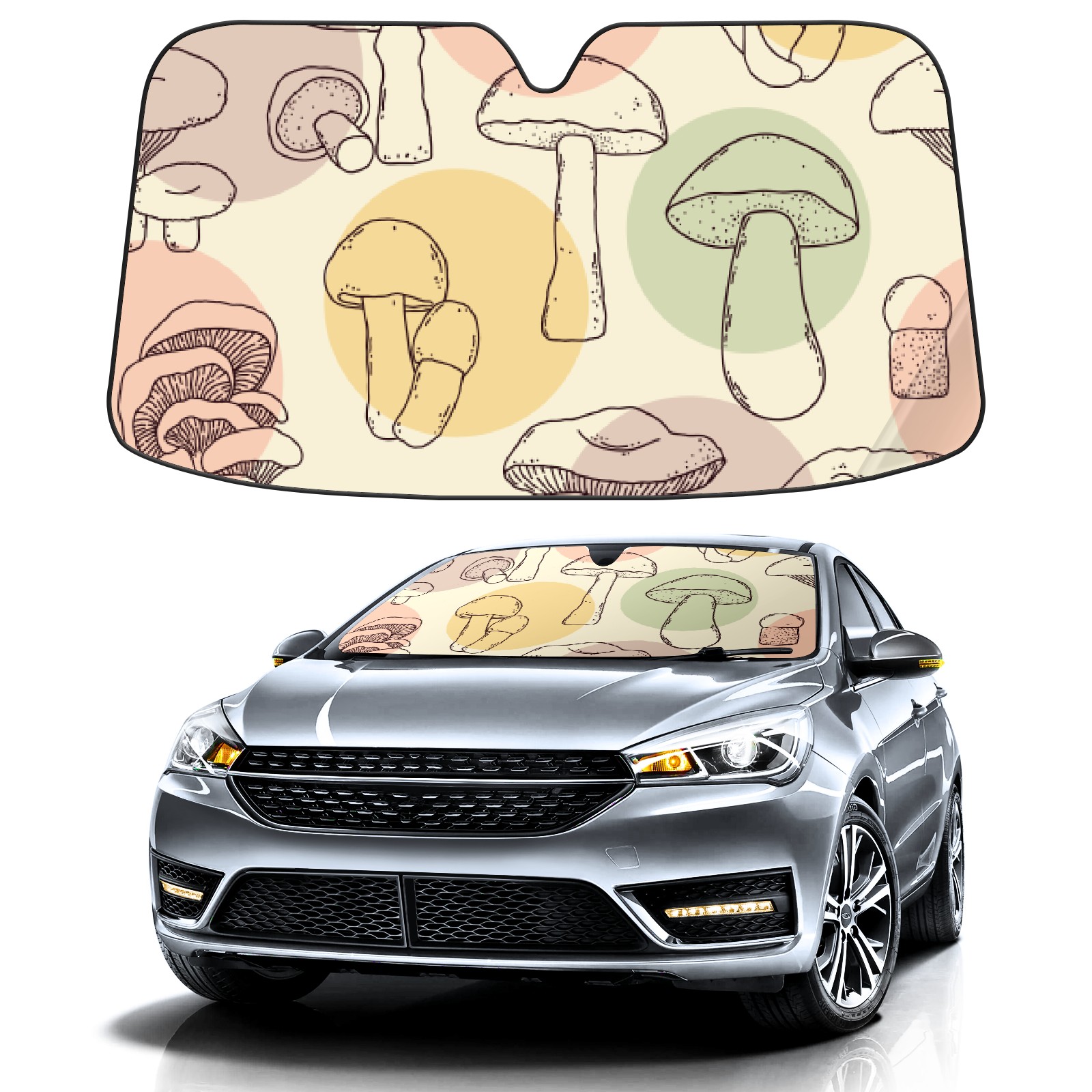 Car Windshield Sun Shade For Front Window Mushroom Doodle Style Foldable Vehicle Windshield Car Sun Visor Covers Automotive Window Protector Car Camping Privacy Sun Blocker