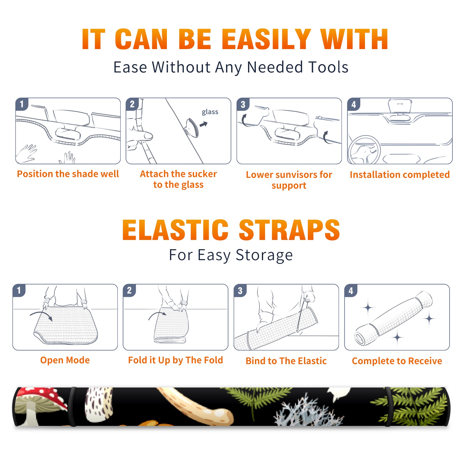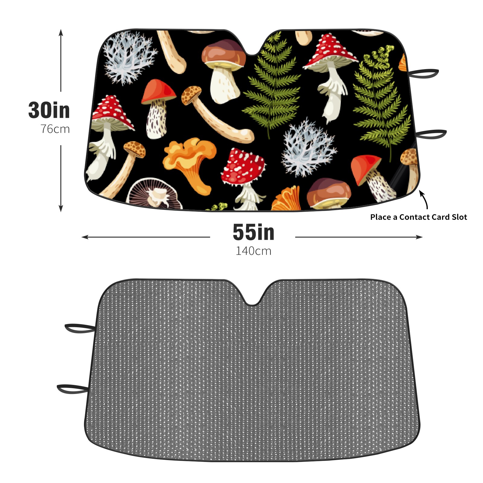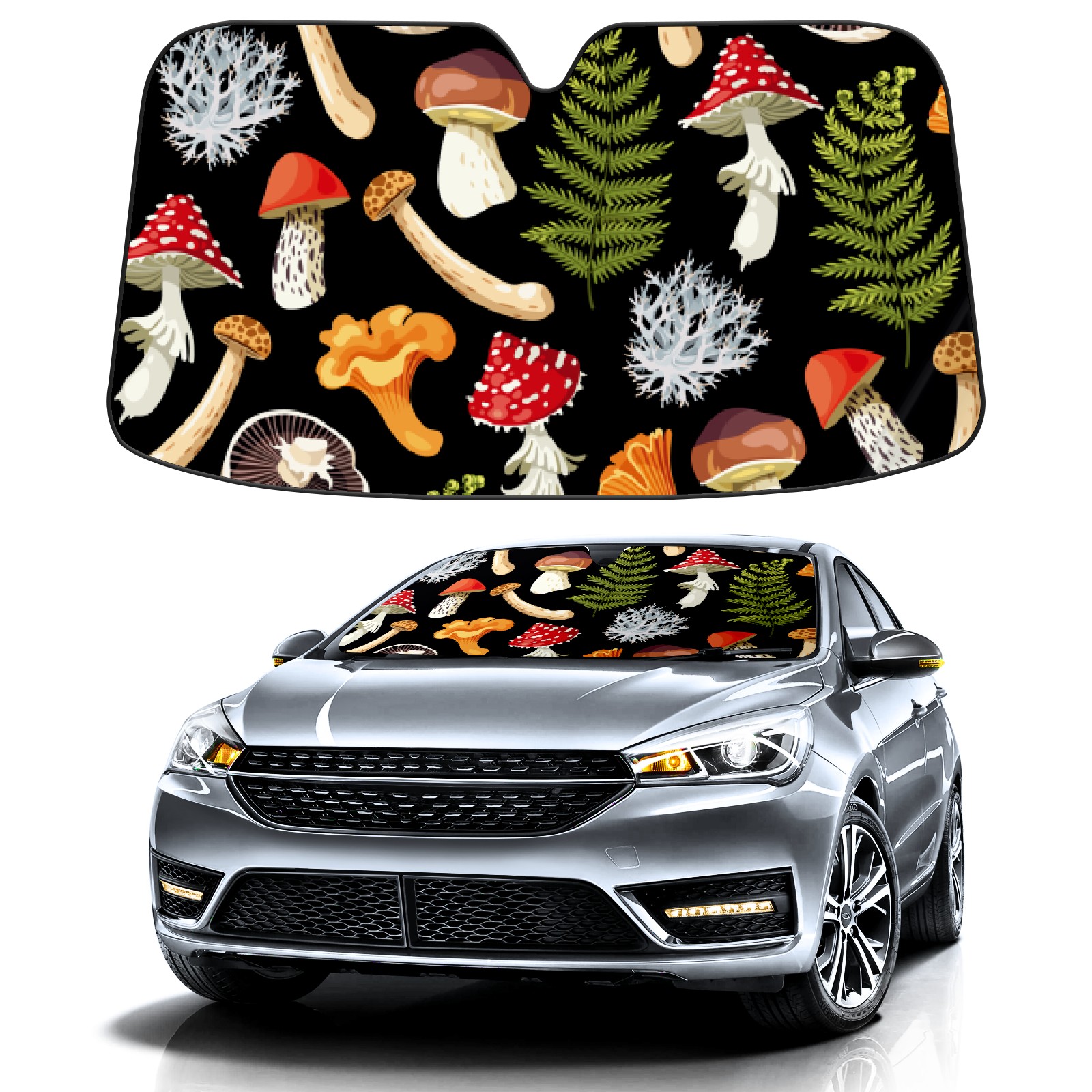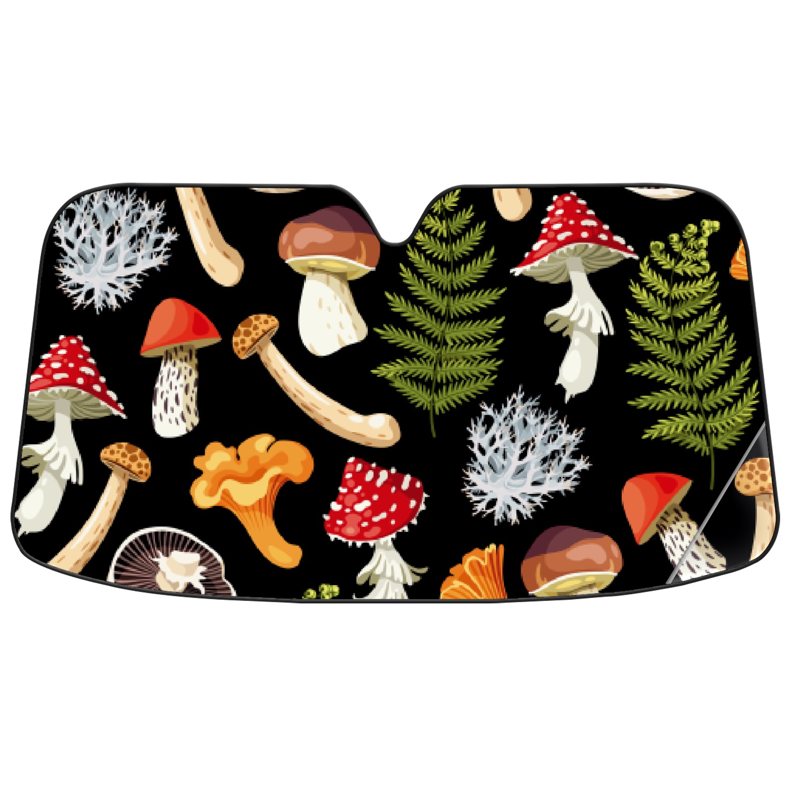 Car Windshield Sun Shade For Front Window Cute Mushroom On Black Background Foldable Vehicle Windshield Car Sun Visor Covers Automotive Window Protector Car Camping Privacy Sun Blocker