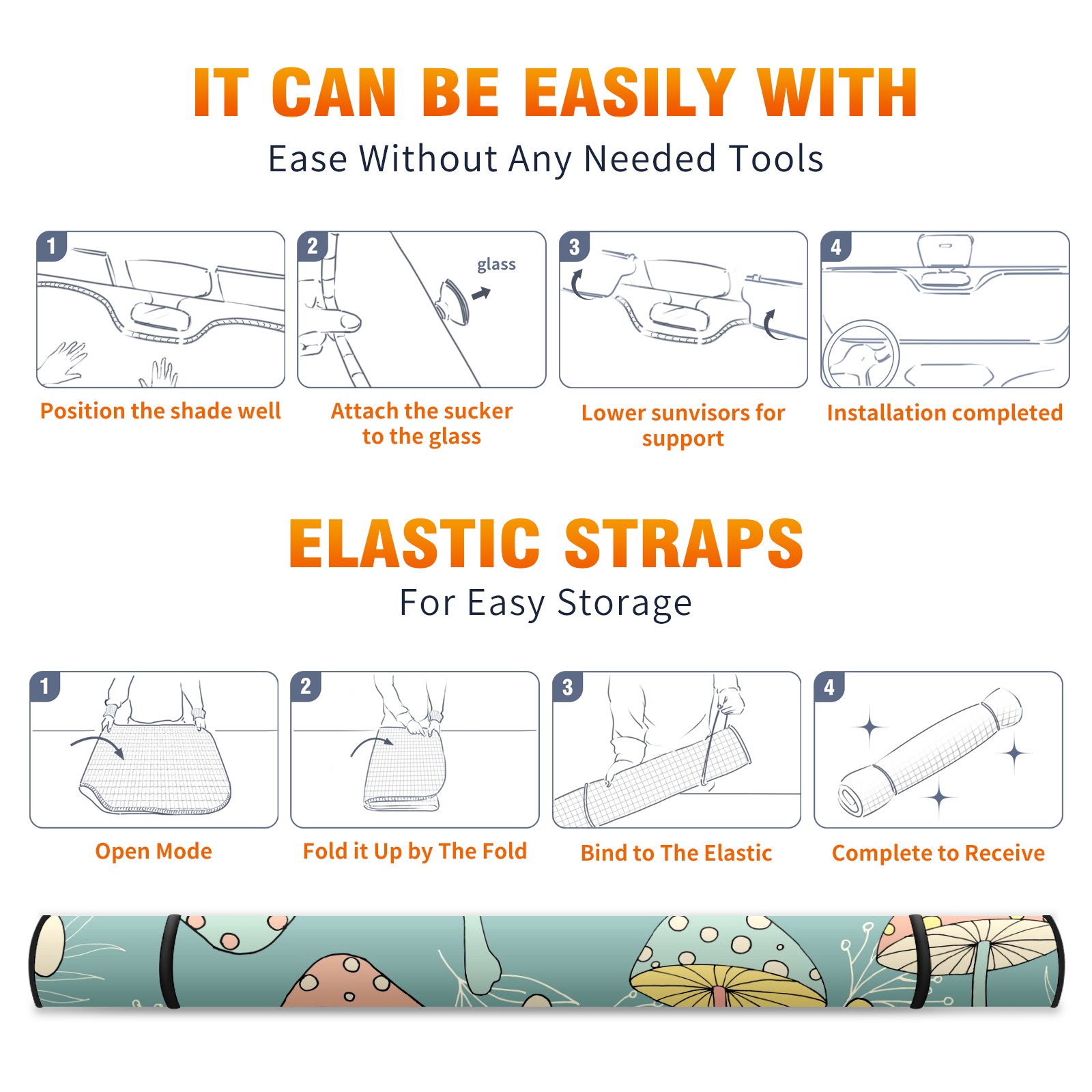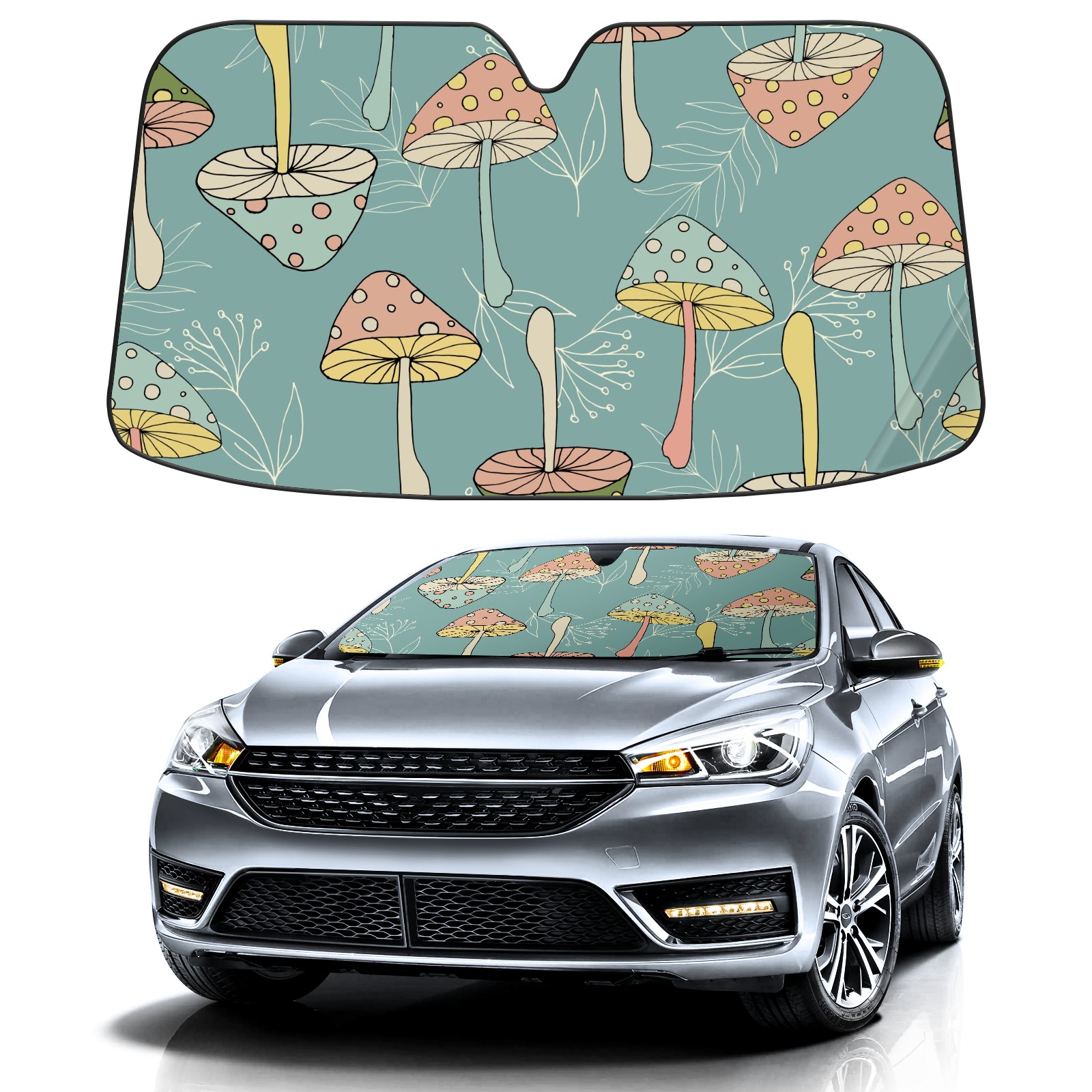 Car Windshield Sun Shade For Front Window Colorful Mushrooms And Light Leaves Foldable Vehicle Windshield Car Sun Visor Covers Automotive Window Protector Car Camping Privacy Sun Blocker