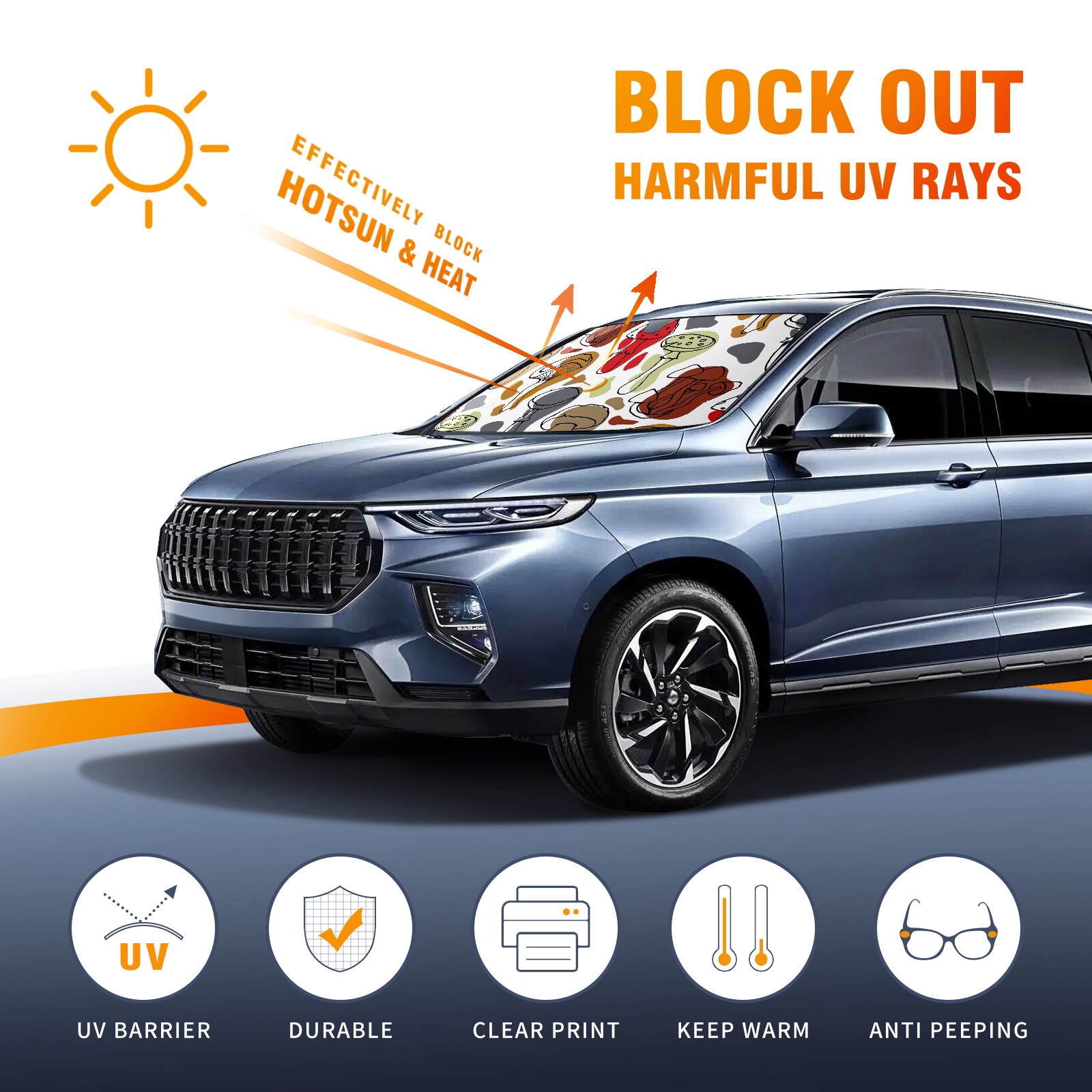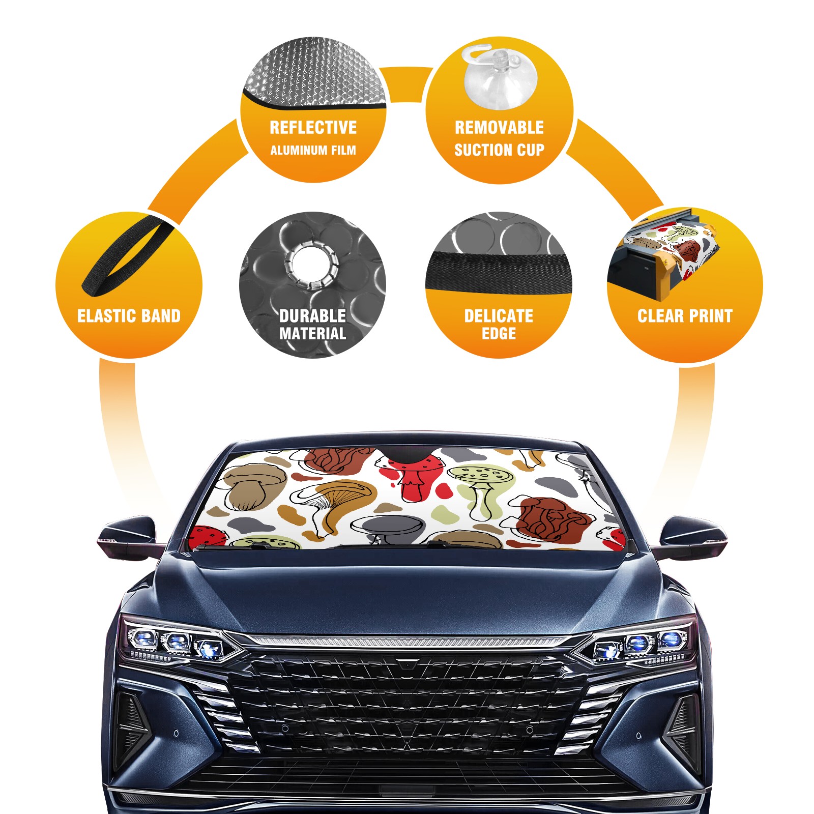 Car Windshield Sun Shade For Front Window Abstract Mushroom Art Foldable Vehicle Windshield Car Sun Visor Covers Automotive Window Protector Car Camping Privacy Sun Blocker
