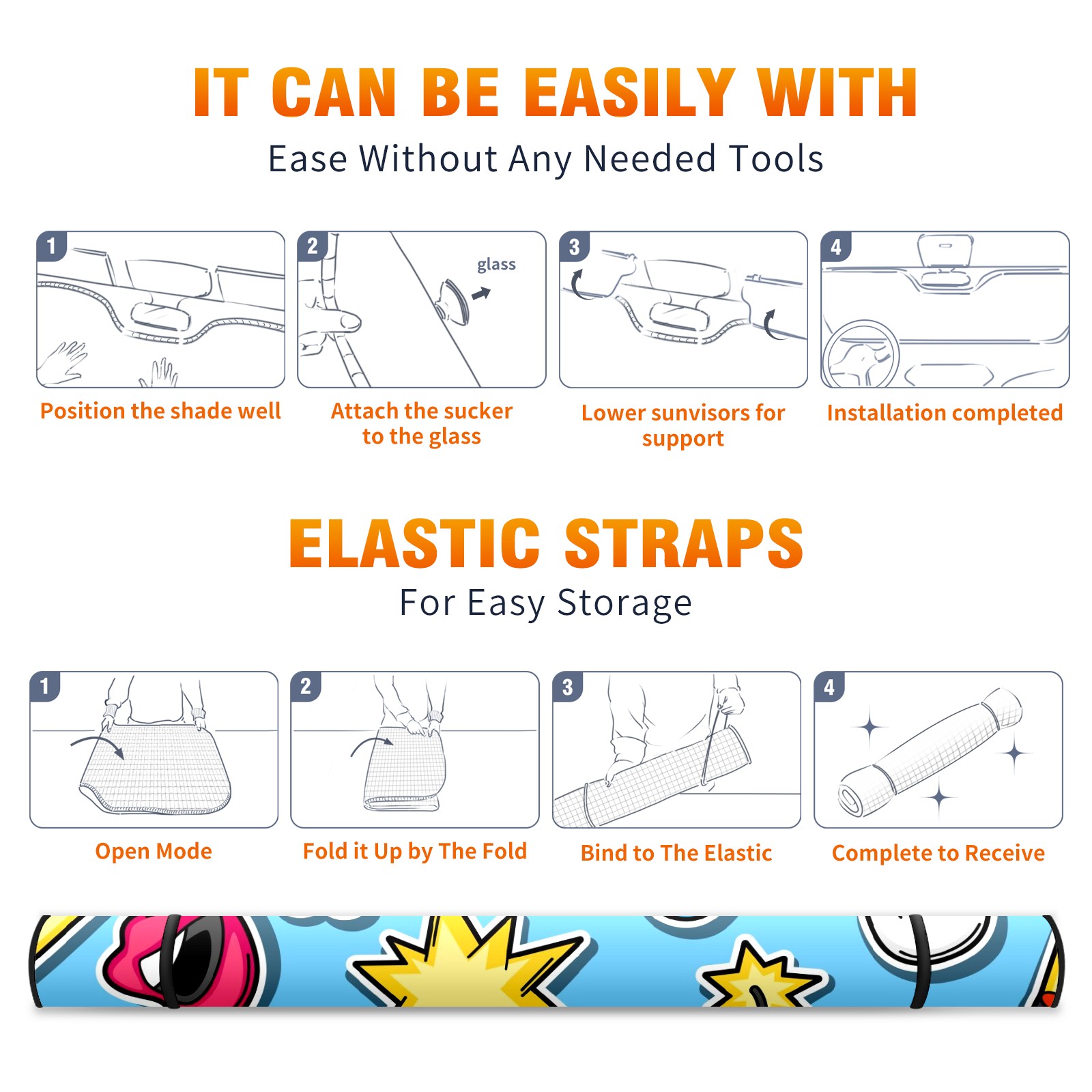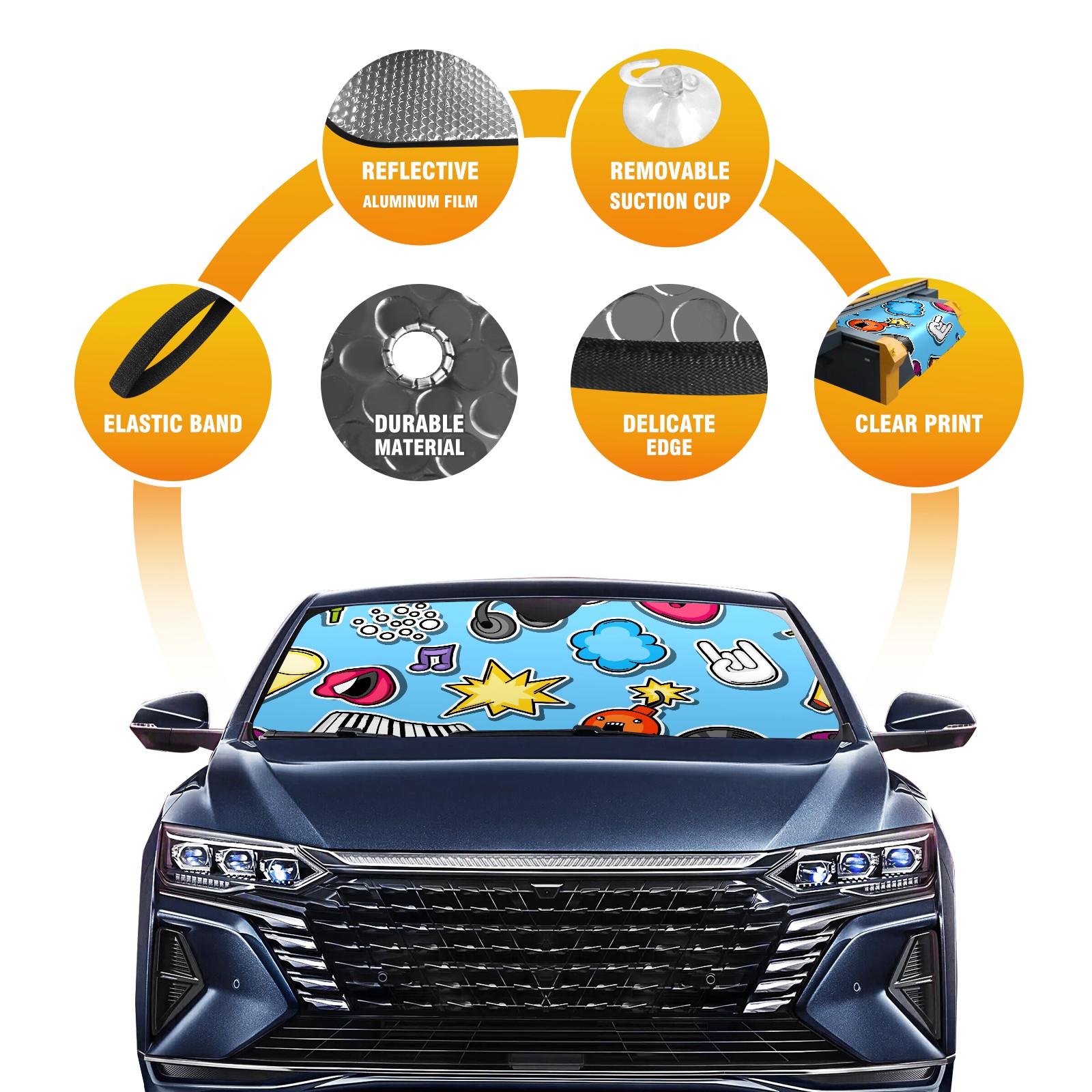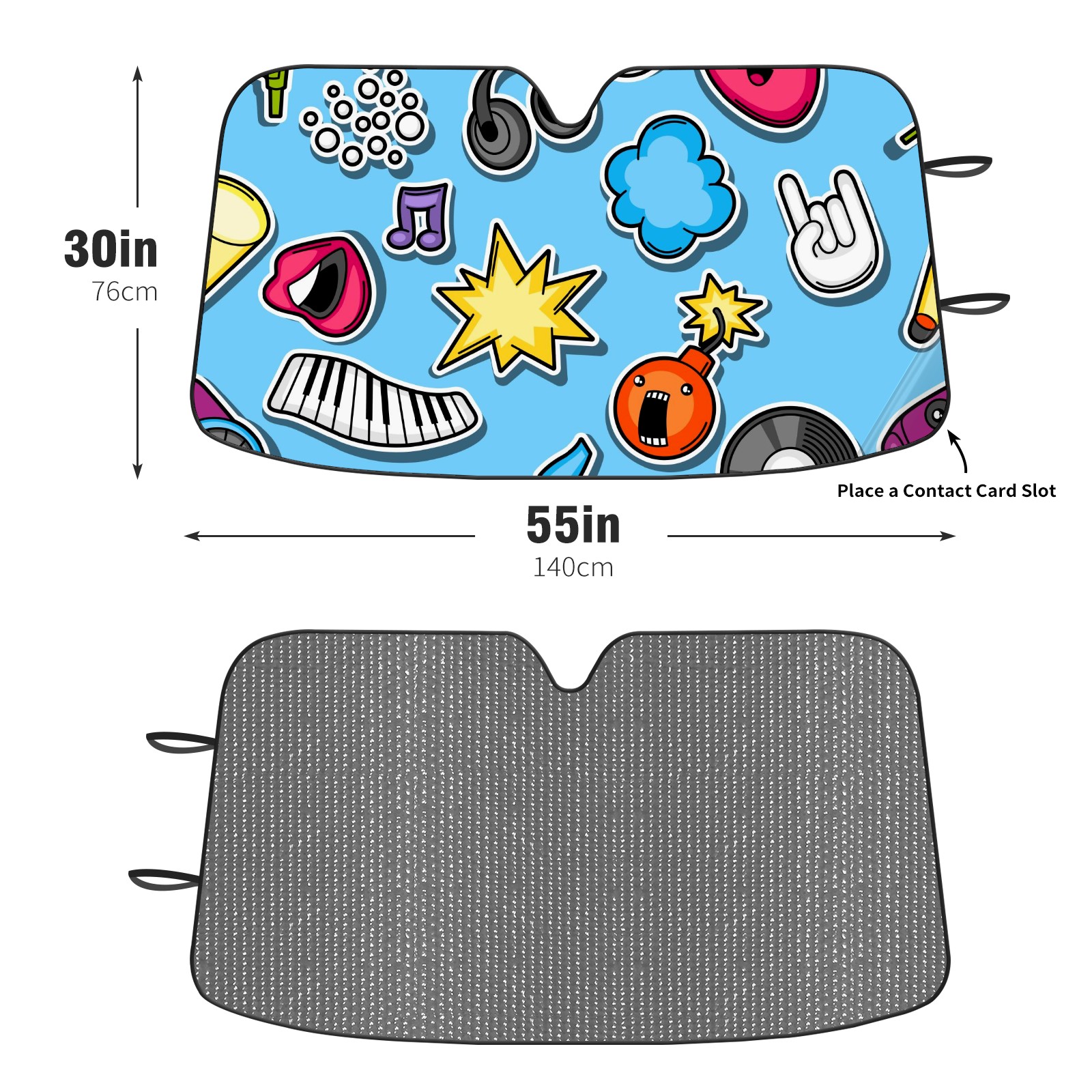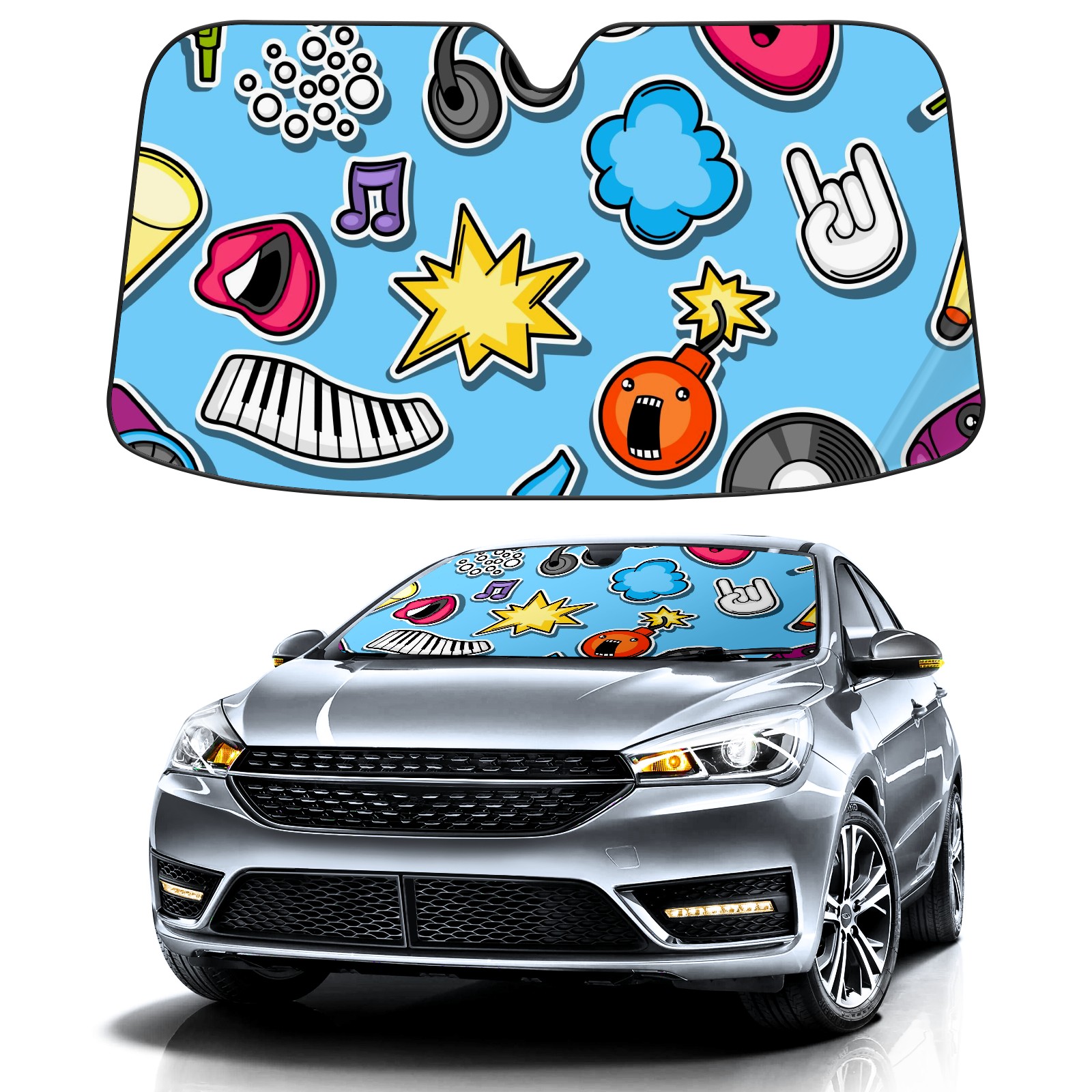 Car Windshield Sun Shade For Front Window Music Party Kawaii Foldable Vehicle Windshield Car Sun Visor Covers Automotive Window Protector Car Camping Privacy Sun Blocker