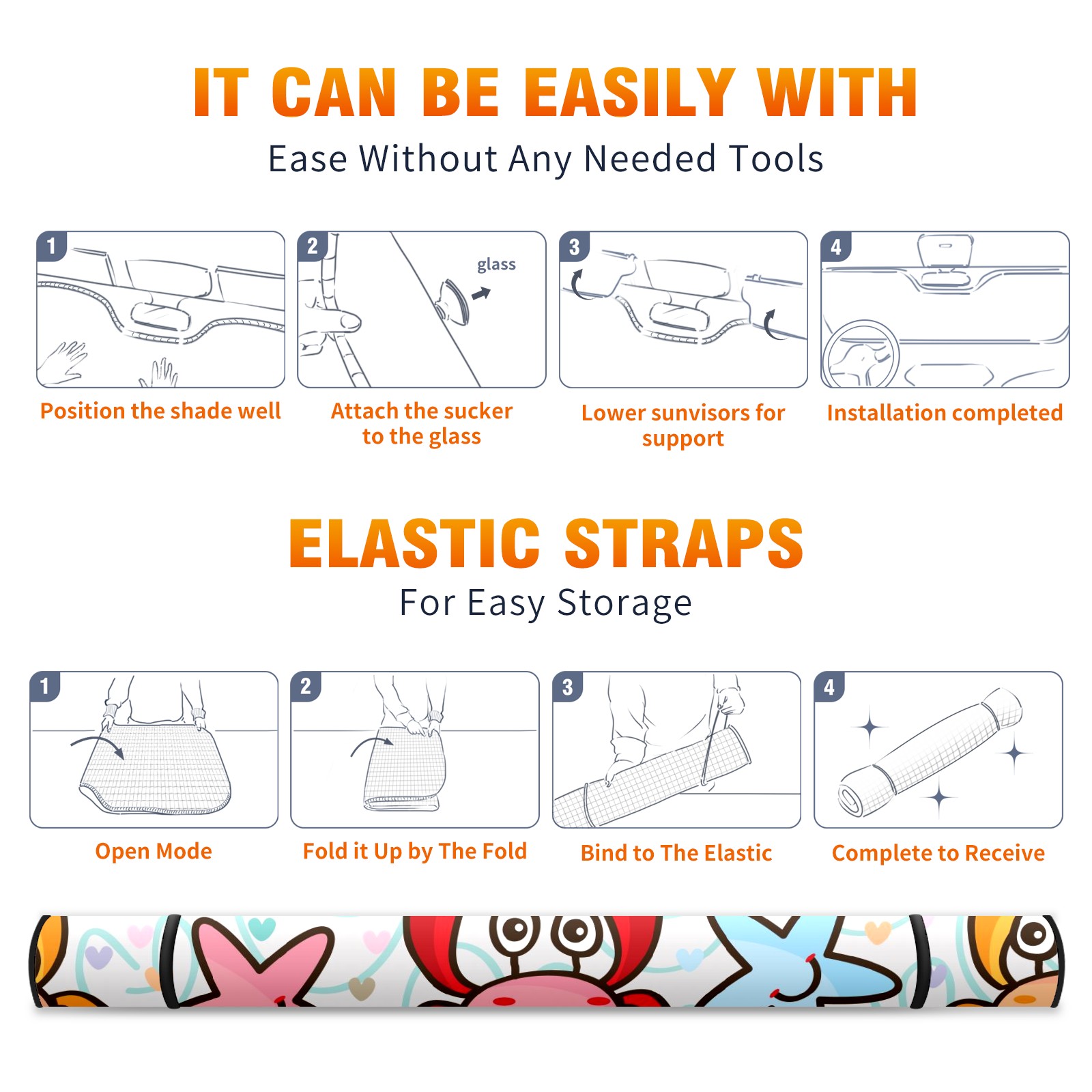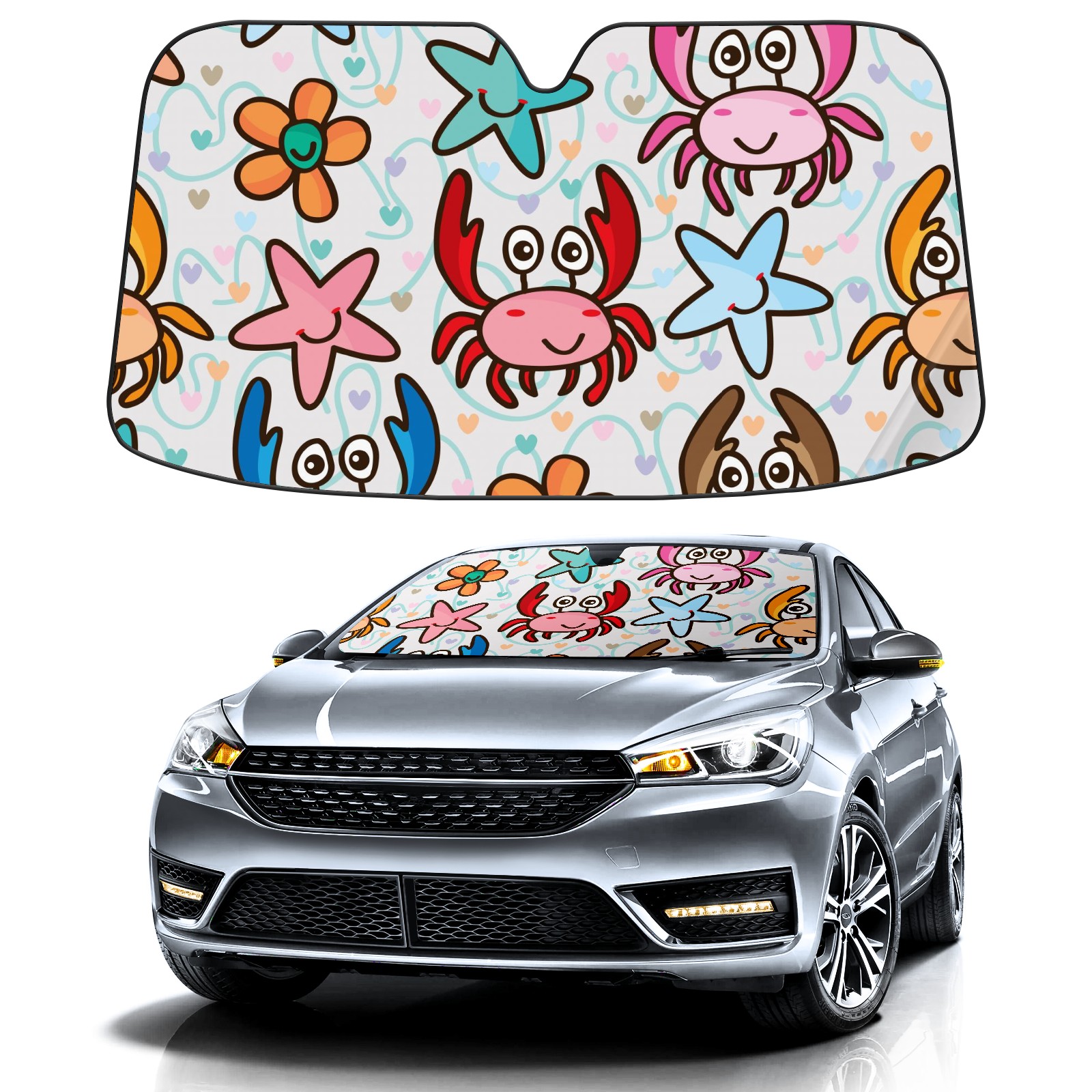 Car Windshield Sun Shade For Front Window Smiling Crab Foldable Vehicle Windshield Car Sun Visor Covers Automotive Window Protector Car Camping Privacy Sun Blocker
