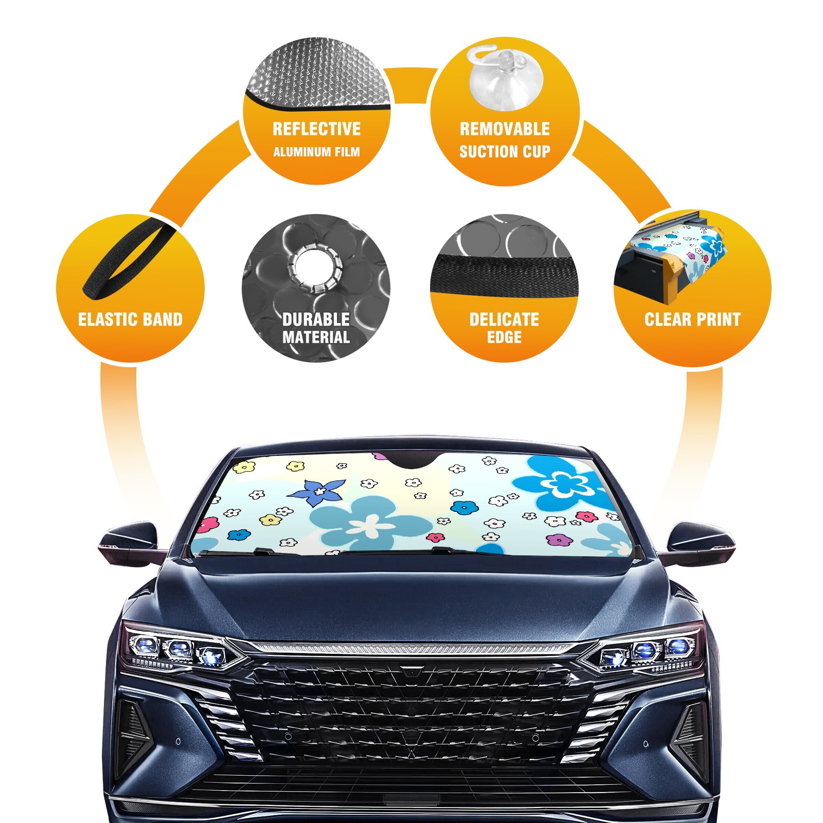 Car Windshield Sun Shade For Front Window Childhood Floral Chart Foldable Vehicle Windshield Car Sun Visor Covers Automotive Window Protector Car Camping Privacy Sun Blocker