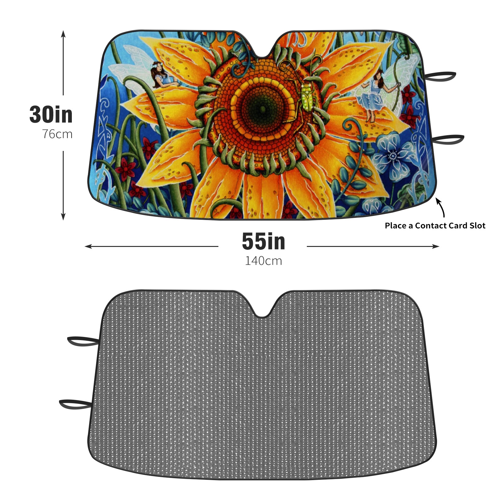 Diameter /Size 63"L x 33.5"W Made from excellent materials which makes it sturdy and protects the car from the sun. Easy to use and pack. Makes the interior of the car cooler.You can easily stash the sunshade in the storage bag or store long term.It open and closes easy. Also the leather storage bag is durable and easy to put the umbrella back into.This windshield sunshade provides complete coverage and keeps your car interior cool under direct sun. It is easy to open and position under the windshield and around the rear-view mirror. Makes Your Car Easy To Identify, Perfect For Finding Your Car In Crowded Parking Lots And Garages.Great Choice: It Is A Great Gift For Dad, Boyfriend, Brother, Brother And Uncle, Friends, Classmates, Family And So On. Notice: Due To Difference Computer Monitors, The Color Maybe Slightly Different From Picture. As Different Measurement Methods, Measurement Data Will Float Within 2%.I Hope You Understand. If You Have Any Question About The Item Please Do Not Hesitate To Contact Us Immediately And We Will Give You A Satisfactory Reply Within 24 Hours.