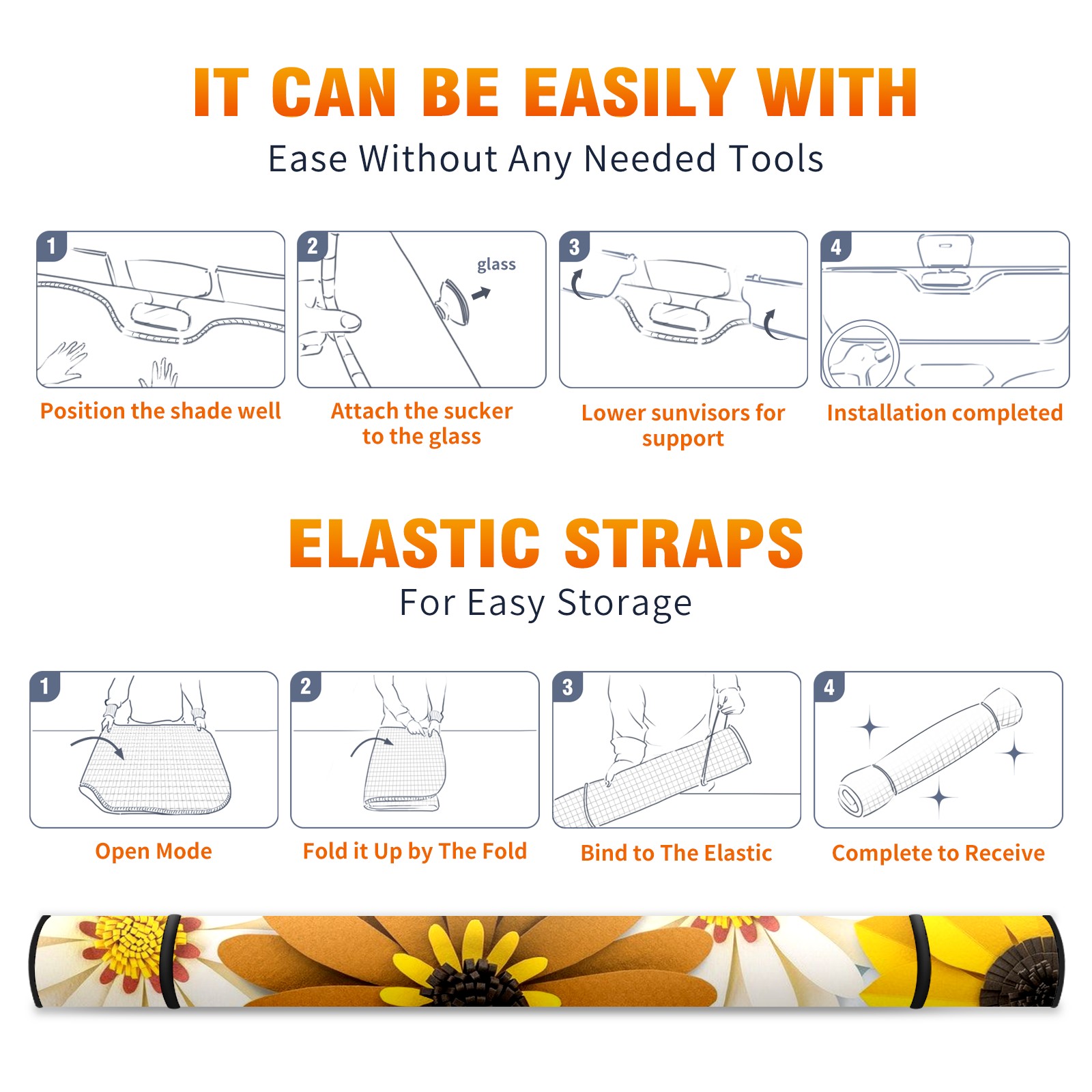 • Diameter /Size 63"L x 33.5"W Made from excellent materials which makes it sturdy and protects the car from the sun. Easy to use and pack. Makes the interior of the car cooler.You can easily stash the sunshade in the storage bag or store long term.It open and closes easy. Also the leather storage bag is durable and easy to put the umbrella back into.This windshield sunshade provides complete coverage and keeps your car interior cool under direct sun. It is easy to open and position under the windshield and around the rear-view mirror. Makes Your Car Easy To Identify, Perfect For Finding Your Car In Crowded Parking Lots And Garages.Great Choice: It Is A Great Gift For Dad, Boyfriend, Brother, Brother And Uncle, Friends, Classmates, Family And So On. Notice: Due To Difference Computer Monitors, The Color Maybe Slightly Different From Picture. As Different Measurement Methods, Measurement Data Will Float Within 2%.I Hope You Understand. If You Have Any Question About The Item Please Do Not Hesitate To Contact Us Immediately And We Will Give You A Satisfactory Reply Within 24 Hours.