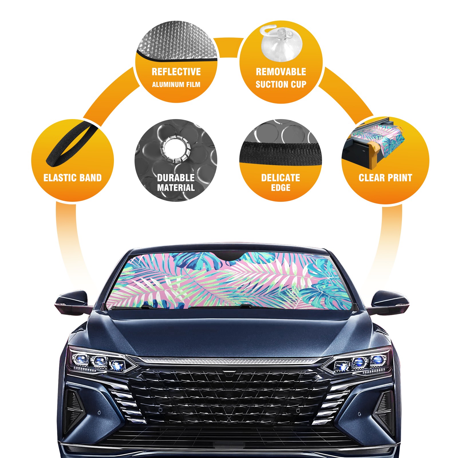 Car Windshield Sun Shade For Front Window Abstract-tropical Foldable Vehicle Windshield Car Sun Visor Covers Automotive Window Protector Car Camping Privacy Sun Blocker