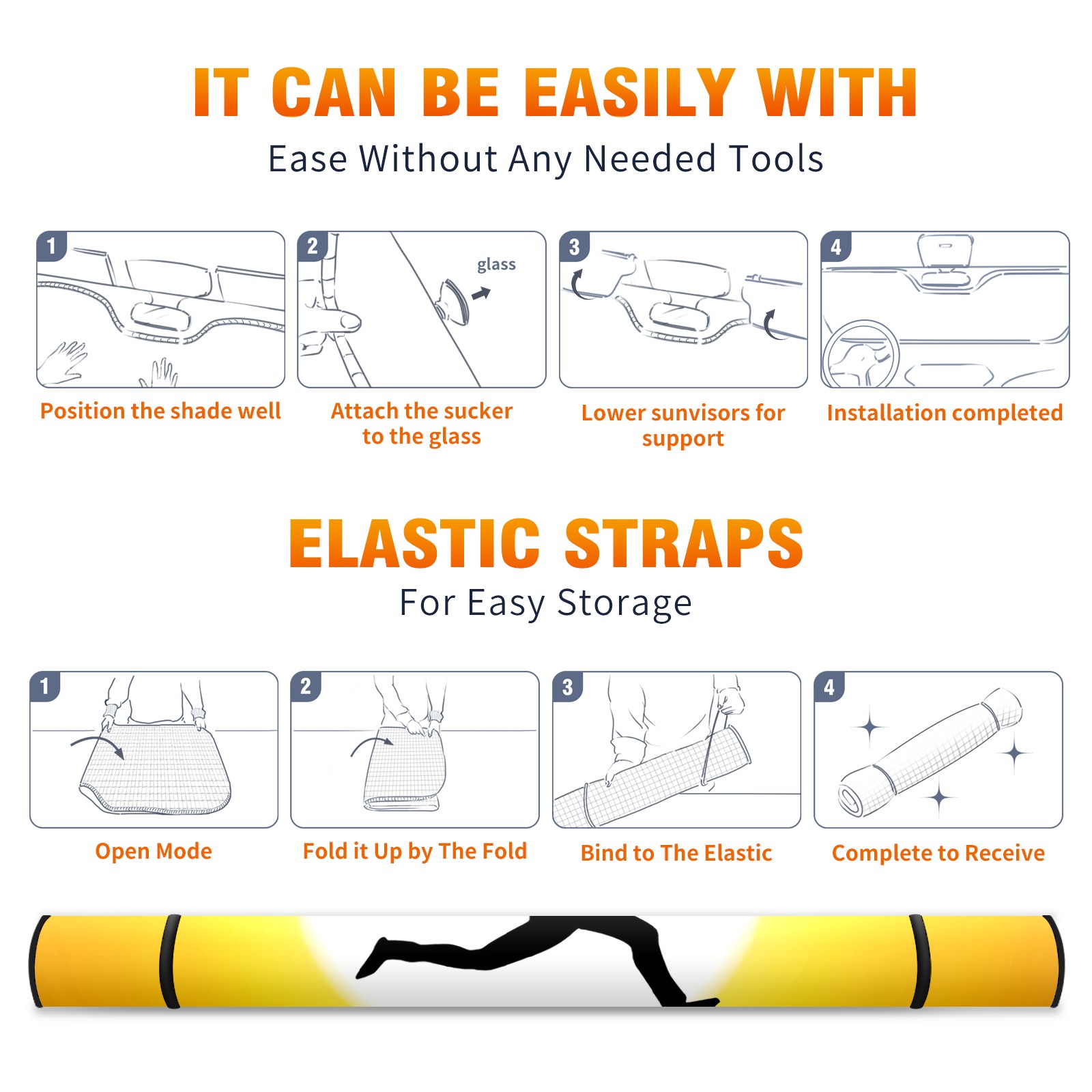 • Diameter /Size 63"L x 33.5"W Made from excellent materials which makes it sturdy and protects the car from the sun. Easy to use and pack. Makes the interior of the car cooler.You can easily stash the sunshade in the storage bag or store long term.It open and closes easy. Also the leather storage bag is durable and easy to put the umbrella back into.This windshield sunshade provides complete coverage and keeps your car interior cool under direct sun. It is easy to open and position under the windshield and around the rear-view mirror. Makes Your Car Easy To Identify, Perfect For Finding Your Car In Crowded Parking Lots And Garages.Great Choice: It Is A Great Gift For Dad, Boyfriend, Brother, Brother And Uncle, Friends, Classmates, Family And So On. Notice: Due To Difference Computer Monitors, The Color Maybe Slightly Different From Picture. As Different Measurement Methods, Measurement Data Will Float Within 2%.I Hope You Understand. If You Have Any Question About The Item Please Do Not Hesitate To Contact Us Immediately And We Will Give You A Satisfactory Reply Within 24 Hours.