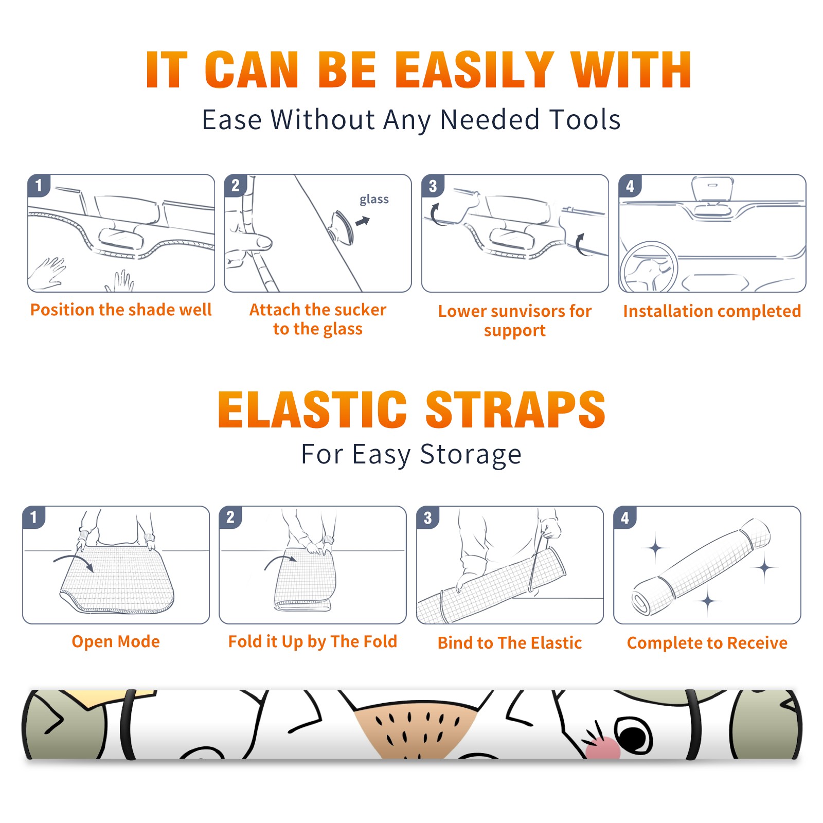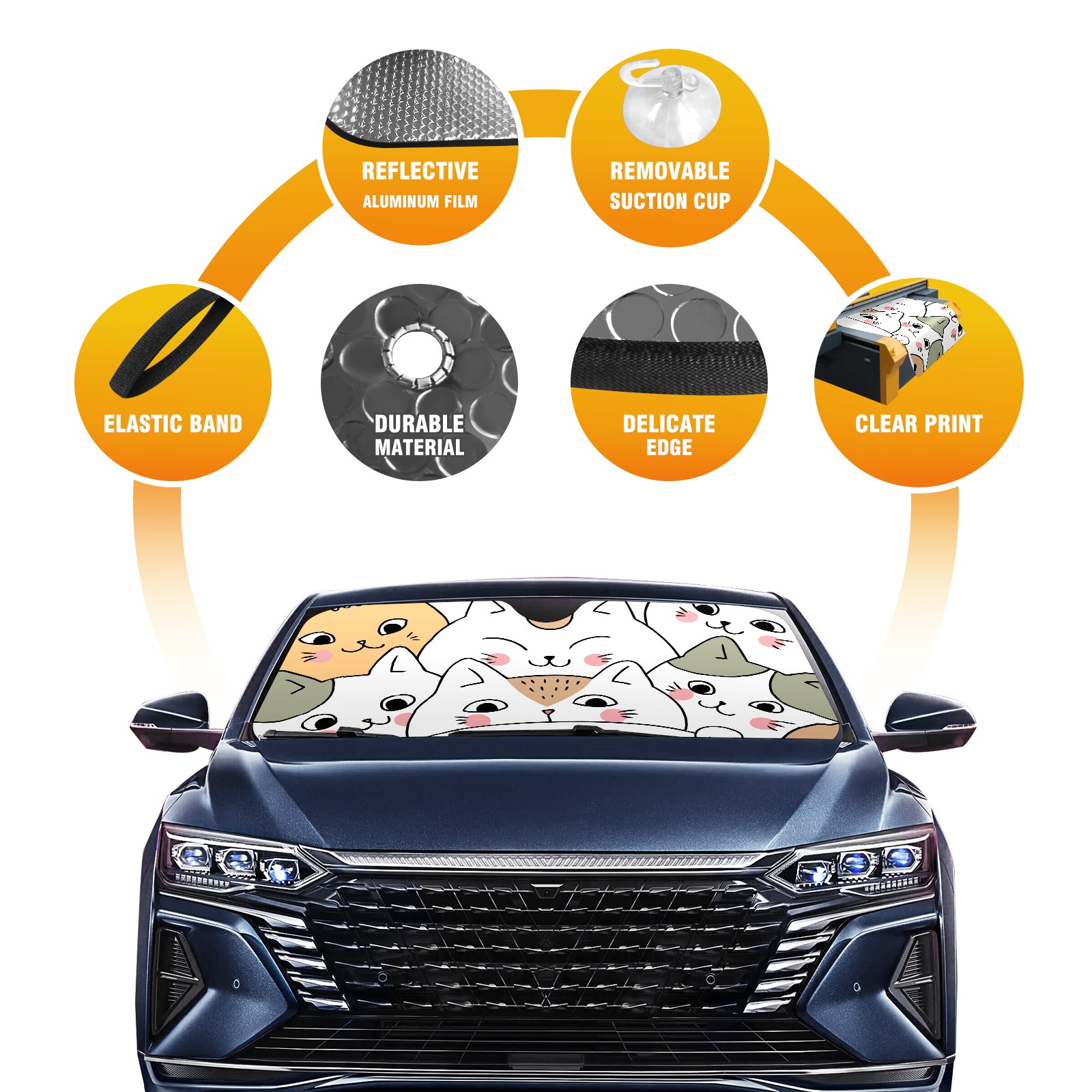 Car Windshield Sun Shade For Front Window Cartoon Cute Cat Foldable Vehicle Windshield Car Sun Visor Covers Automotive Window Protector Car Camping Privacy Sun Blocker