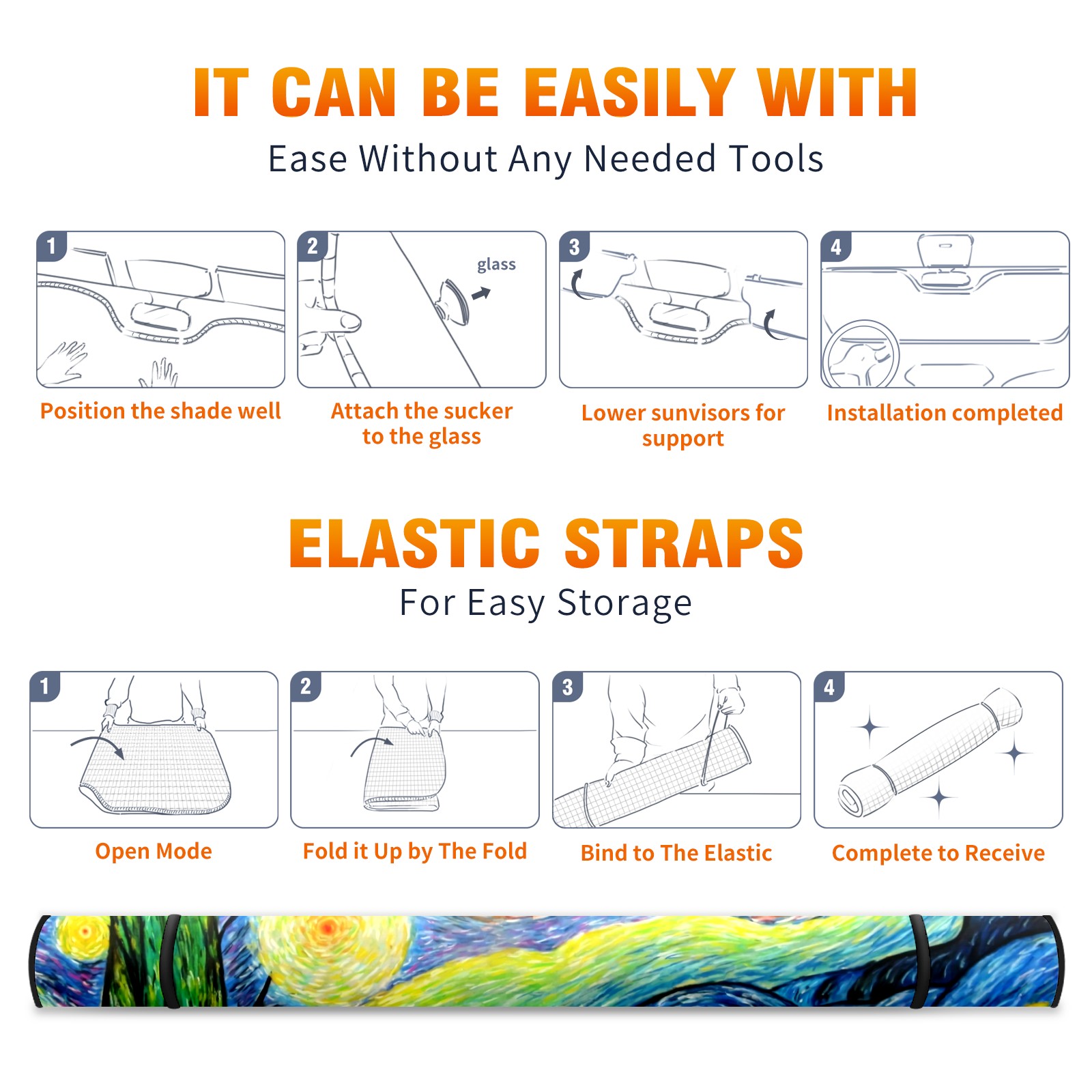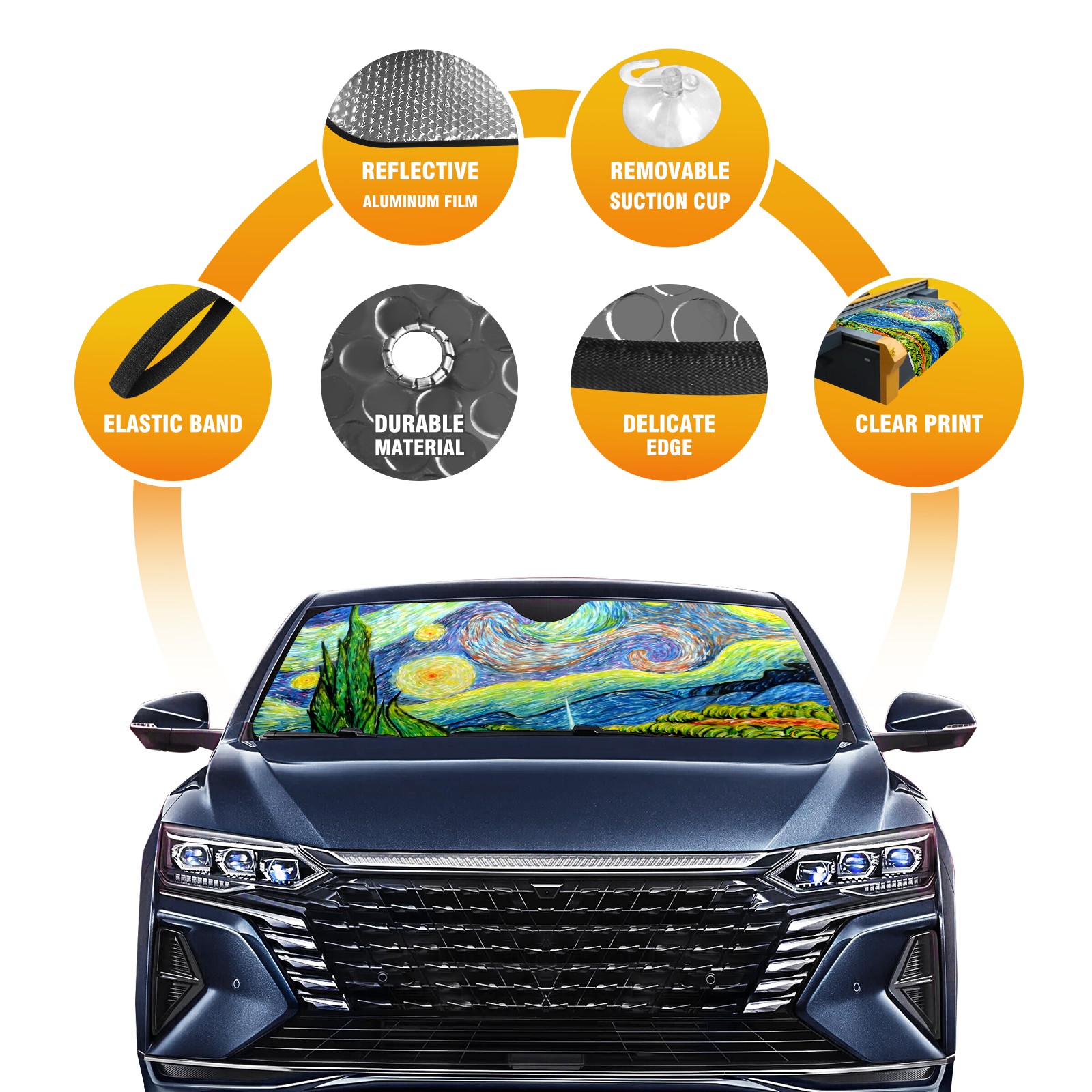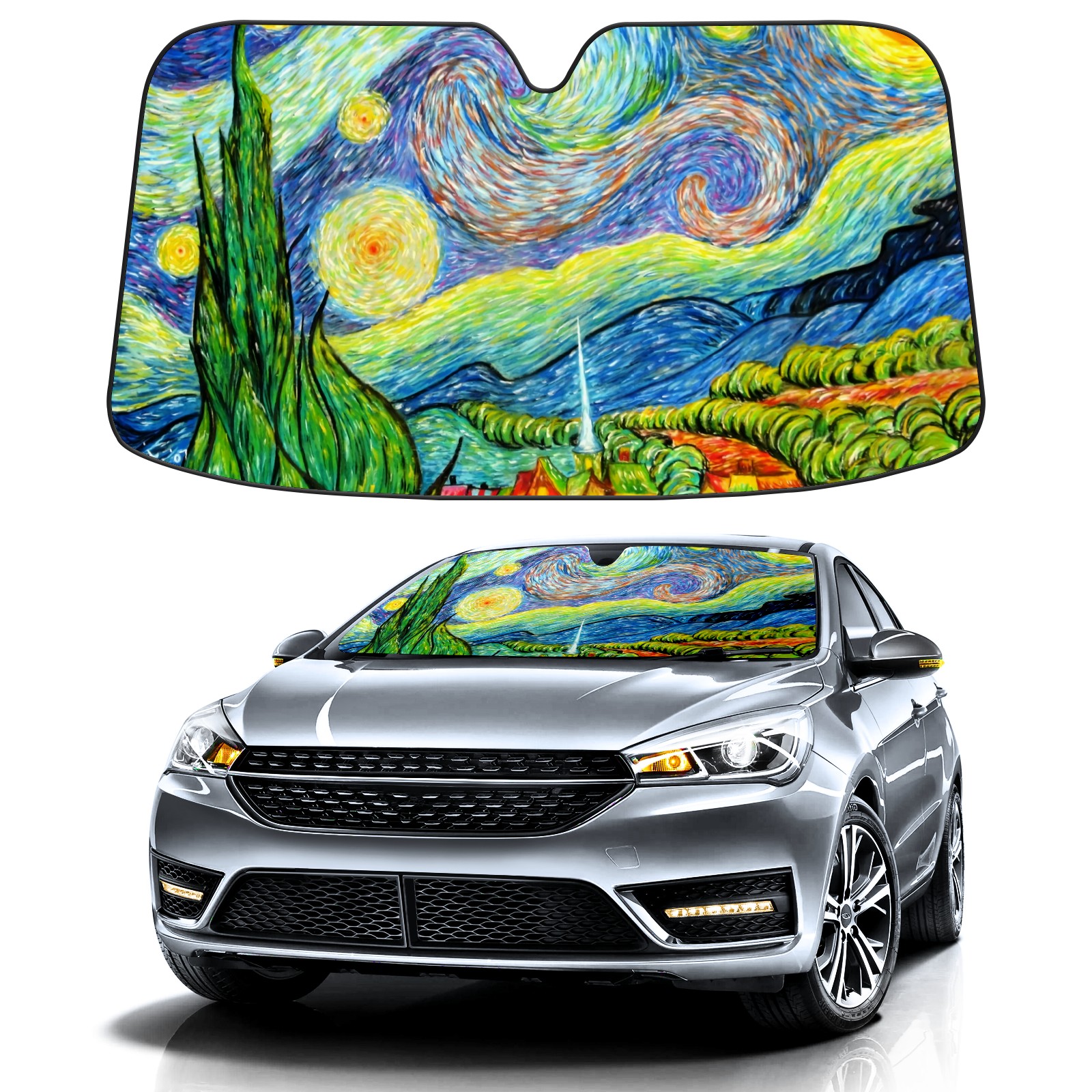 Car Windshield Sun Shade For Front Window Painting Foldable Vehicle Windshield Car Sun Visor Covers Automotive Window Protector Car Camping Privacy Sun Blocker