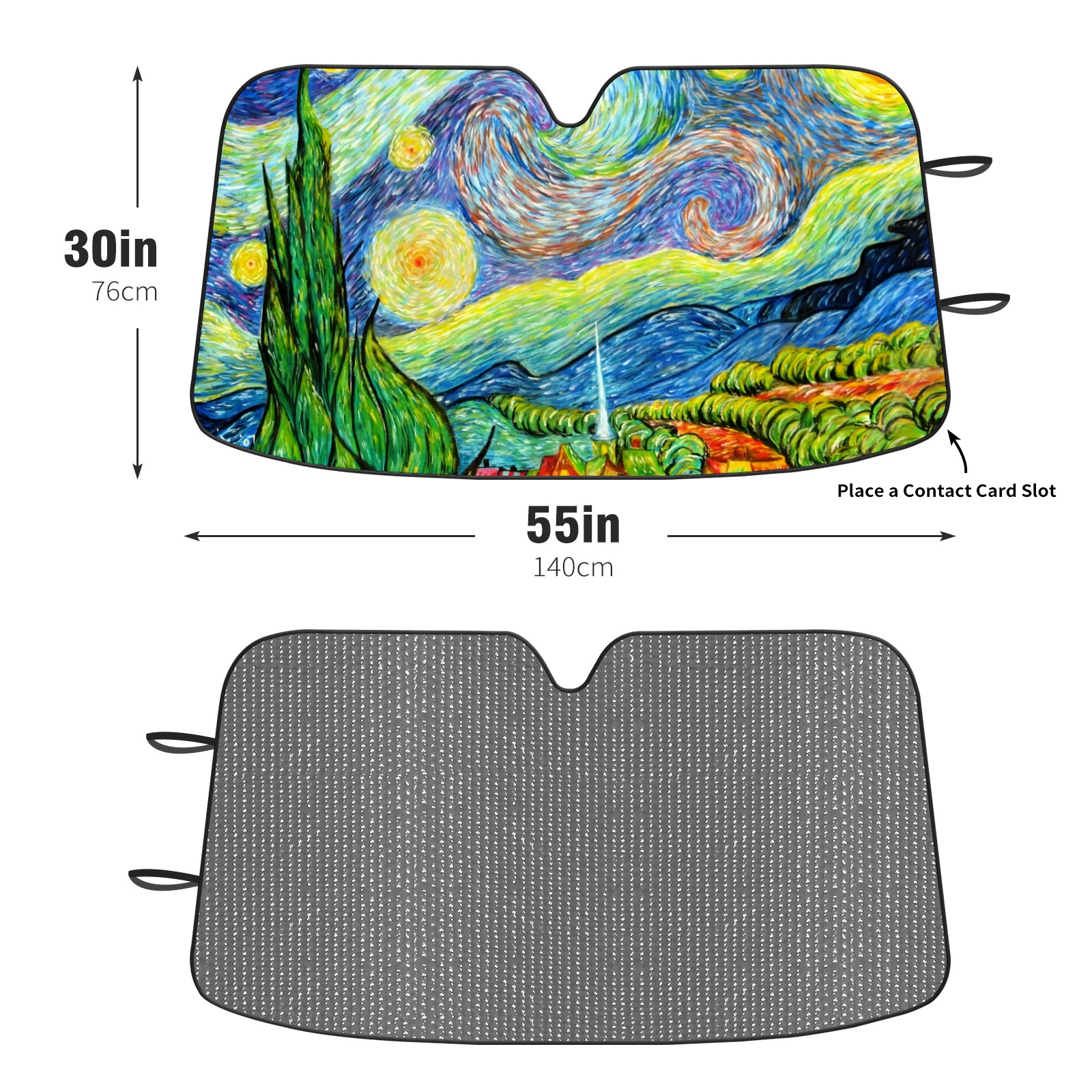 Diameter /Size 63"L x 33.5"W Made from excellent materials which makes it sturdy and protects the car from the sun. Easy to use and pack. Makes the interior of the car cooler.You can easily stash the sunshade in the storage bag or store long term.It open and closes easy. Also the leather storage bag is durable and easy to put the umbrella back into.This windshield sunshade provides complete coverage and keeps your car interior cool under direct sun. It is easy to open and position under the windshield and around the rear-view mirror. Makes Your Car Easy To Identify, Perfect For Finding Your Car In Crowded Parking Lots And Garages.Great Choice: It Is A Great Gift For Dad, Boyfriend, Brother, Brother And Uncle, Friends, Classmates, Family And So On. Notice: Due To Difference Computer Monitors, The Color Maybe Slightly Different From Picture. As Different Measurement Methods, Measurement Data Will Float Within 2%.I Hope You Understand. If You Have Any Question About The Item Please Do Not Hesitate To Contact Us Immediately And We Will Give You A Satisfactory Reply Within 24 Hours.