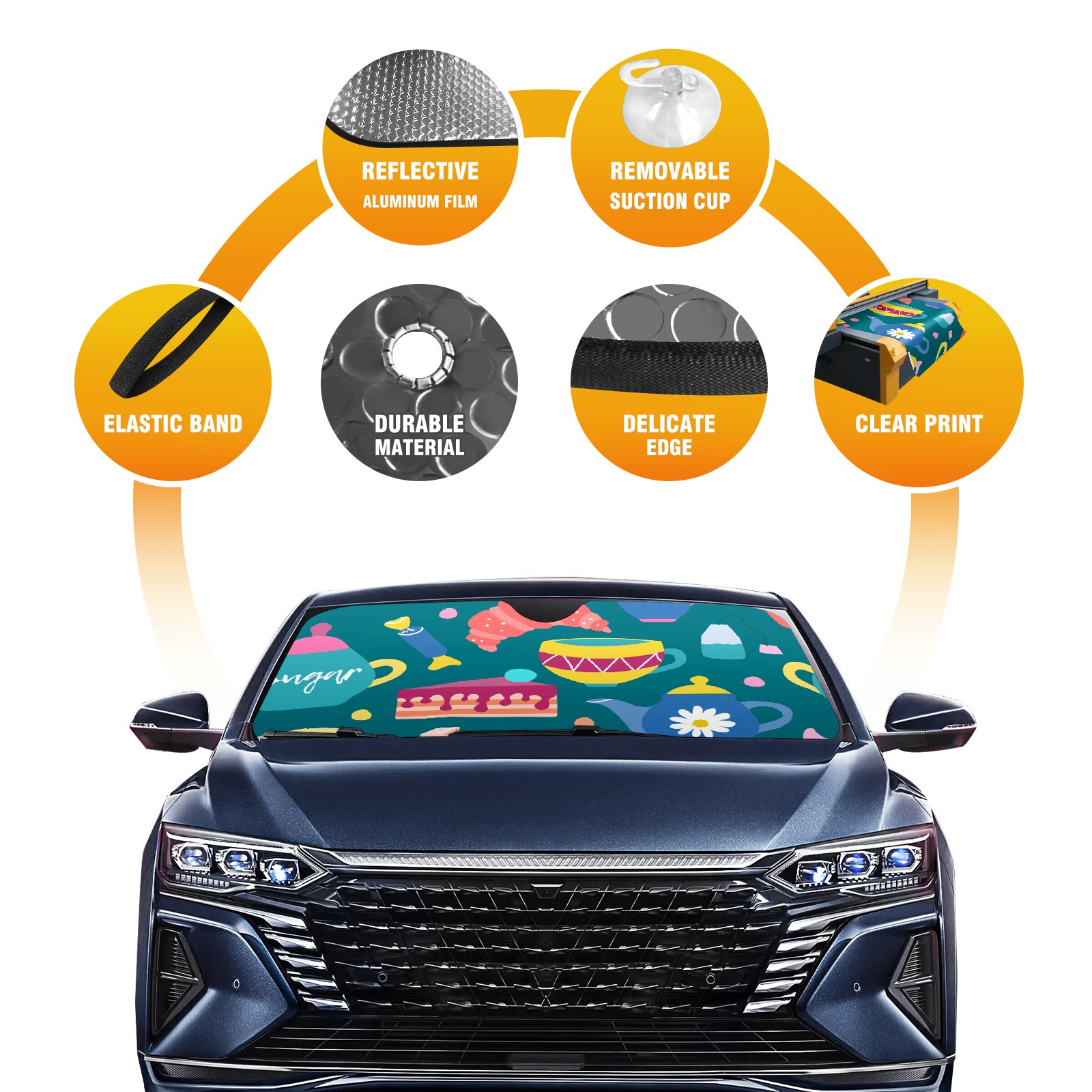 Car Windshield Sun Shade For Front Window Tea- Foldable Vehicle Windshield Car Sun Visor Covers Automotive Window Protector Car Camping Privacy Sun Blocker