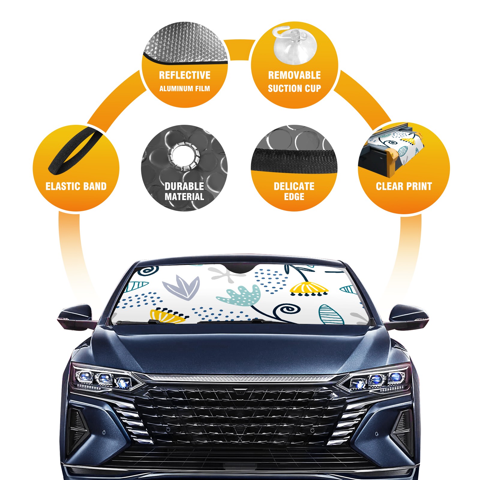 • Diameter /Size 63"L x 33.5"W Made from excellent materials which makes it sturdy and protects the car from the sun. Easy to use and pack. Makes the interior of the car cooler.You can easily stash the sunshade in the storage bag or store long term.It open and closes easy. Also the leather storage bag is durable and easy to put the umbrella back into.This windshield sunshade provides complete coverage and keeps your car interior cool under direct sun. It is easy to open and position under the windshield and around the rear-view mirror. Makes Your Car Easy To Identify, Perfect For Finding Your Car In Crowded Parking Lots And Garages.Great Choice: It Is A Great Gift For Dad, Boyfriend, Brother, Brother And Uncle, Friends, Classmates, Family And So On. Notice: Due To Difference Computer Monitors, The Color Maybe Slightly Different From Picture. As Different Measurement Methods, Measurement Data Will Float Within 2%.I Hope You Understand. If You Have Any Question About The Item Please Do Not Hesitate To Contact Us Immediately And We Will Give You A Satisfactory Reply Within 24 Hours.