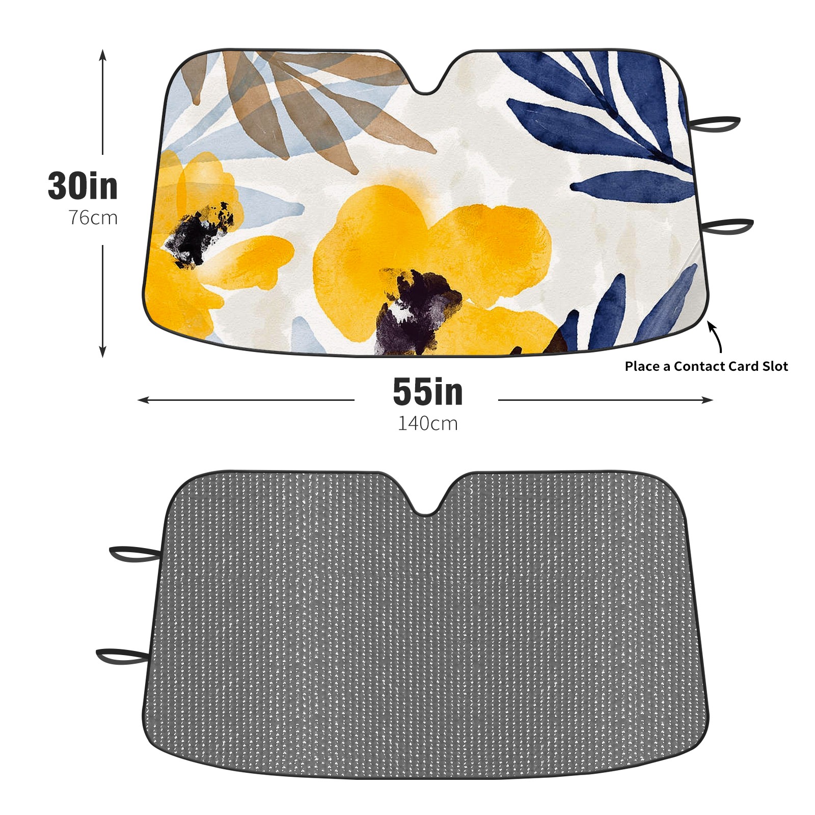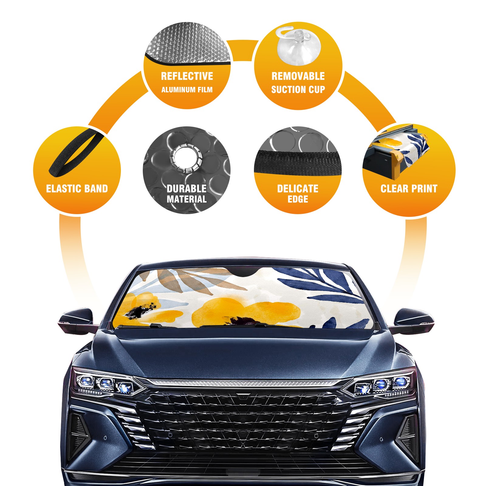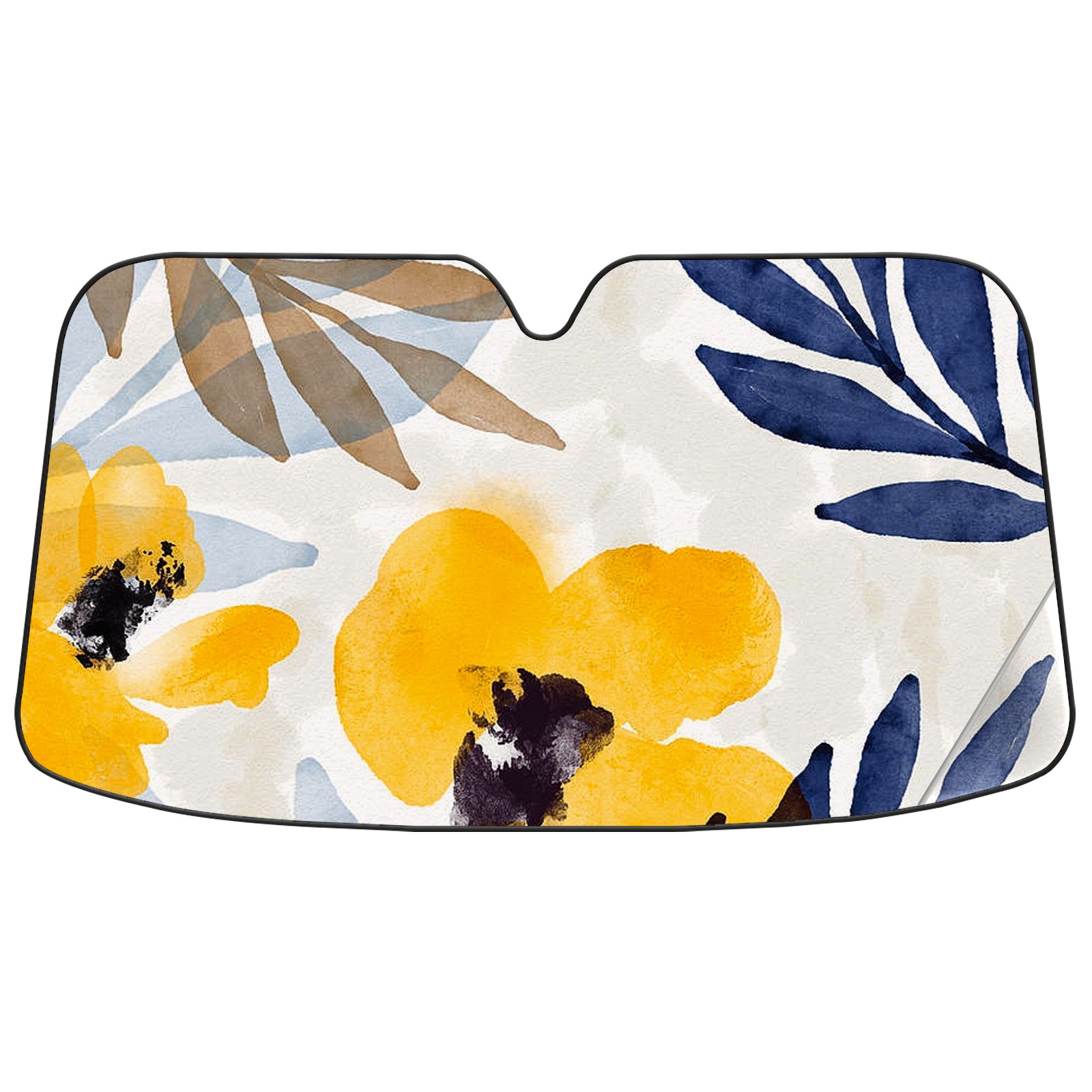 Car Windshield Sun Shade For Front Window Yellow And Navy Floral Art Foldable Vehicle Windshield Car Sun Visor Covers Automotive Window Protector Car Camping Privacy Sun Blocker