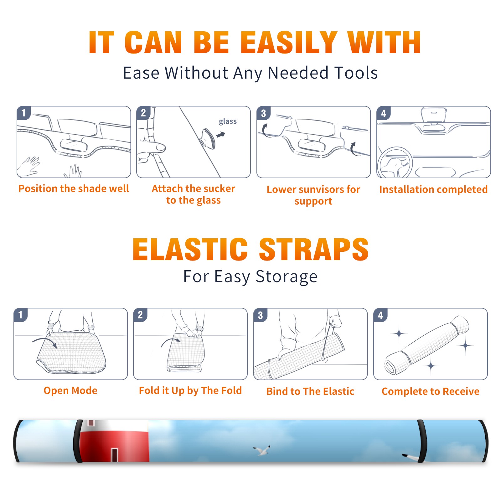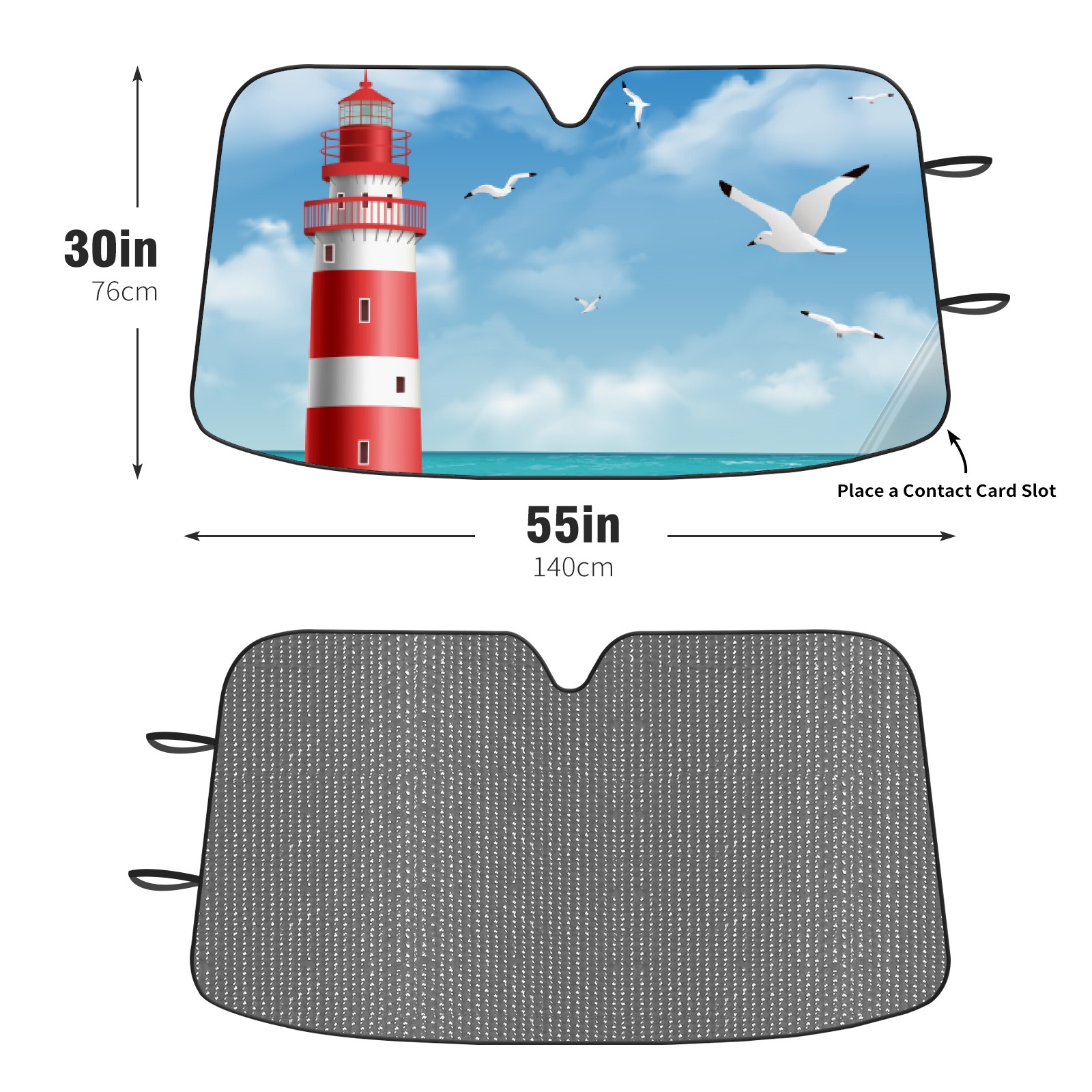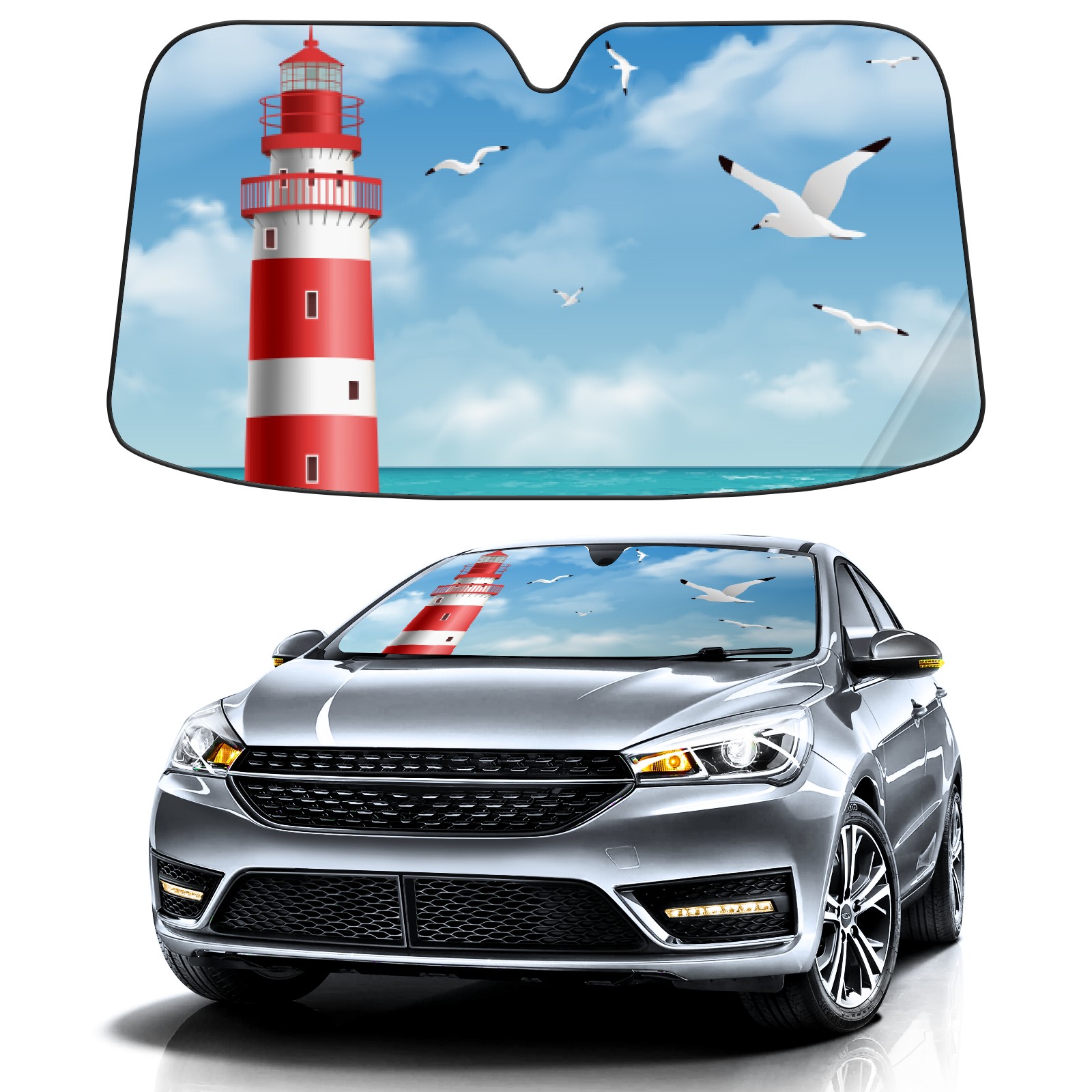 Car Windshield Sun Shade For Front Window Lighthouse And Seagulls Foldable Vehicle Windshield Car Sun Visor Covers Automotive Window Protector Car Camping Privacy Sun Blocker