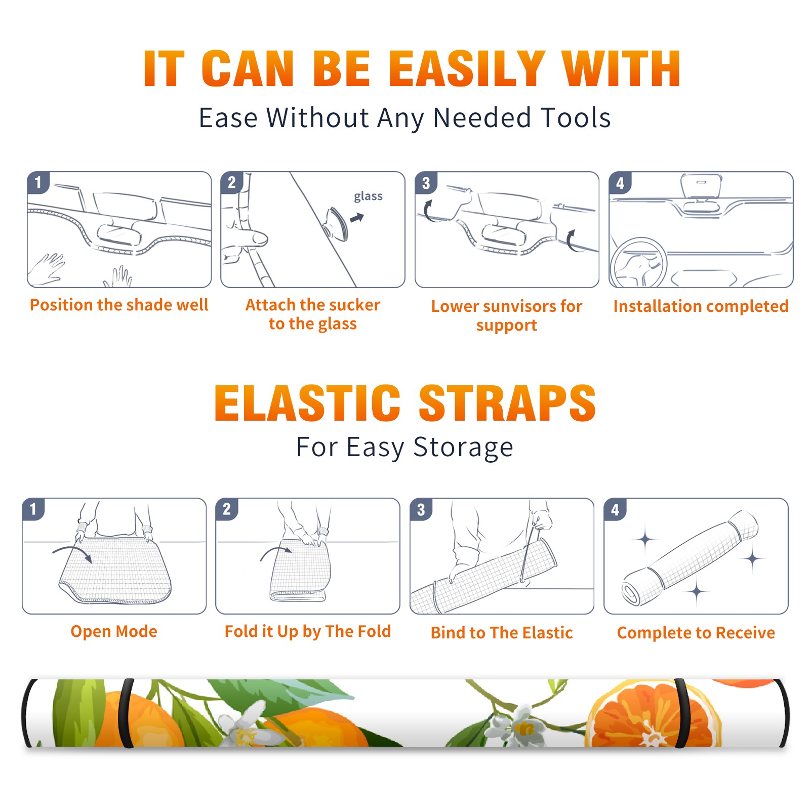 Car Windshield Sun Shade For Front Window Tangerine Foldable Vehicle Windshield Car Sun Visor Covers Automotive Window Protector Car Camping Privacy Sun Blocker