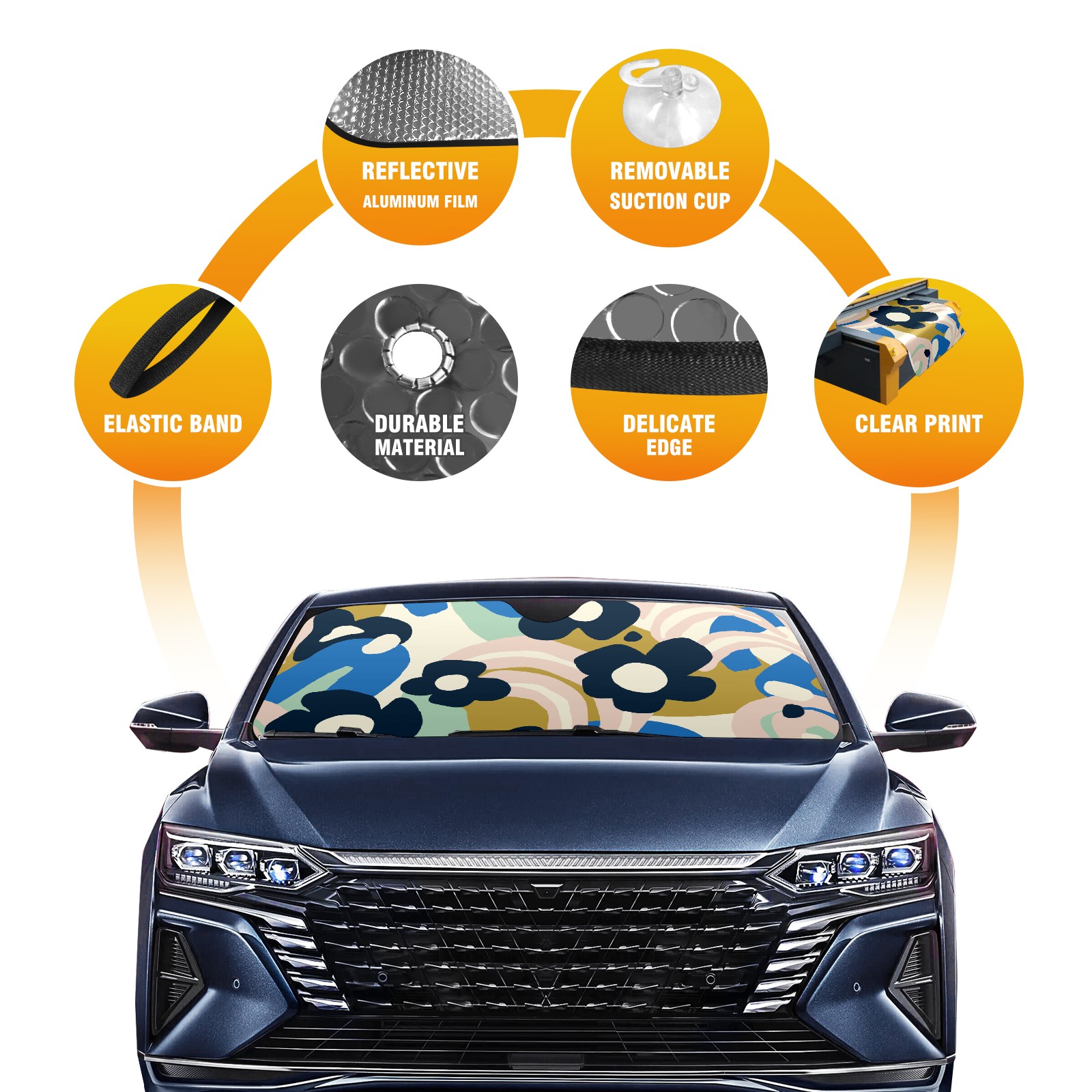 Diameter /Size 63"L x 33.5"W Made from excellent materials which makes it sturdy and protects the car from the sun. Easy to use and pack. Makes the interior of the car cooler.You can easily stash the sunshade in the storage bag or store long term.It open and closes easy. Also the leather storage bag is durable and easy to put the umbrella back into.This windshield sunshade provides complete coverage and keeps your car interior cool under direct sun. It is easy to open and position under the windshield and around the rear-view mirror. Makes Your Car Easy To Identify, Perfect For Finding Your Car In Crowded Parking Lots And Garages.Great Choice: It Is A Great Gift For Dad, Boyfriend, Brother, Brother And Uncle, Friends, Classmates, Family And So On. Notice: Due To Difference Computer Monitors, The Color Maybe Slightly Different From Picture. As Different Measurement Methods, Measurement Data Will Float Within 2%.I Hope You Understand. If You Have Any Question About The Item Please Do Not Hesitate To Contact Us Immediately And We Will Give You A Satisfactory Reply Within 24 Hours.