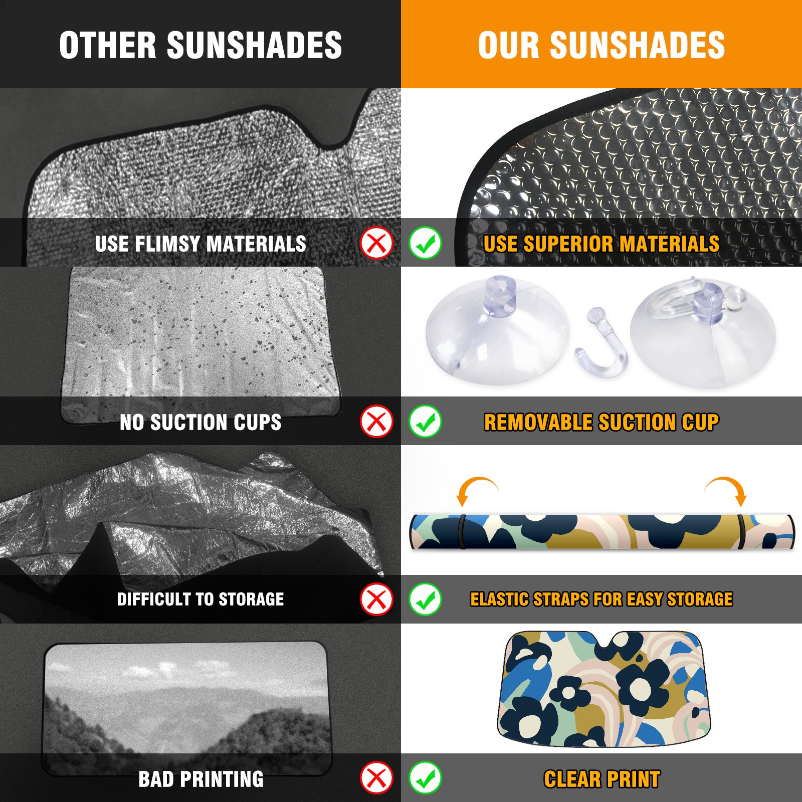 • Diameter /Size 63"L x 33.5"W Made from excellent materials which makes it sturdy and protects the car from the sun. Easy to use and pack. Makes the interior of the car cooler.You can easily stash the sunshade in the storage bag or store long term.It open and closes easy. Also the leather storage bag is durable and easy to put the umbrella back into.This windshield sunshade provides complete coverage and keeps your car interior cool under direct sun. It is easy to open and position under the windshield and around the rear-view mirror. Makes Your Car Easy To Identify, Perfect For Finding Your Car In Crowded Parking Lots And Garages.Great Choice: It Is A Great Gift For Dad, Boyfriend, Brother, Brother And Uncle, Friends, Classmates, Family And So On. Notice: Due To Difference Computer Monitors, The Color Maybe Slightly Different From Picture. As Different Measurement Methods, Measurement Data Will Float Within 2%.I Hope You Understand. If You Have Any Question About The Item Please Do Not Hesitate To Contact Us Immediately And We Will Give You A Satisfactory Reply Within 24 Hours.