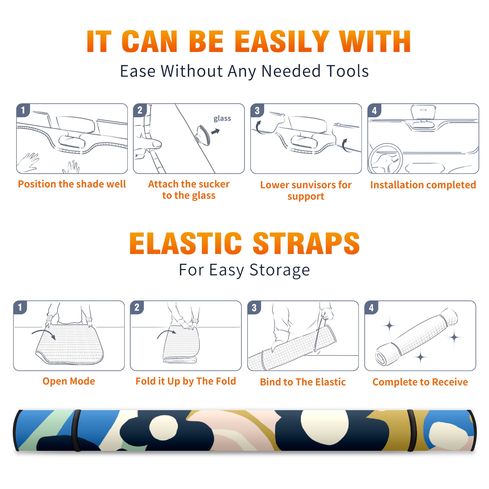 Car Windshield Sun Shade For Front Window Vintage Seamless Illustration Foldable Vehicle Windshield Car Sun Visor Covers Automotive Window Protector Car Camping Privacy Sun Blocker