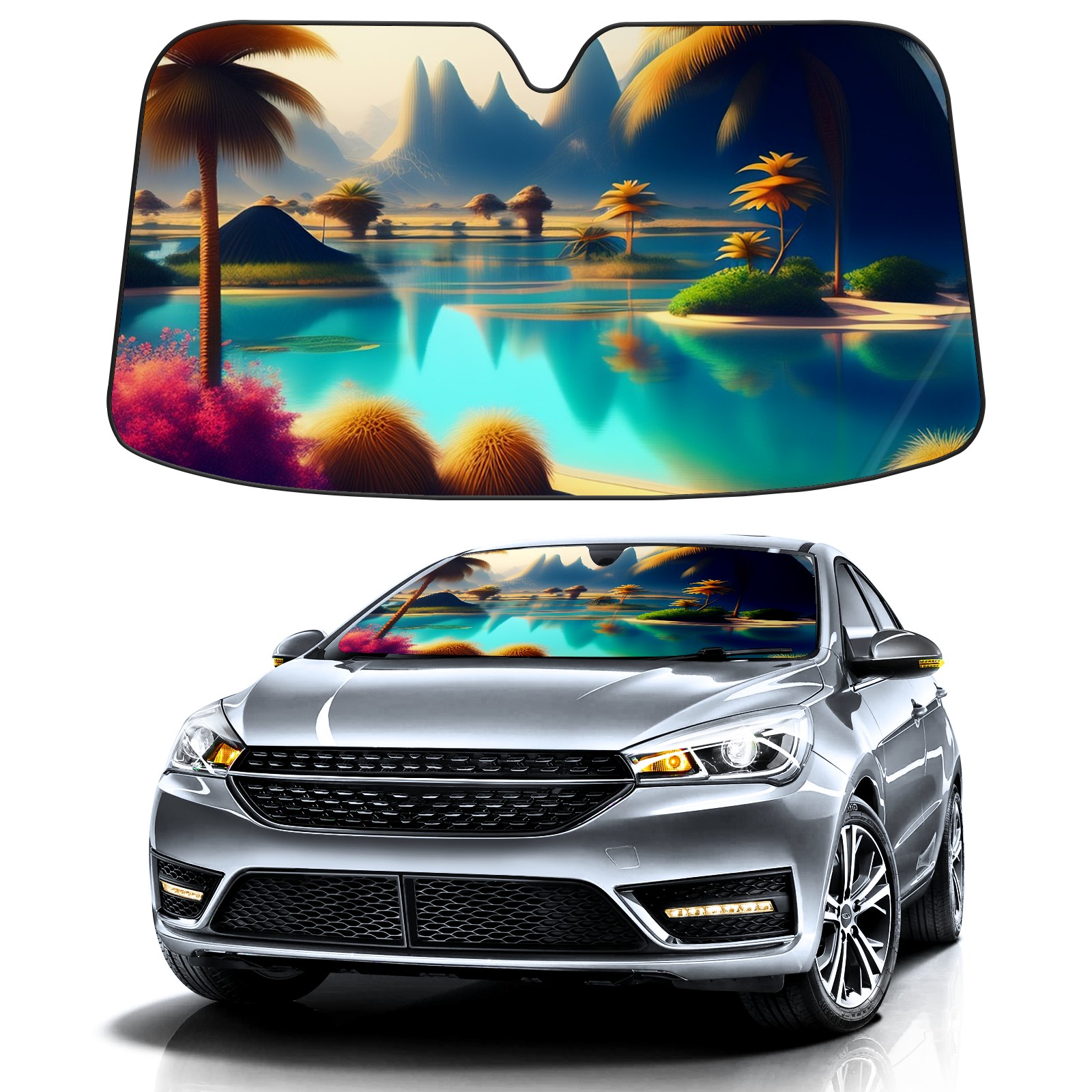 Car Windshield Sun Shade For Front Window Lagoon Foldable Vehicle Windshield Car Sun Visor Covers Automotive Window Protector Car Camping Privacy Sun Blocker