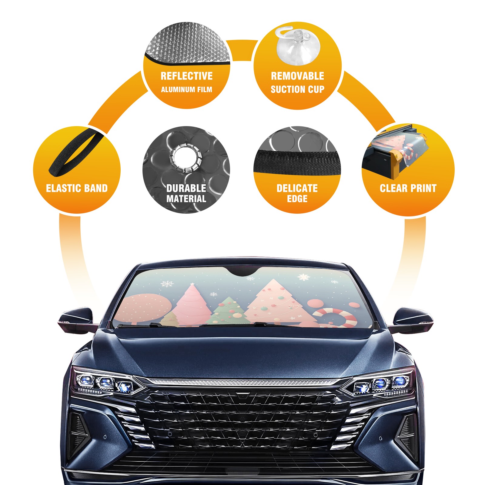 Car Windshield Sun Shade For Front Window Christmas Tree Foldable Vehicle Windshield Car Sun Visor Covers Automotive Window Protector Car Camping Privacy Sun Blocker