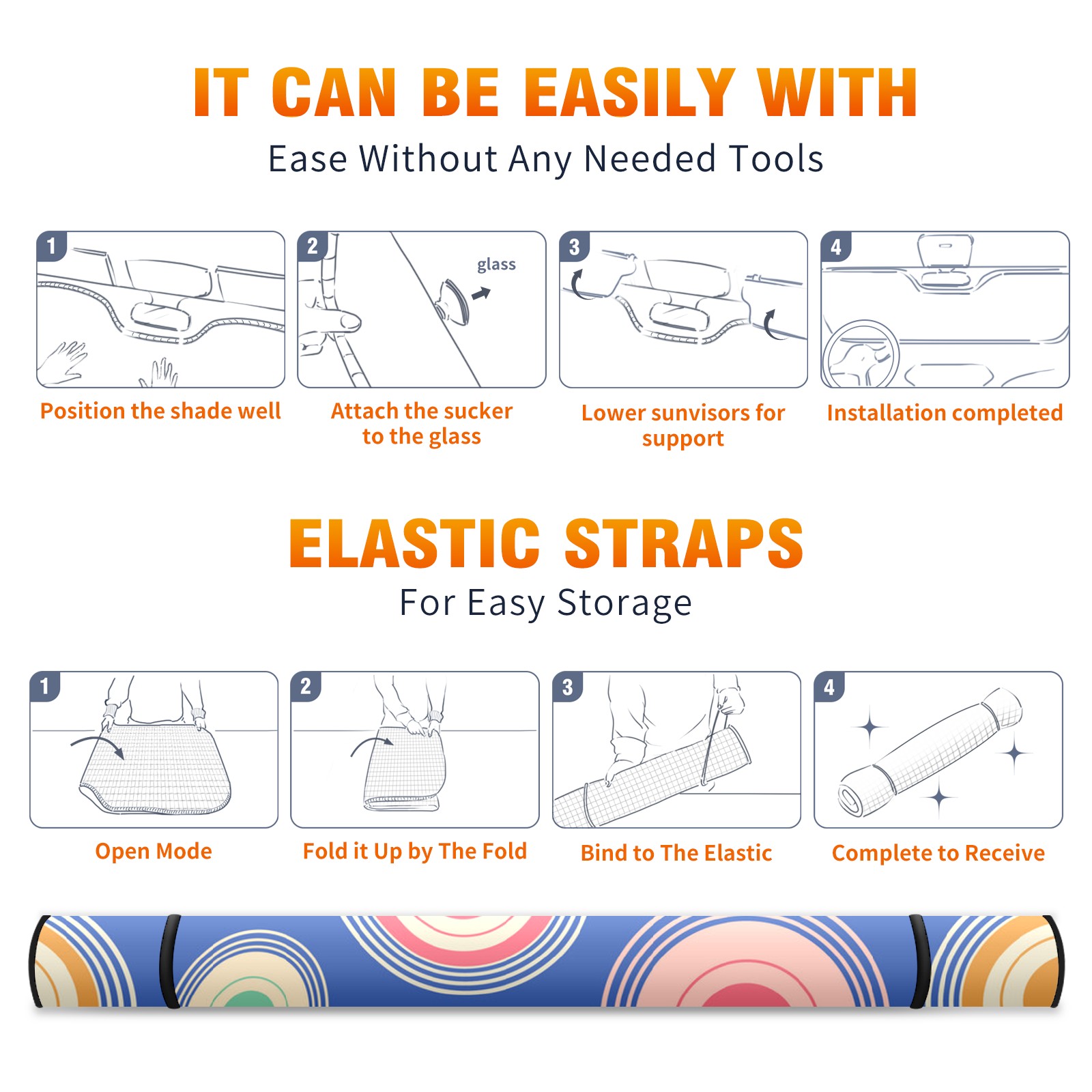• Diameter /Size 63"L x 33.5"W Made from excellent materials which makes it sturdy and protects the car from the sun. Easy to use and pack. Makes the interior of the car cooler.You can easily stash the sunshade in the storage bag or store long term.It open and closes easy. Also the leather storage bag is durable and easy to put the umbrella back into.This windshield sunshade provides complete coverage and keeps your car interior cool under direct sun. It is easy to open and position under the windshield and around the rear-view mirror. Makes Your Car Easy To Identify, Perfect For Finding Your Car In Crowded Parking Lots And Garages.Great Choice: It Is A Great Gift For Dad, Boyfriend, Brother, Brother And Uncle, Friends, Classmates, Family And So On. Notice: Due To Difference Computer Monitors, The Color Maybe Slightly Different From Picture. As Different Measurement Methods, Measurement Data Will Float Within 2%.I Hope You Understand. If You Have Any Question About The Item Please Do Not Hesitate To Contact Us Immediately And We Will Give You A Satisfactory Reply Within 24 Hours.