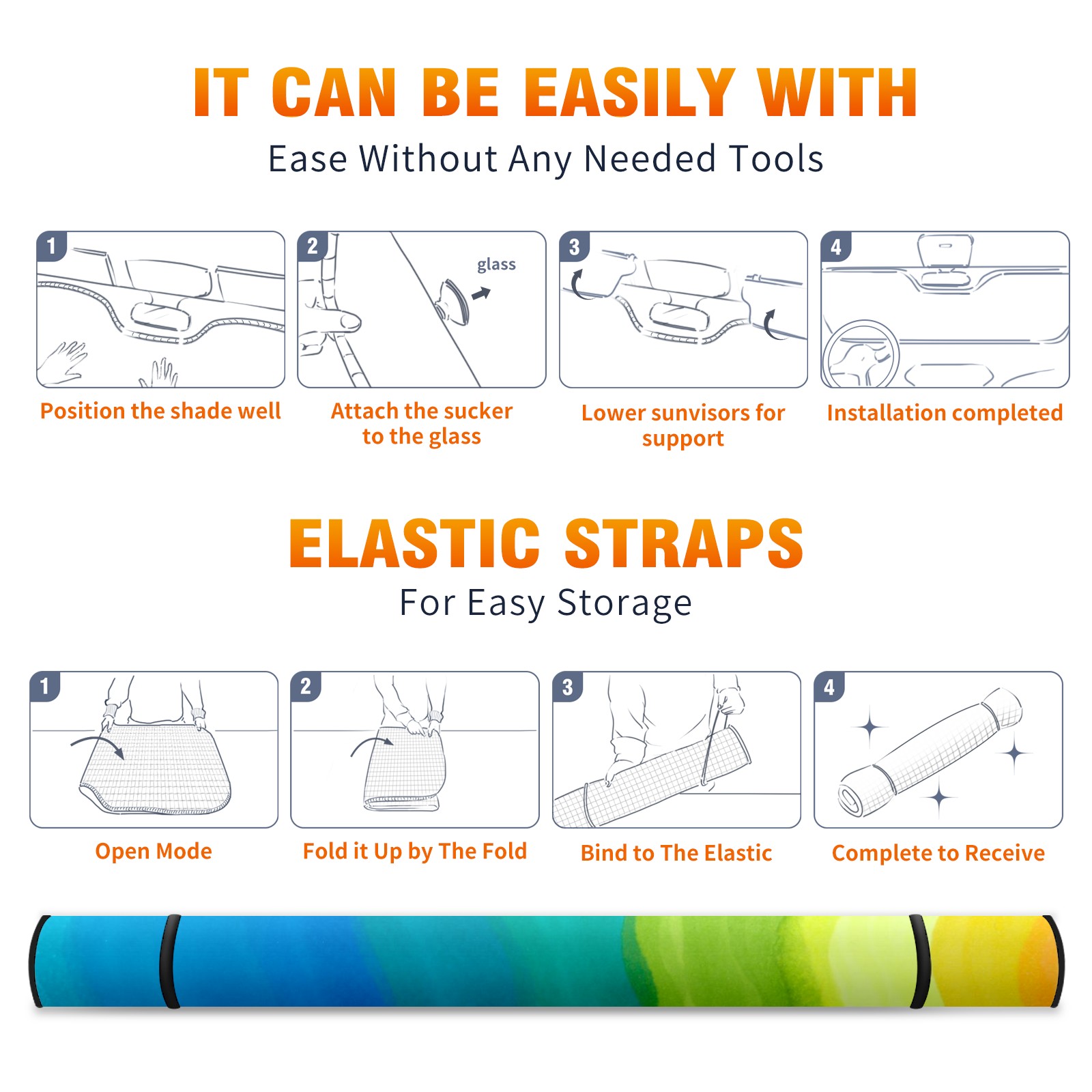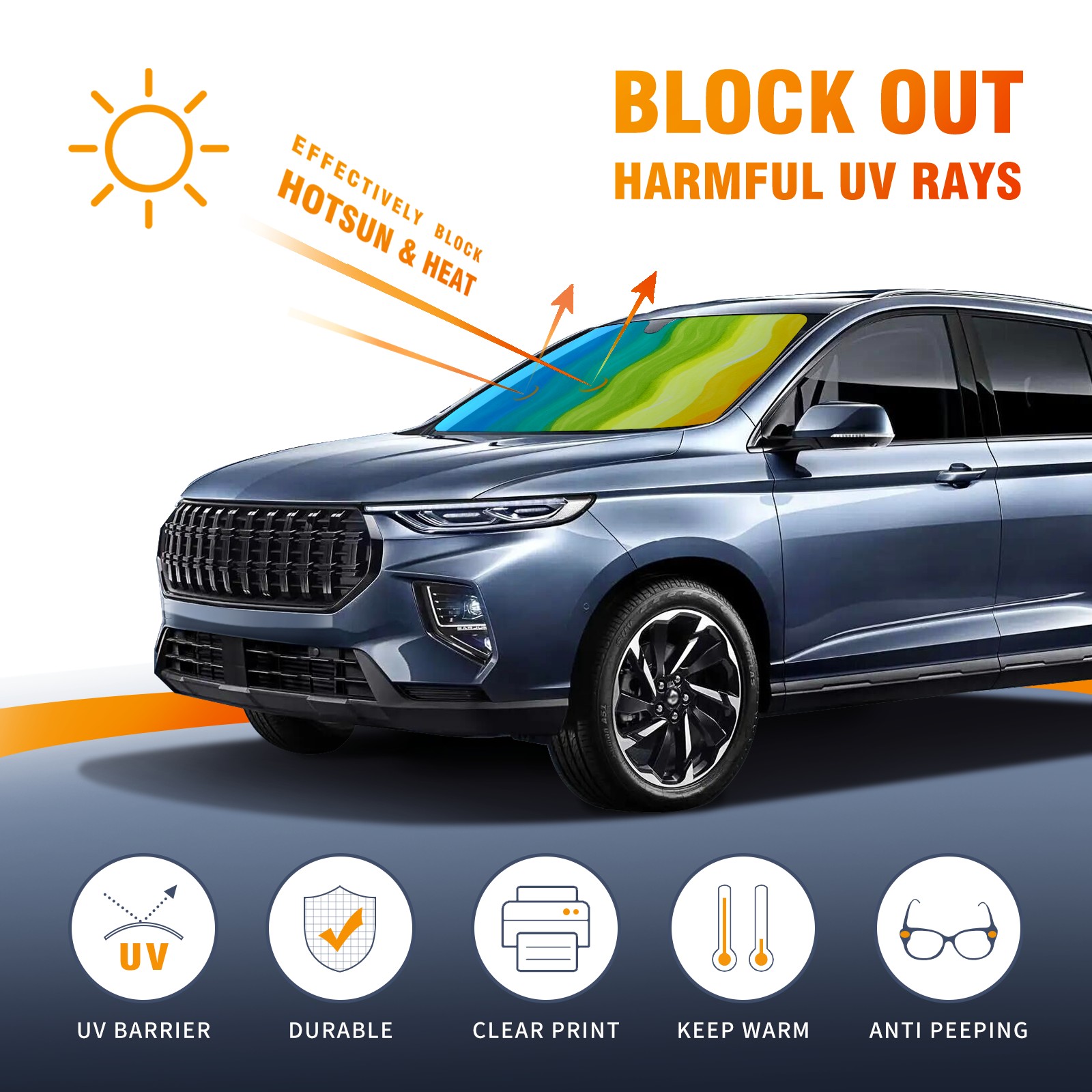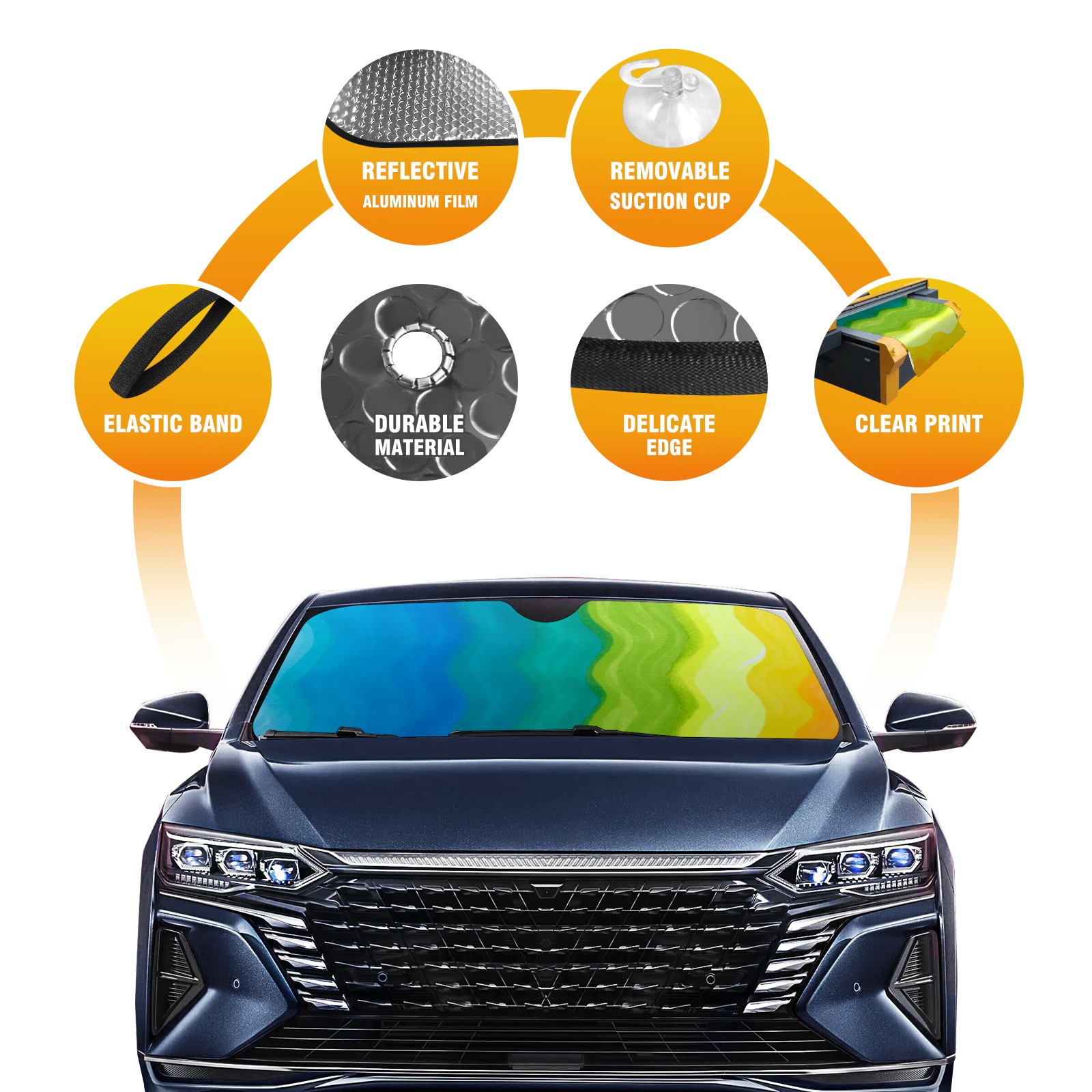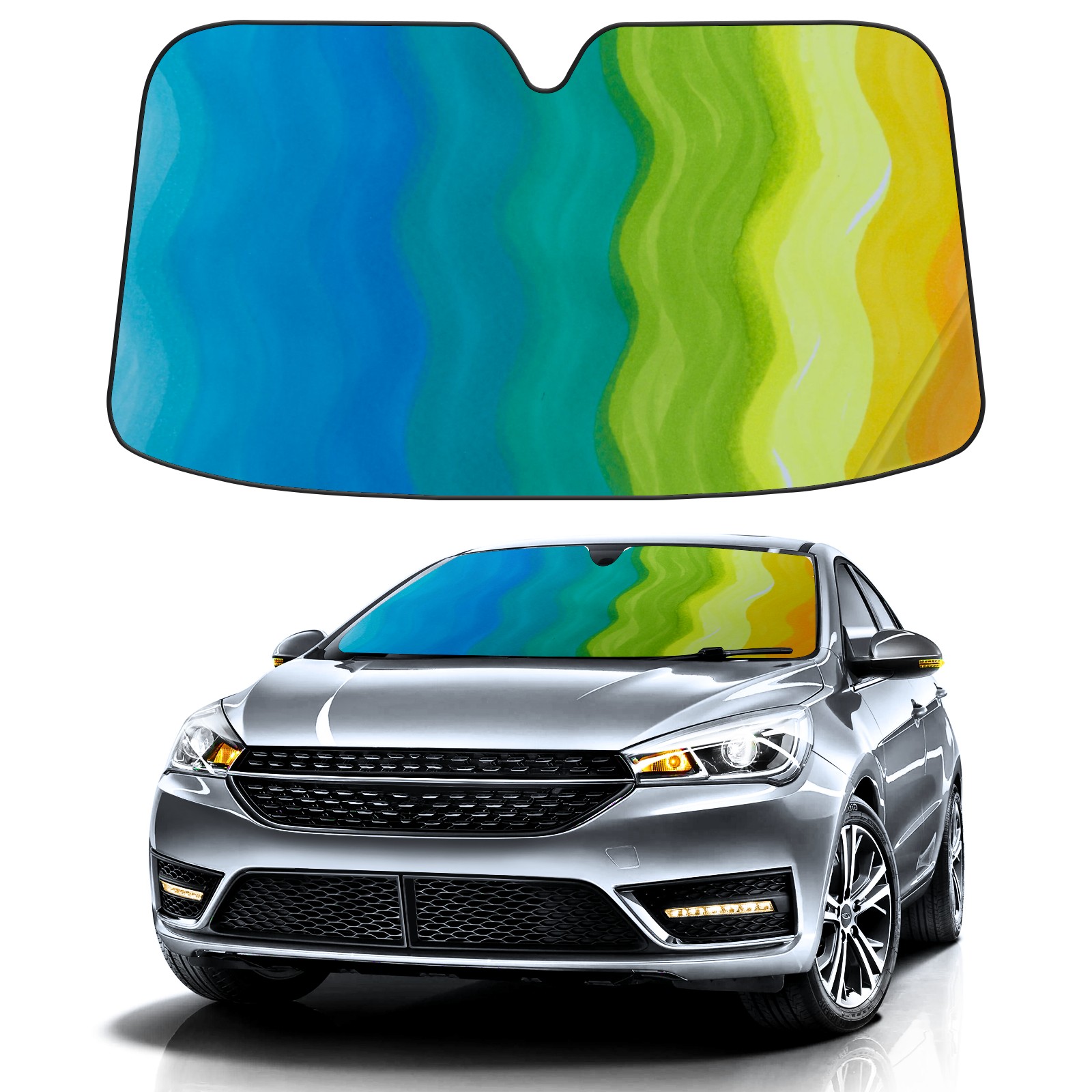 Car Windshield Sun Shade For Front Window Rainbow Gradient Wave Sea- Foldable Vehicle Windshield Car Sun Visor Covers Automotive Window Protector Car Camping Privacy Sun Blocker