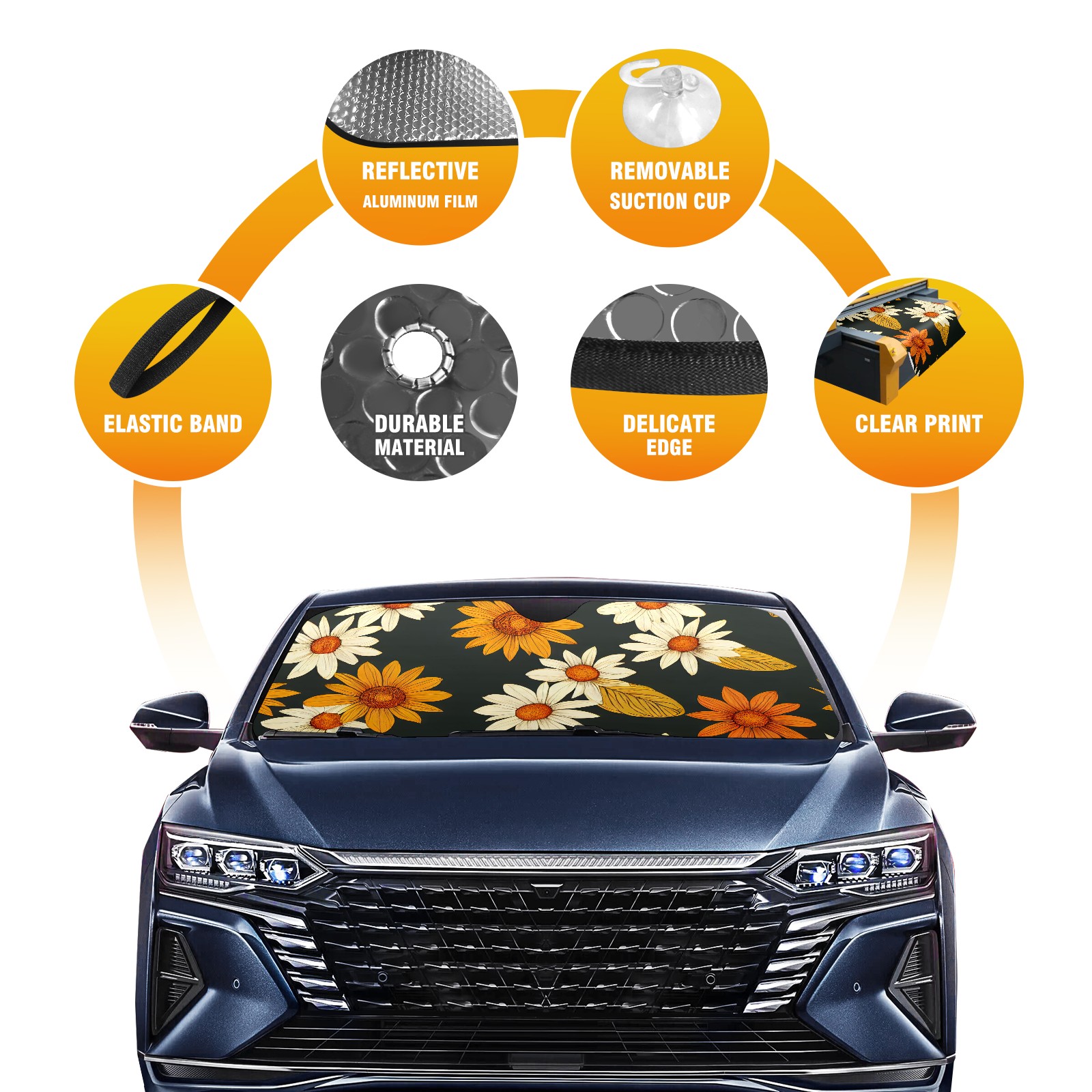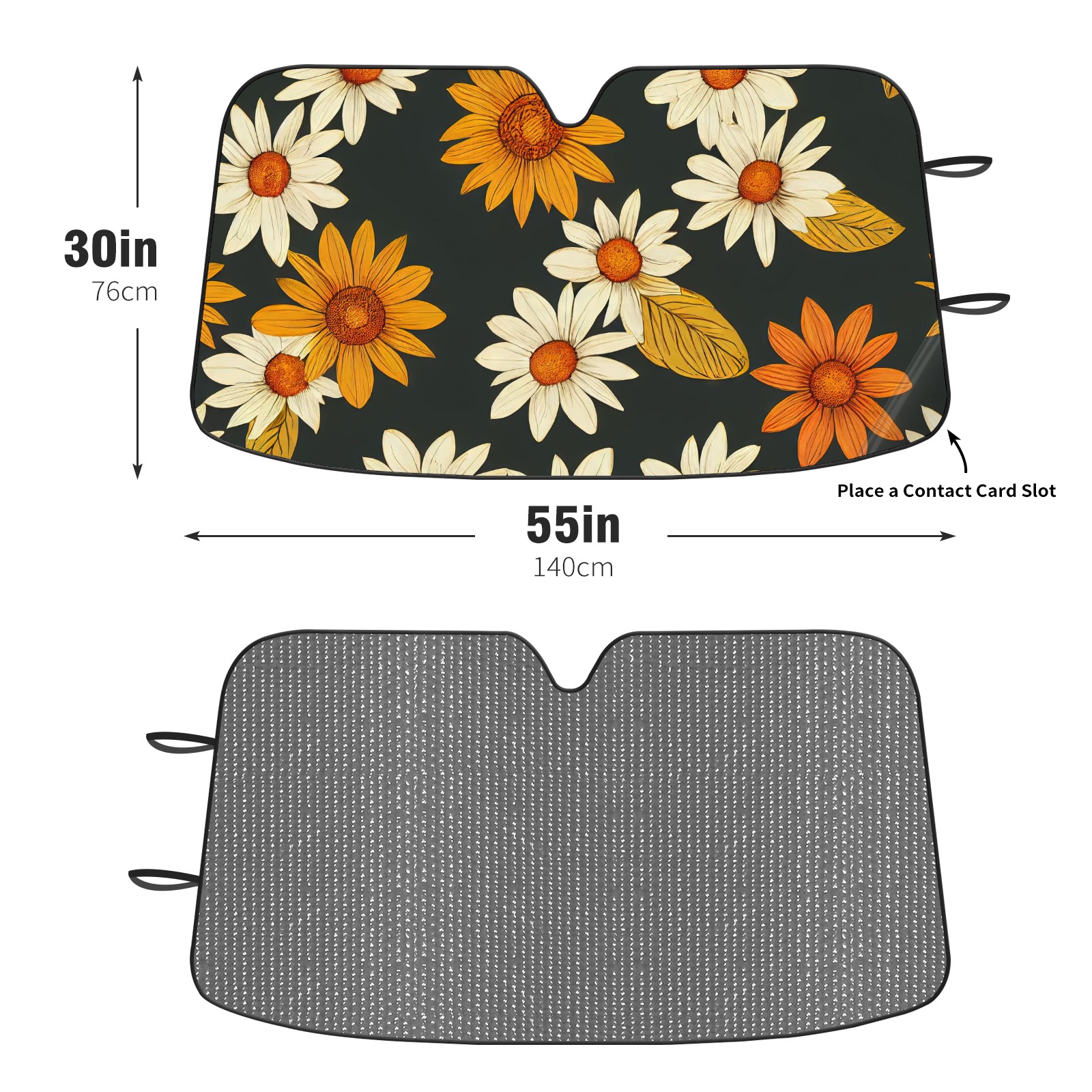 Diameter /Size 63"L x 33.5"W Made from excellent materials which makes it sturdy and protects the car from the sun. Easy to use and pack. Makes the interior of the car cooler.You can easily stash the sunshade in the storage bag or store long term.It open and closes easy. Also the leather storage bag is durable and easy to put the umbrella back into.This windshield sunshade provides complete coverage and keeps your car interior cool under direct sun. It is easy to open and position under the windshield and around the rear-view mirror. Makes Your Car Easy To Identify, Perfect For Finding Your Car In Crowded Parking Lots And Garages.Great Choice: It Is A Great Gift For Dad, Boyfriend, Brother, Brother And Uncle, Friends, Classmates, Family And So On. Notice: Due To Difference Computer Monitors, The Color Maybe Slightly Different From Picture. As Different Measurement Methods, Measurement Data Will Float Within 2%.I Hope You Understand. If You Have Any Question About The Item Please Do Not Hesitate To Contact Us Immediately And We Will Give You A Satisfactory Reply Within 24 Hours.